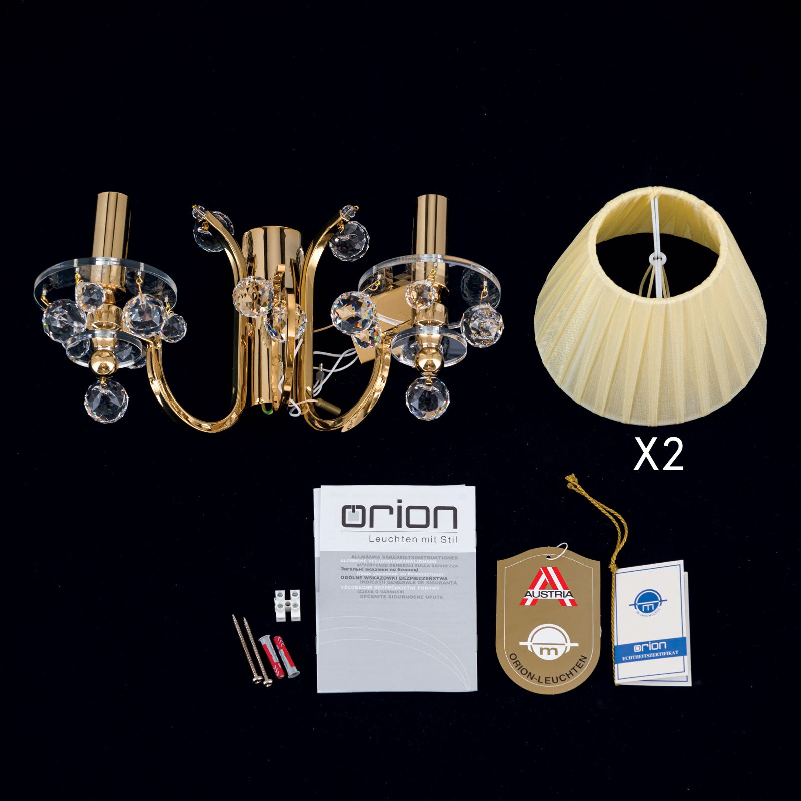 Wall light KRISTALLDESIGN, 2-lamps, gold with champagne-coloured shade