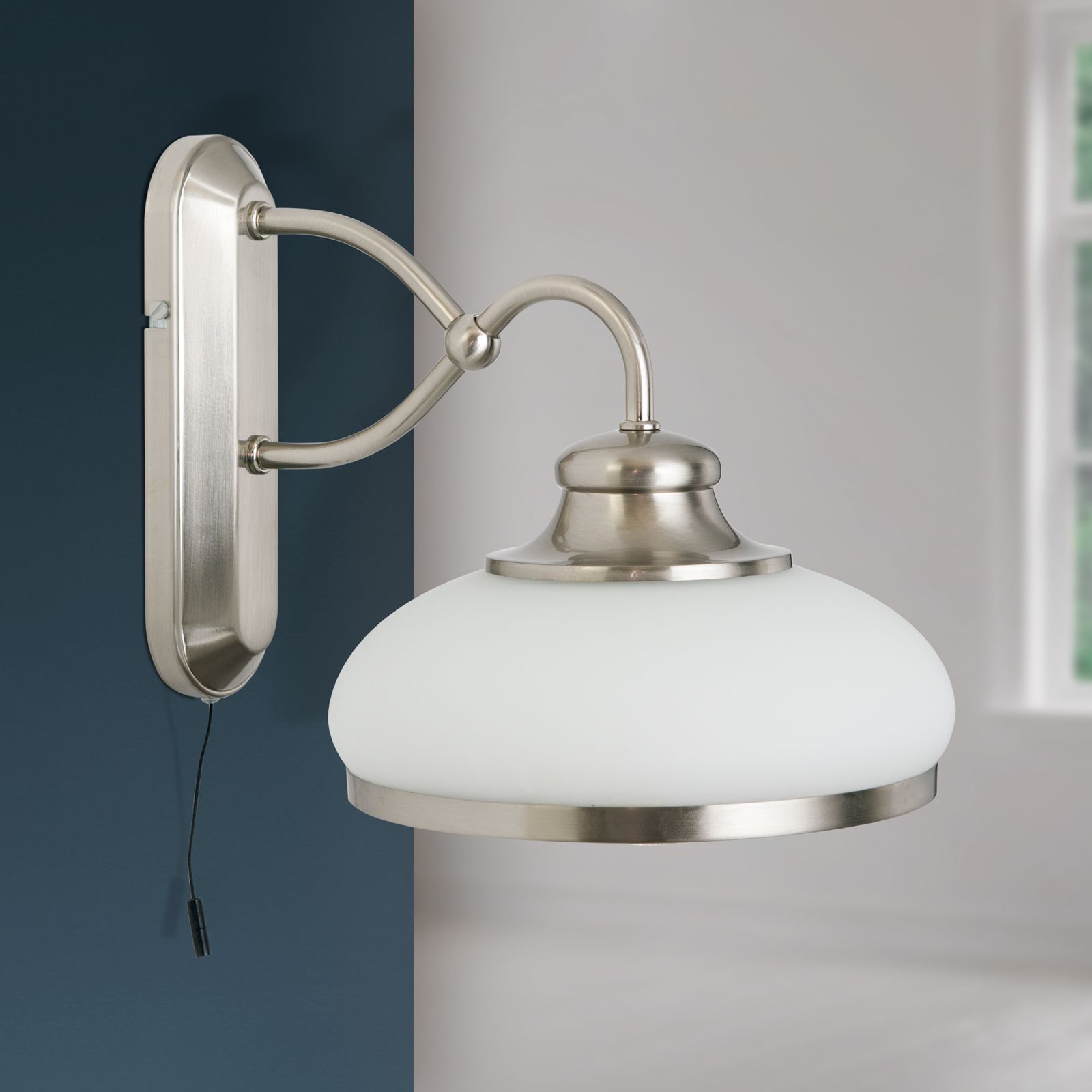 Wall light LANDHAUS, 1 lamp, Satin chrome finish with white opal glass