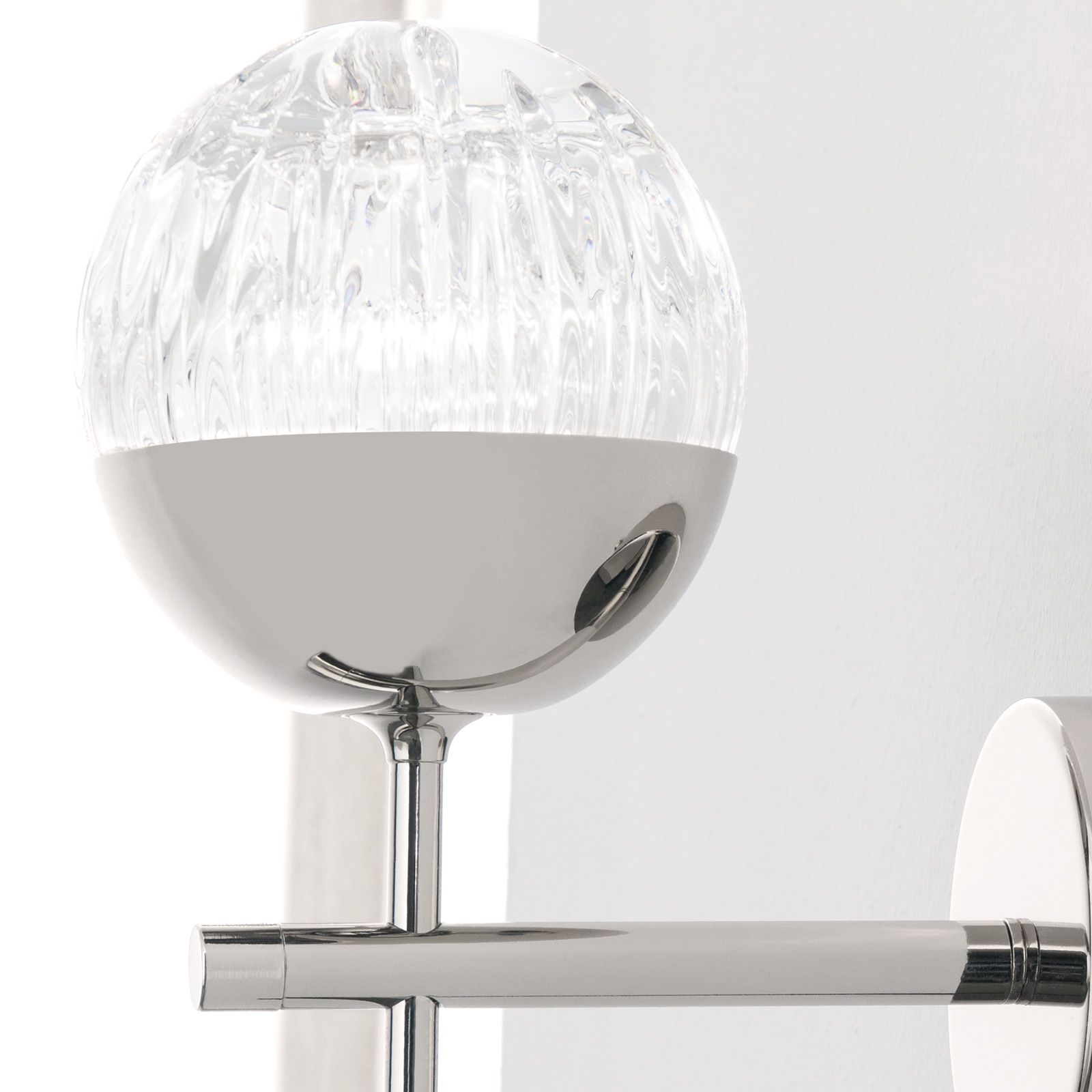 BALL wall light with textile wire, nickel plated with clear crystal glass with handmade line cut