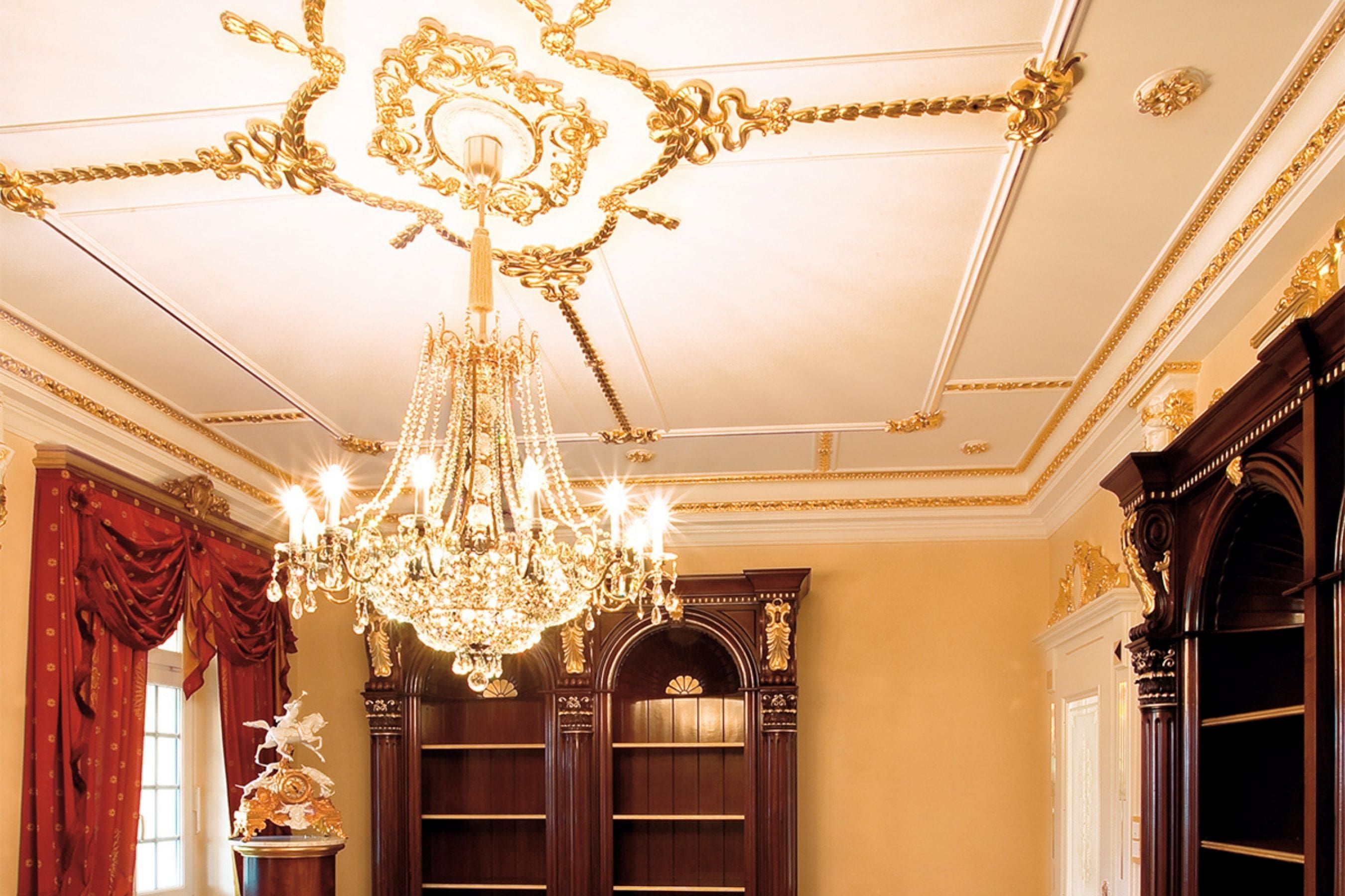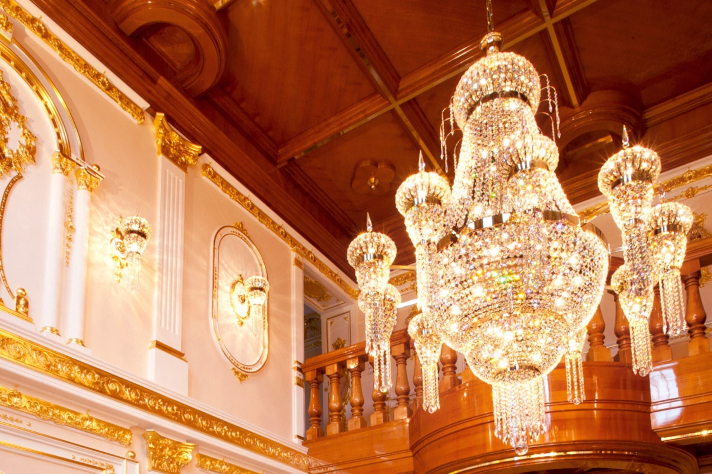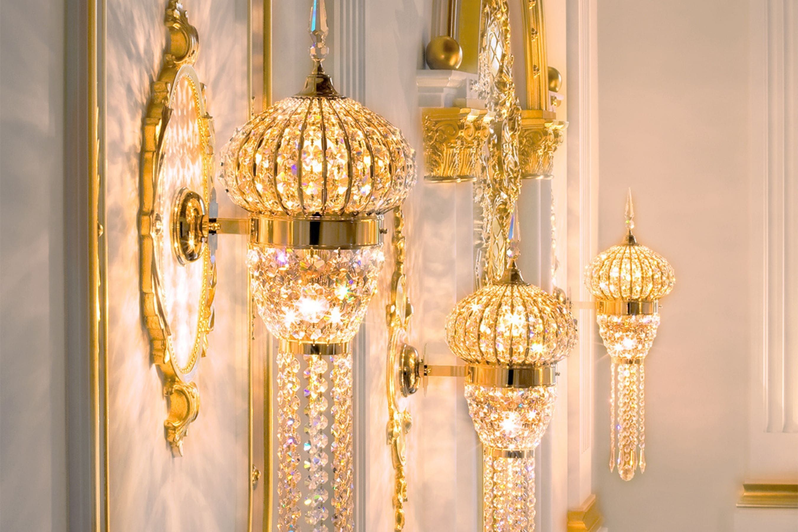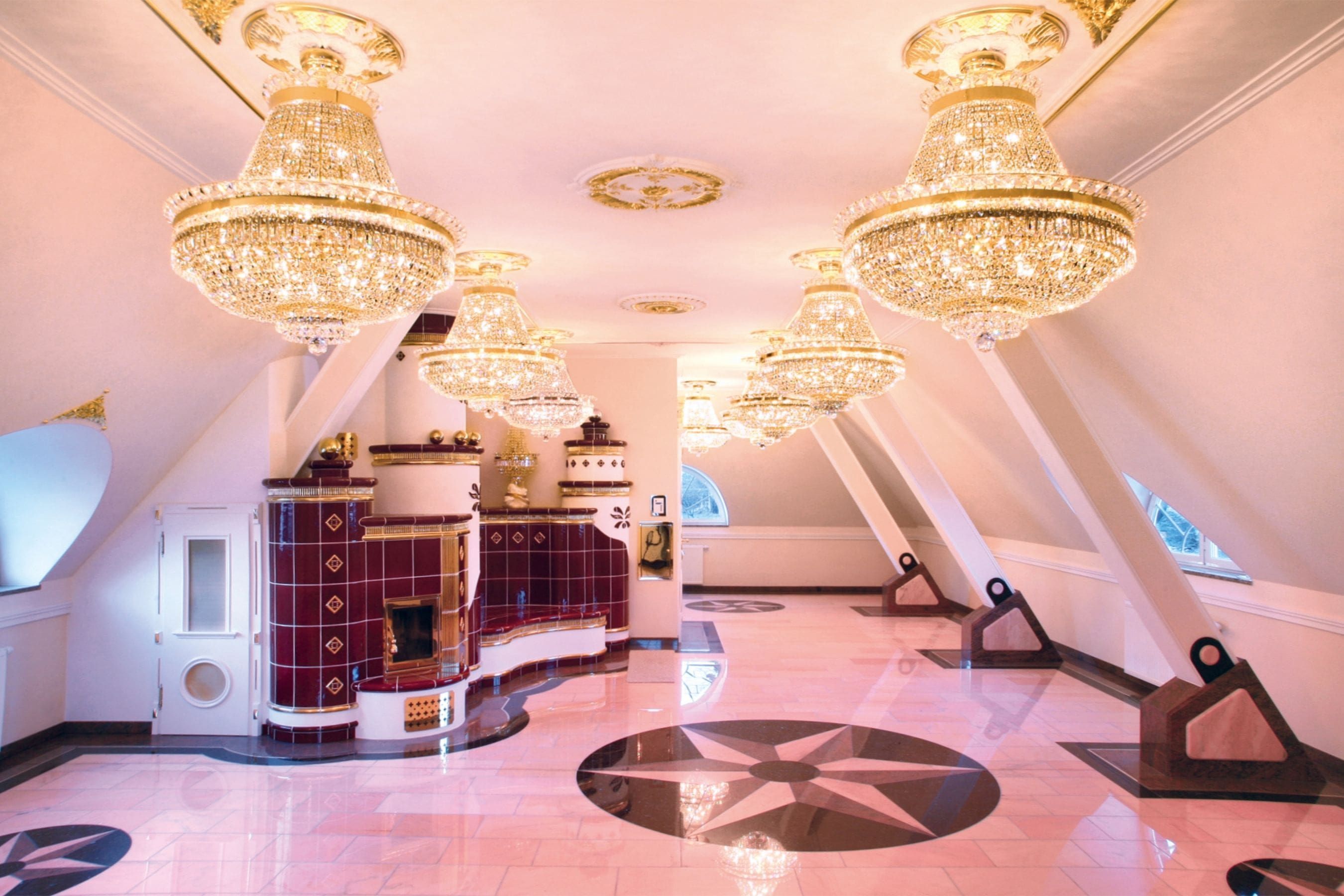 ORION created many customized solutions based on “Design by ORION”-series – made to measure for every room and requirement. All lights have 24-carat gold-plated finish and are fitted with the highest crystal quality „Strass® Swarovski® Crystal”. Furnishing this villa with dozens of crystal chandeliers and lights was among ORION’s largest projects for a private home. Manufacturing and completion in several phases took over a year. ORION also did the final assembly and installation on location.