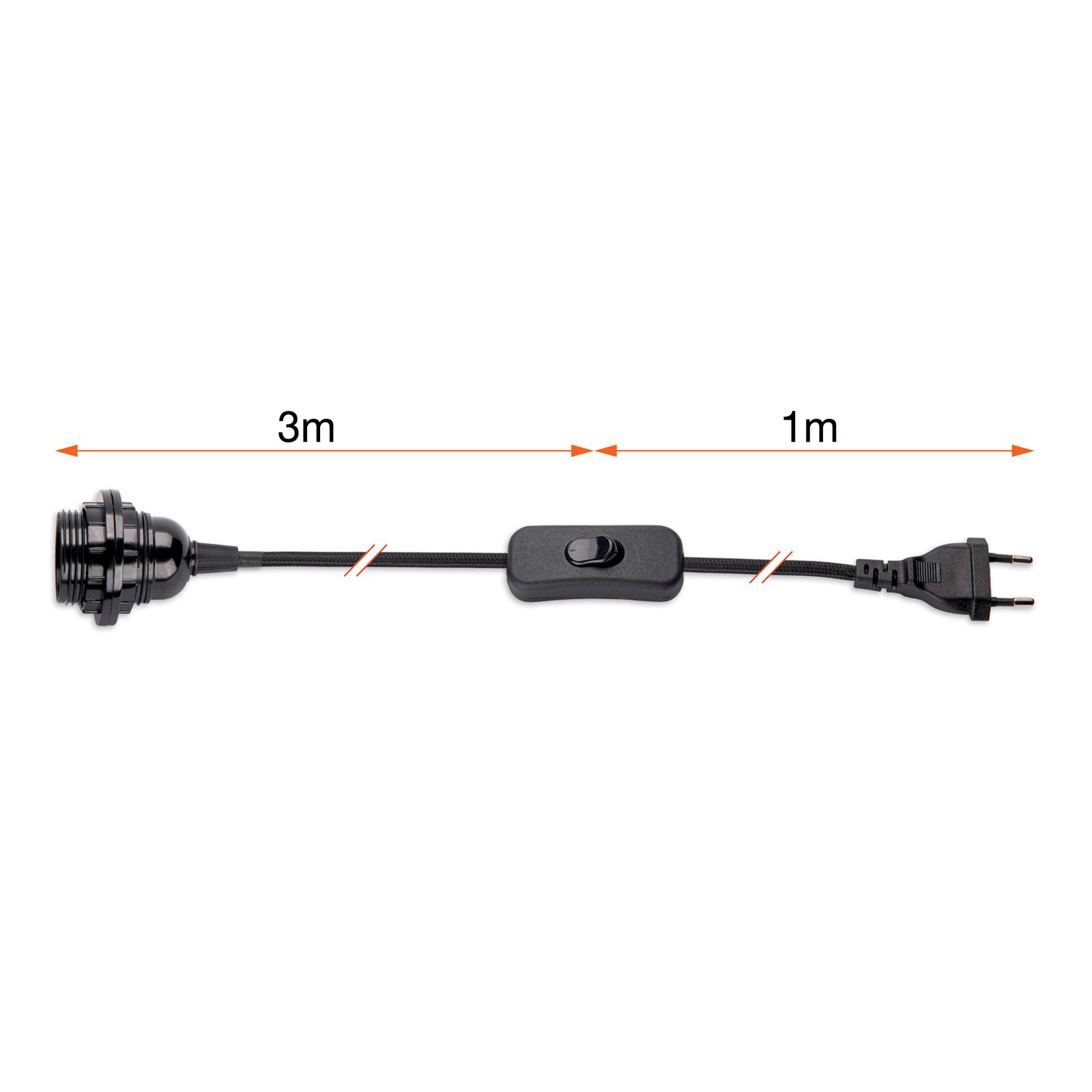 Anschlusskabel E27, Schalter, 4 m, Schwarz