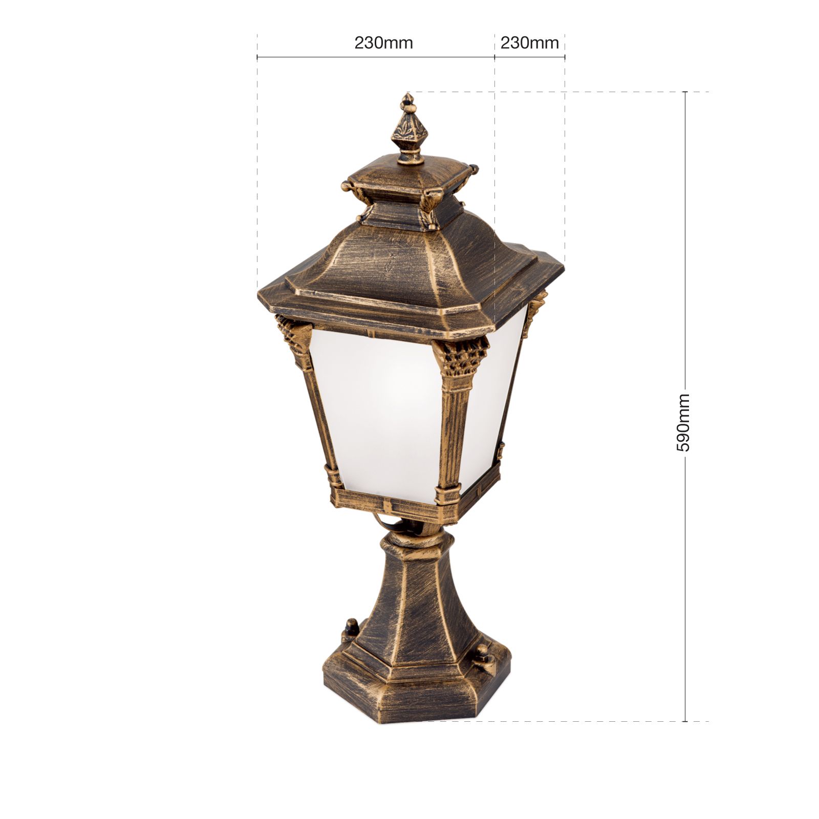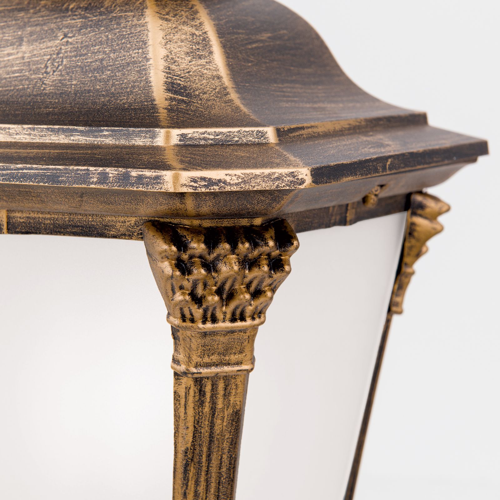 Das matte Glas der vier Scheiben der Laterne streut das Licht und verhindert eine Blendung. Eine E27-Fassung mit maximal 60 Watt in Kombination mit dem matten Glas machen den Einsatz verschiedenster Leuchtmittel möglich.