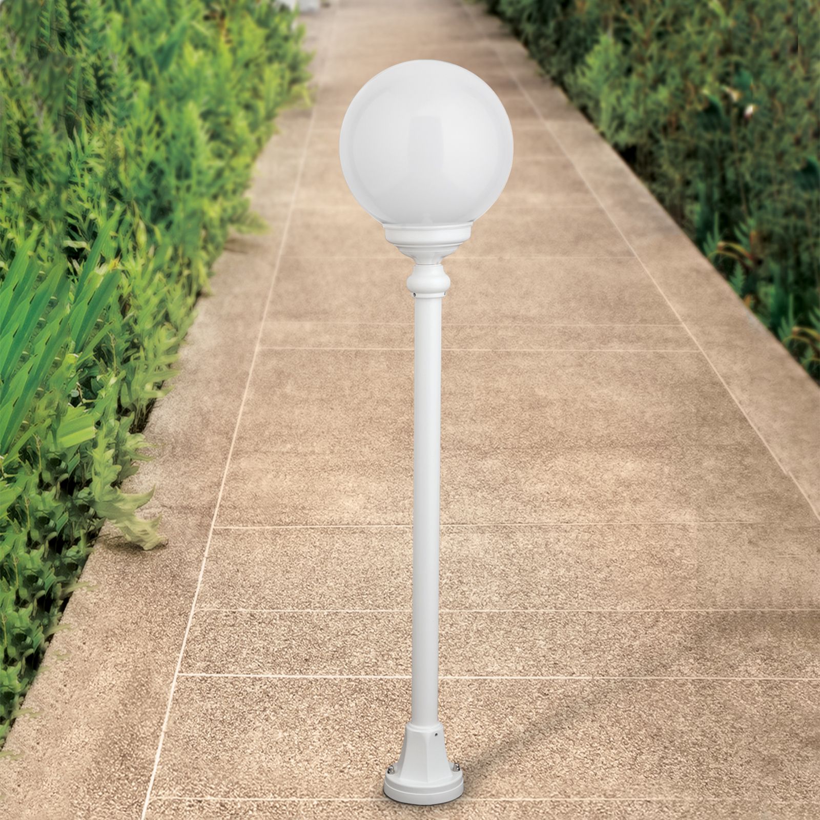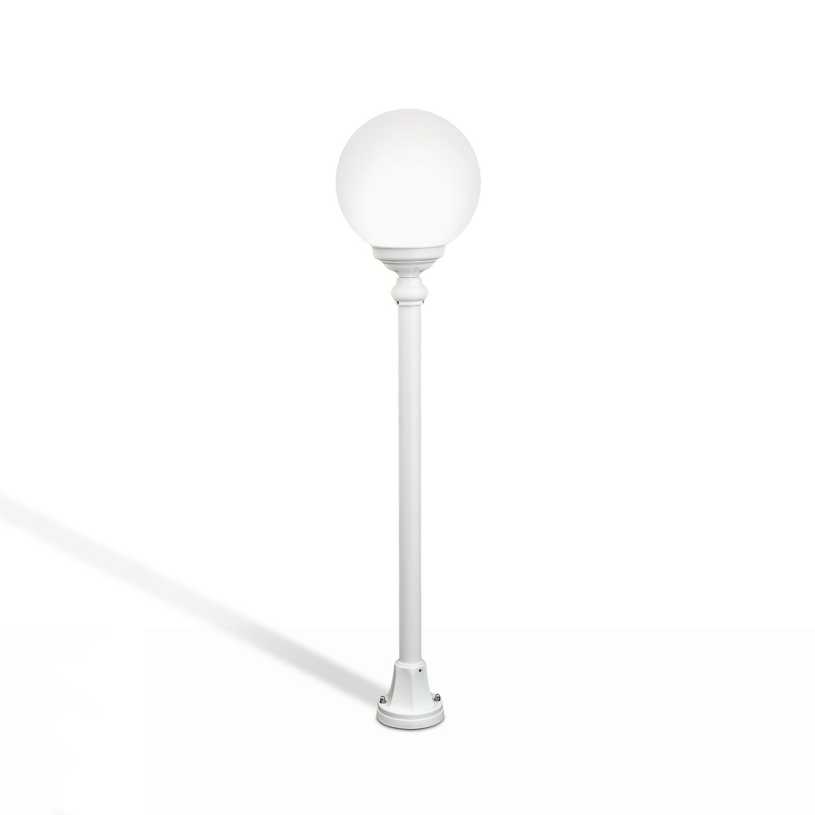 Die Wegeleuchte REIKA ist sowohl unter Tags als auch bei Nacht ein klassisches Gartenaccessoire und ein ausgezeichneter Lichtspender von Einfahrten und Gartenwegen. Eine opalglänzende Acrylglaskugel sorgt für eine gleichmäßig angenehme und großflächige Lichtverteilung und beleuchtet die Gehwege auf märchenhafte und sichere Weise. Mit der Schutzklasse IP43 ist sie vor grobkörnigen Fremdkörper (>1mm) und Sprühwasser geschützt. Die Leuchte ist mit einem Phasenanschnittdimmer dimmbar, wodurch sich ganz leicht eine angenehme Atmosphäre erzeugen lässt, wenn Sie im Terrassenbereich eingesetzt wird. Ausgestattet ist sie mit einer E27-Fassung und kann mit maximal 75 Watt bestückt werden. Mit sparsamen LED-Lampen eignet sie sich für den Einsatz als energiesparende, permanente Lichtquelle.