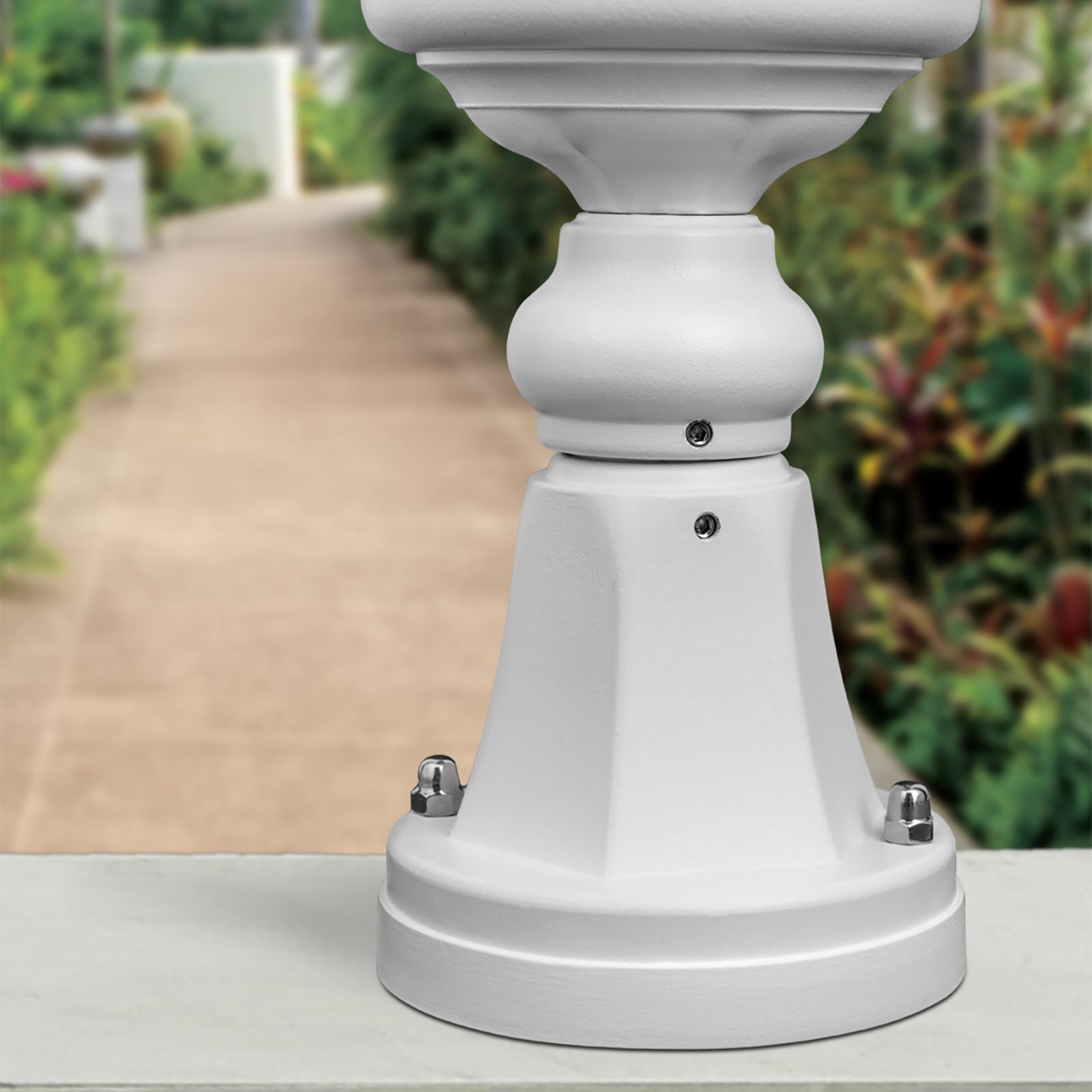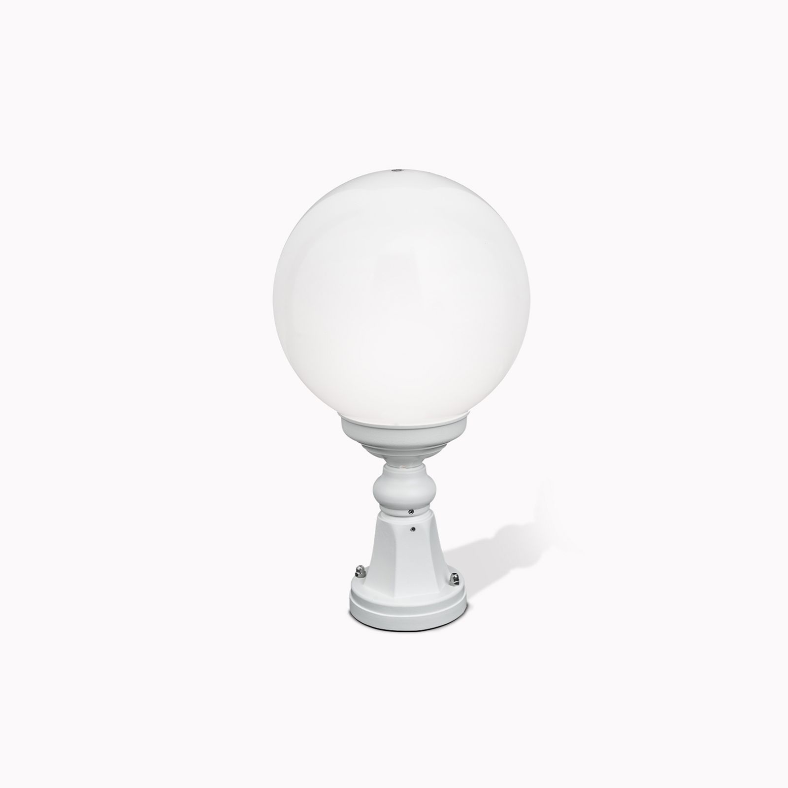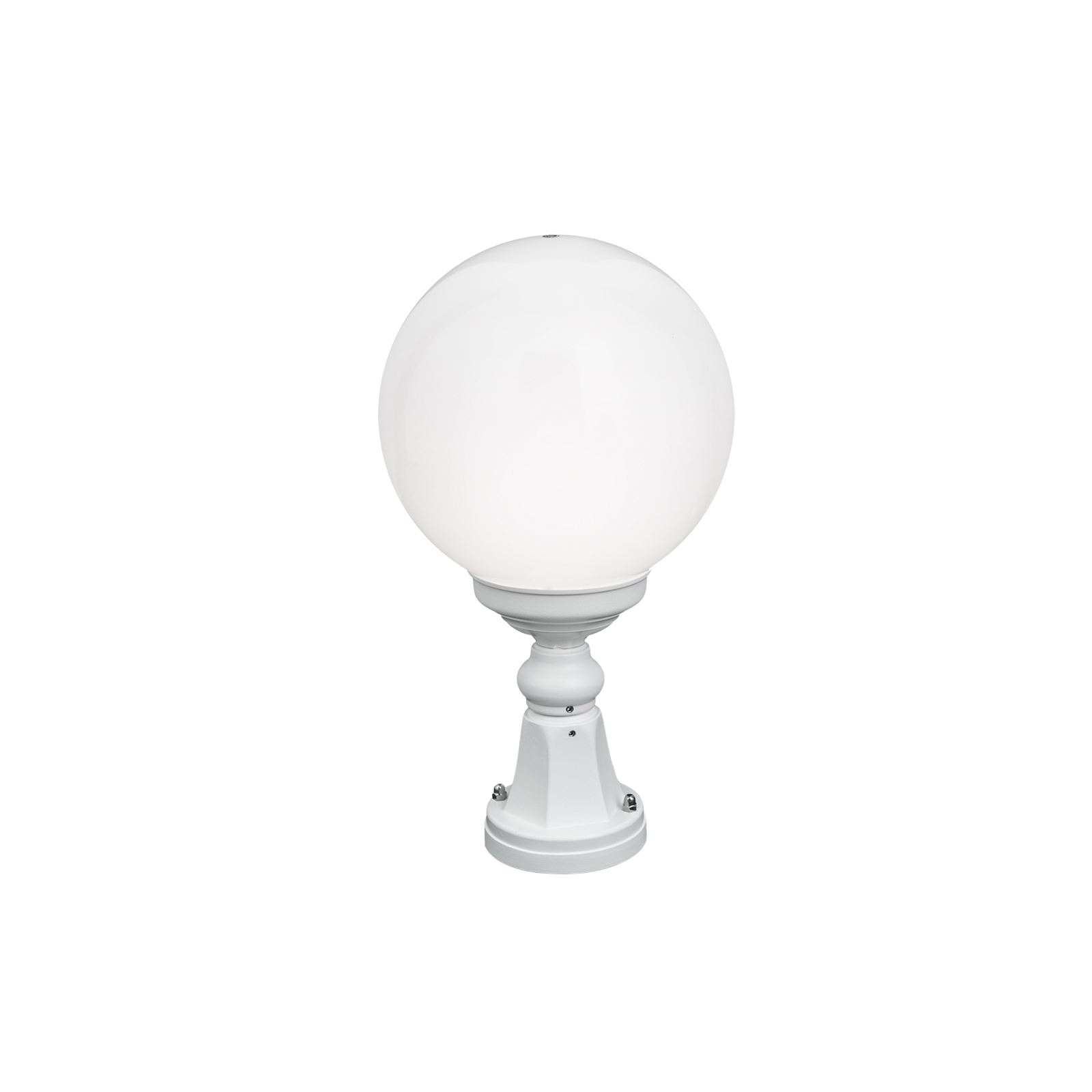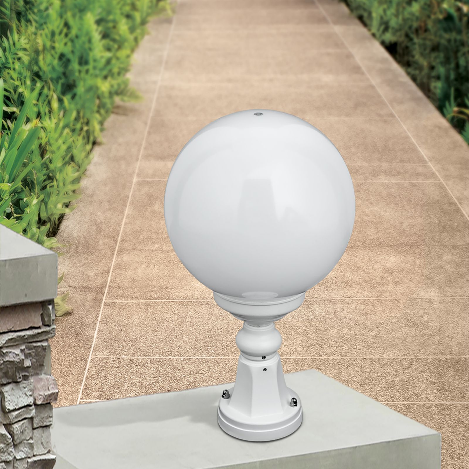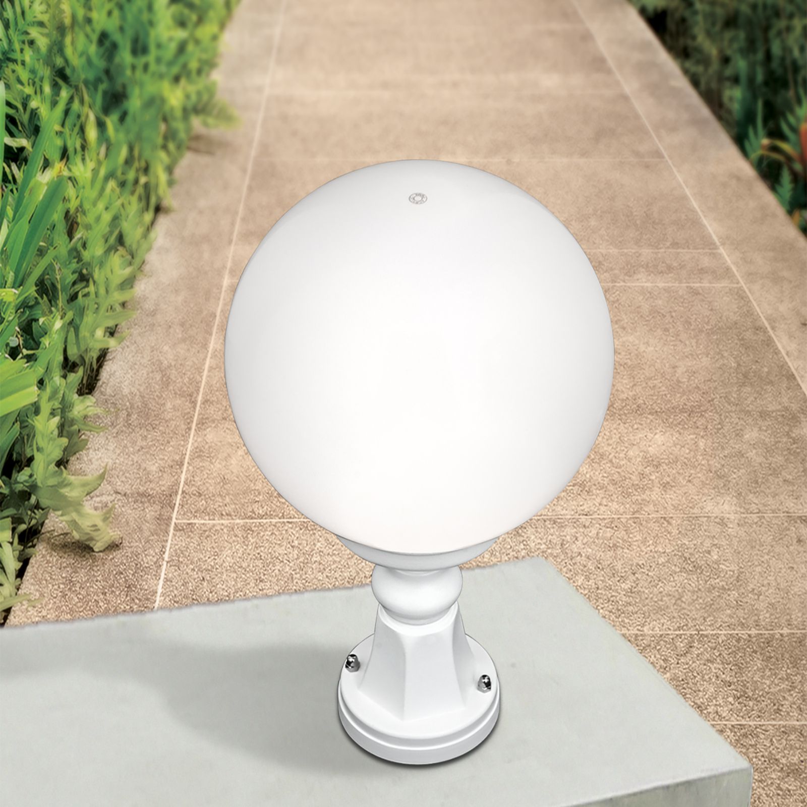 Die Sockelleuchte REIKA im klassischen Stil beleuchtet Ihren Vorgarten und zaubert auf stimmungsvolle Weise Licht auf die Gehwege. Auf einem Sockel befindet sich eine opal-glänzende Acrylglaskugel, die eine schöne Rundumbeleuchtung entstehen lässt, ohne den Betrachter zu blenden. Mit der Schutzklasse IP43 ist sie vor grobkörnigen Fremdkörper (>1mm) und Sprühwasser geschützt. Die Leuchte ist mit einem Phasenanschnittdimmer dimmbar, wodurch sich ganz leicht eine angenehme Atmosphäre erzeugen lässt, wird sie auf einer Terrasse angebracht. Ausgestattet ist sie mit einer E27-Fassung und kann mit maximal 75 Watt bestückt werden. Mit sparsamen LED-Lampen eignet sie sich für den Einsatz als energiesparendes Orientierungslicht.