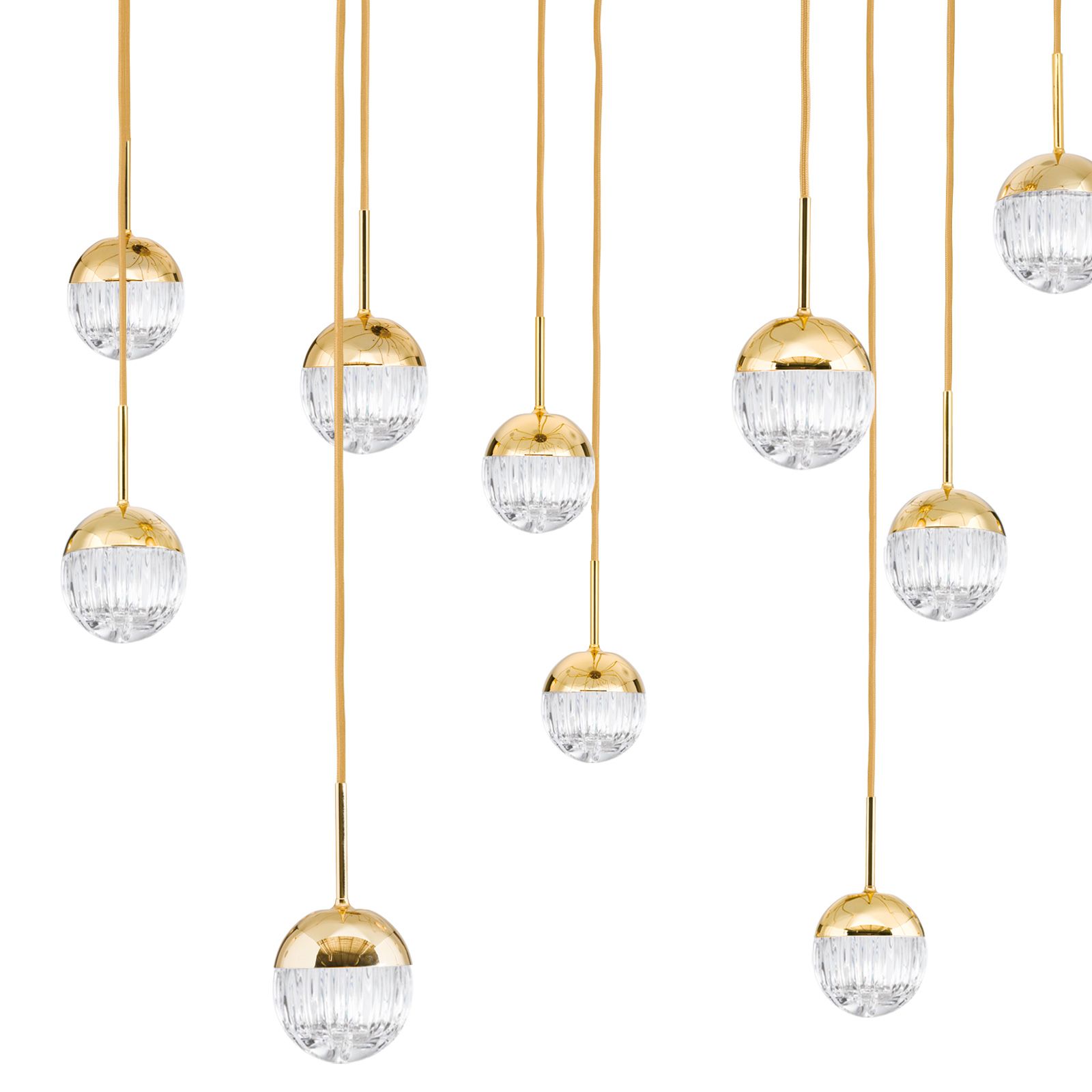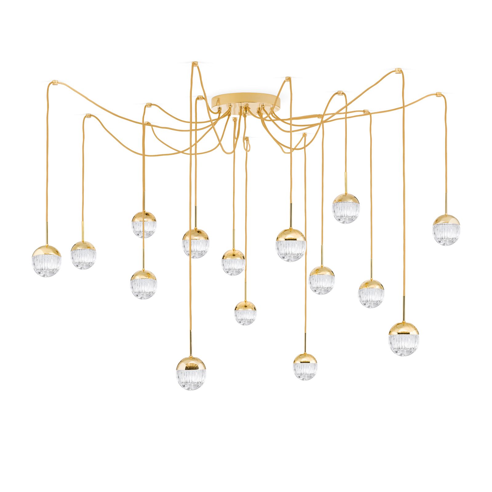 BALL Cluster, 15-flammig, gold, mit klaren Kristallgläsern in Linienschliff