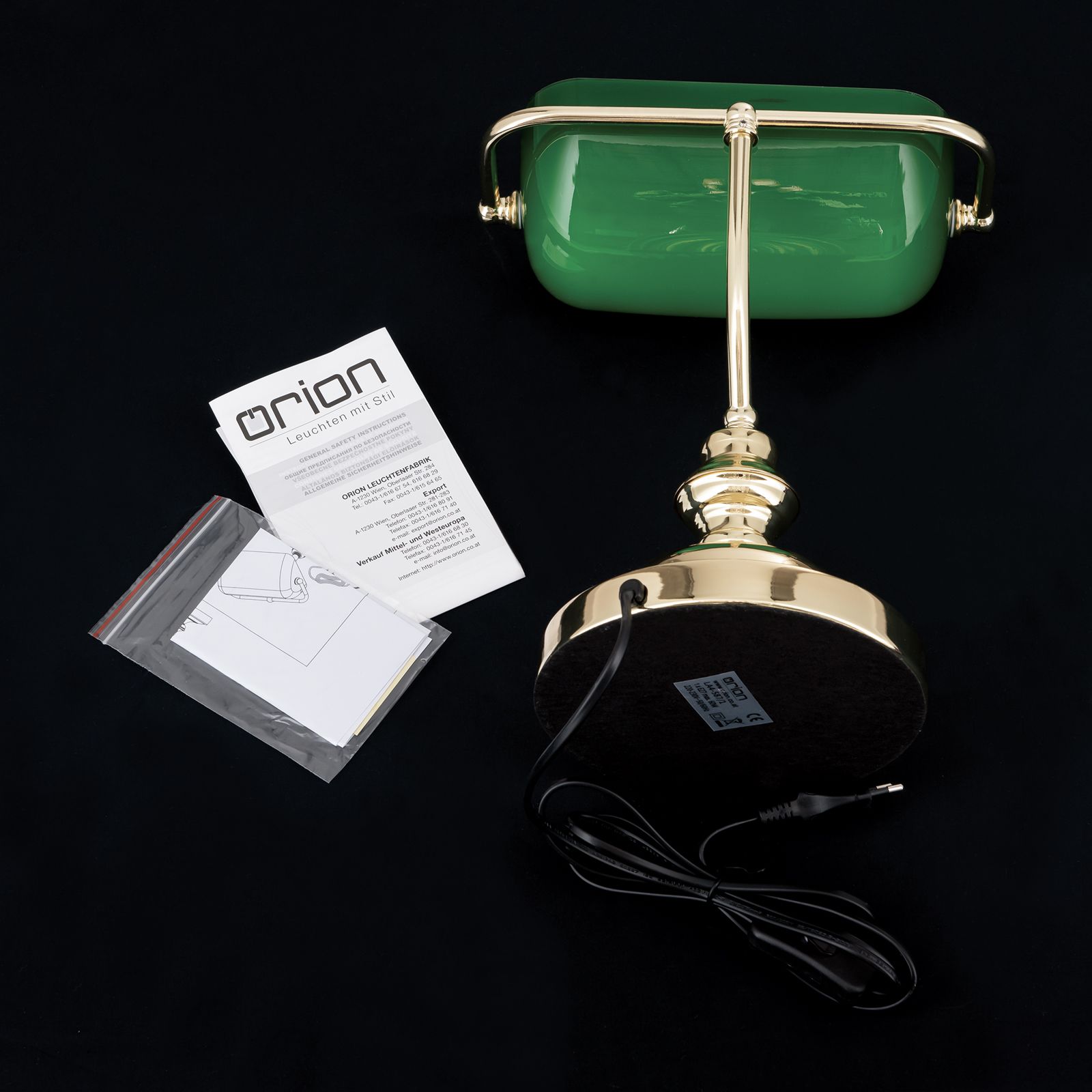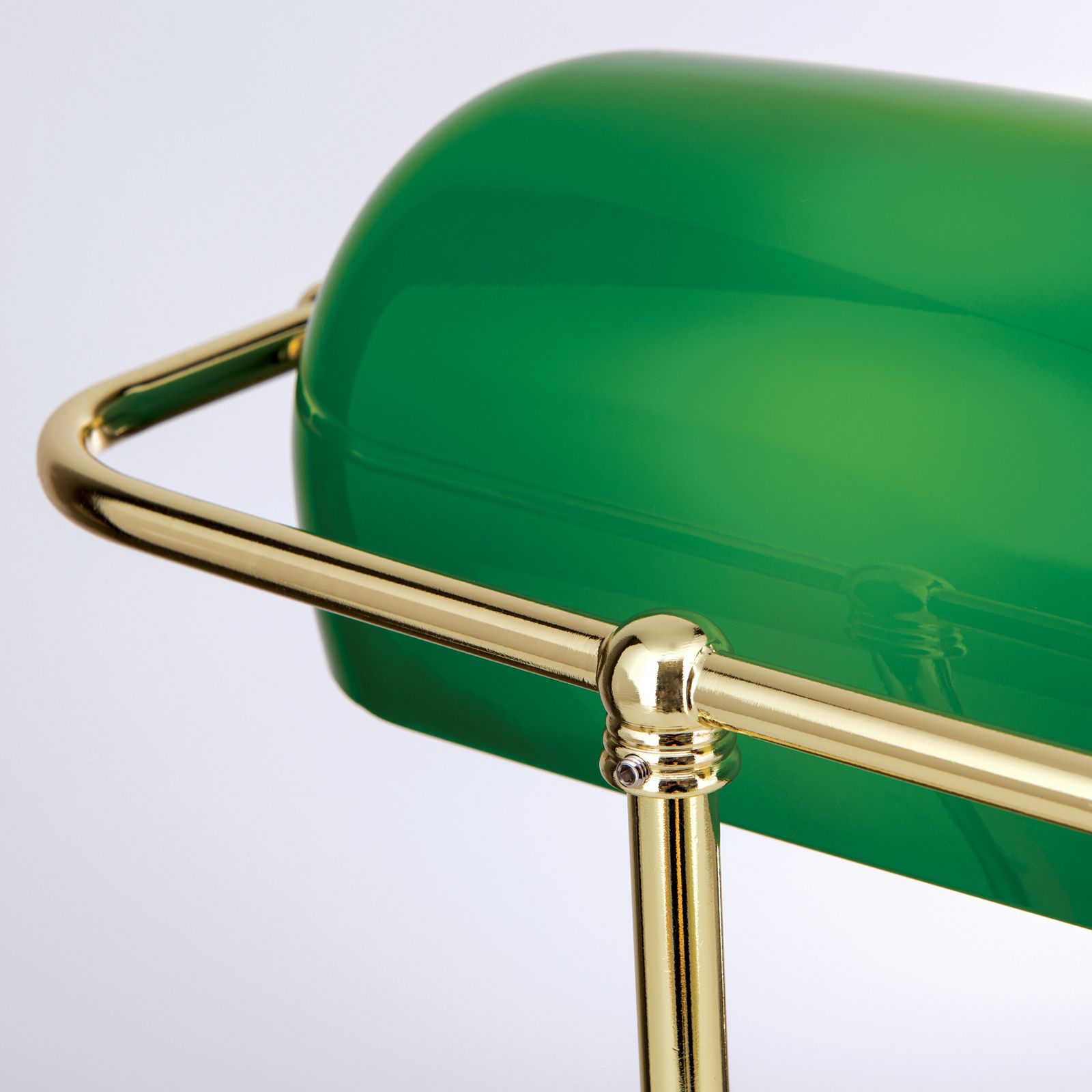 BANKERSLAMP, Messing glänzend, mit grünem Glas