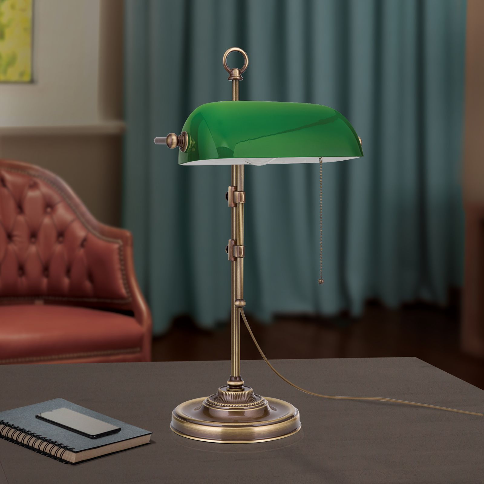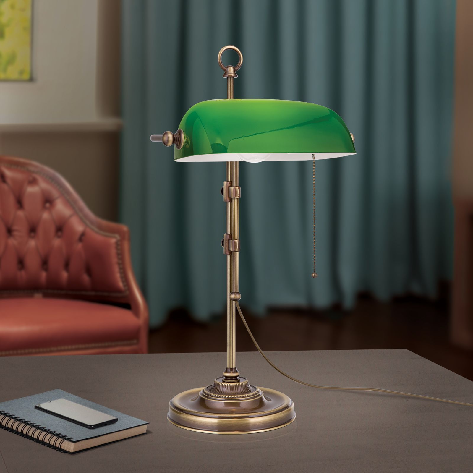 Bankerslamp HARVARD, Patina mit grünem Glasschirm, 53cm