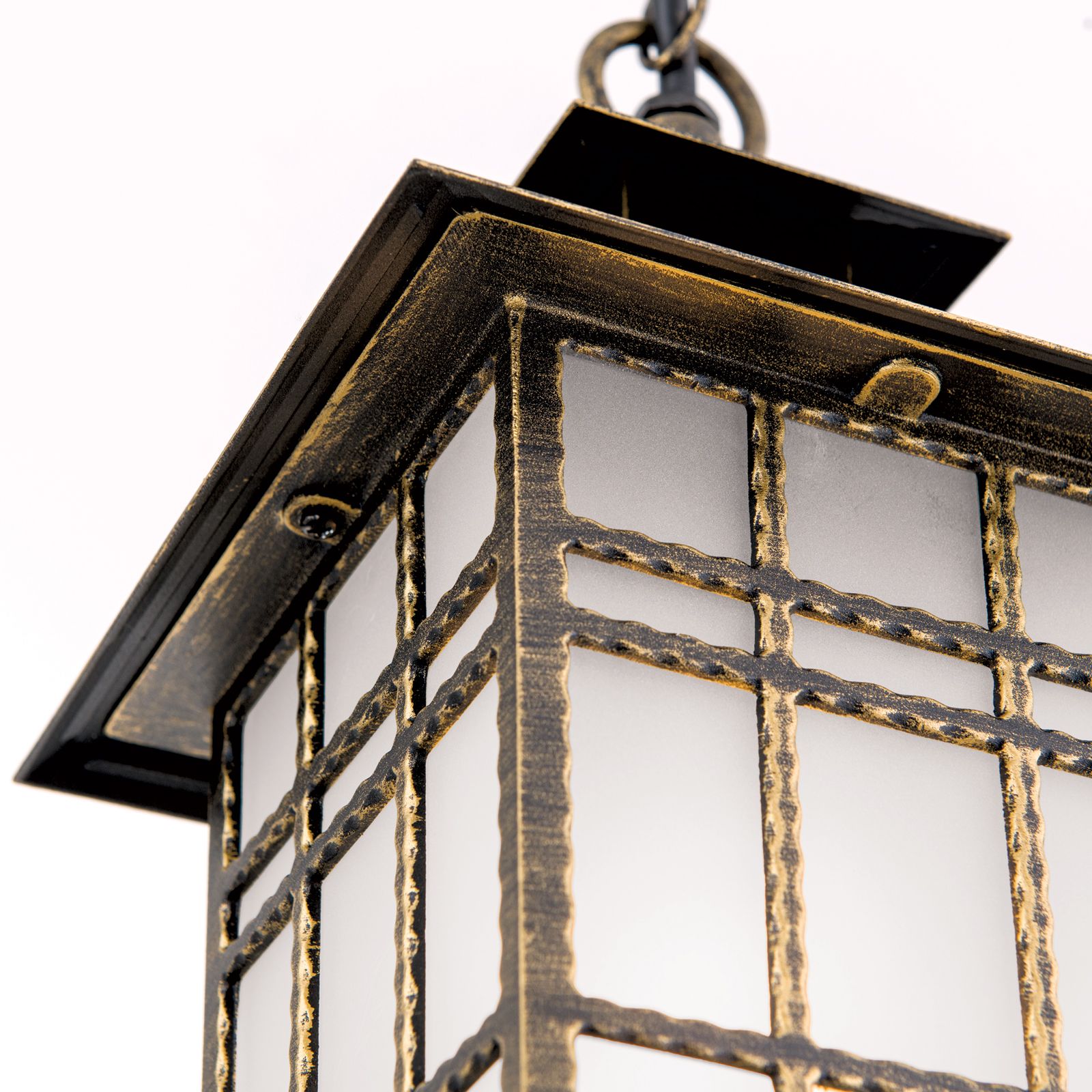 Die Außenhängeleuchte KIKO folgt einem klaren linearen Aufbau und ist geprägt vom Kontrast der patinierten Laternenmontur und den satinierten Glasscheiben. Diese sorgen für eine sanfte Streuung des Lichts und eine stimmungsvolle Beleuchtung im Außenbereich, ob im Gartenhäuschen oder der überdachten Terrasse. Die Kettenabhängung kann nach Bedarf gekürzt werden.