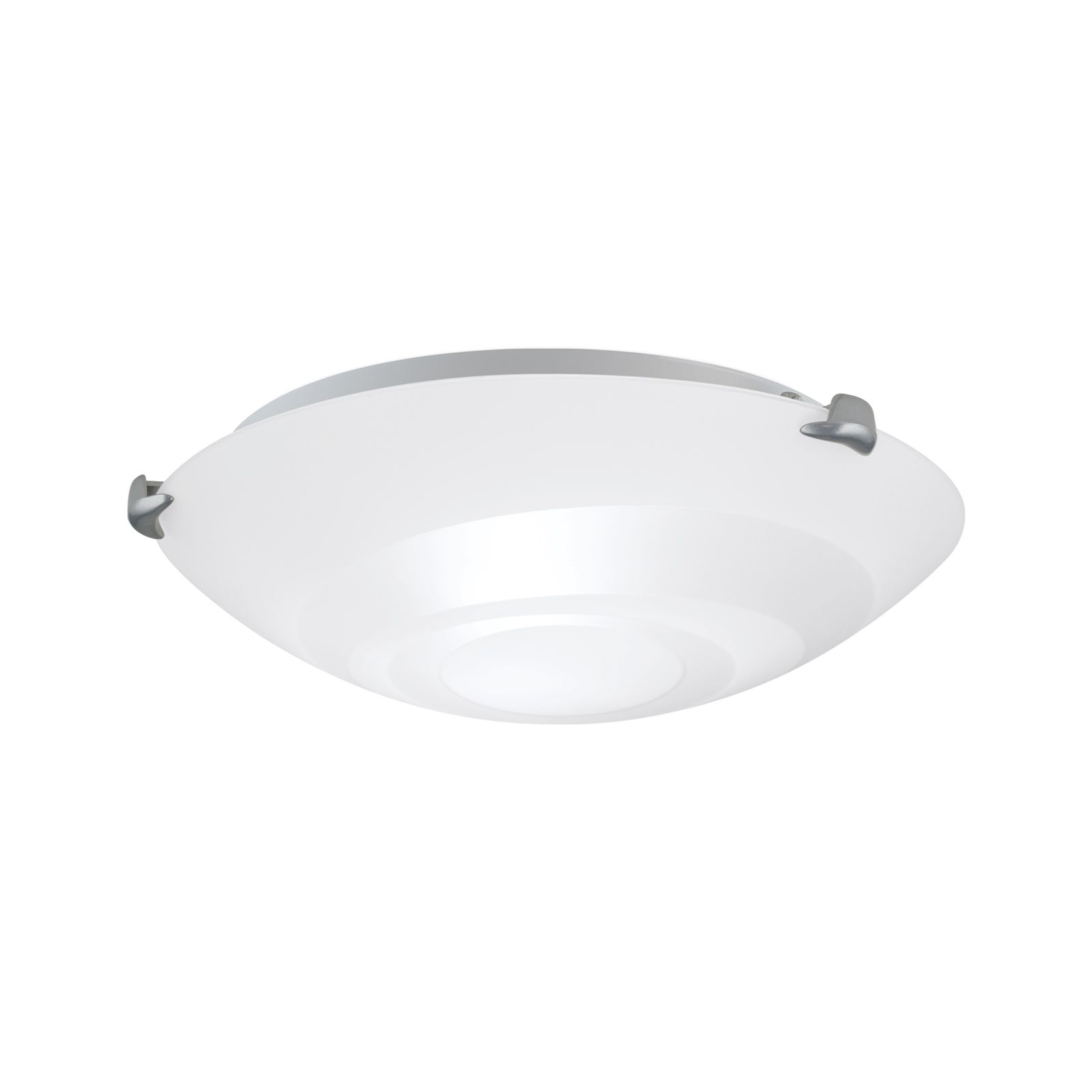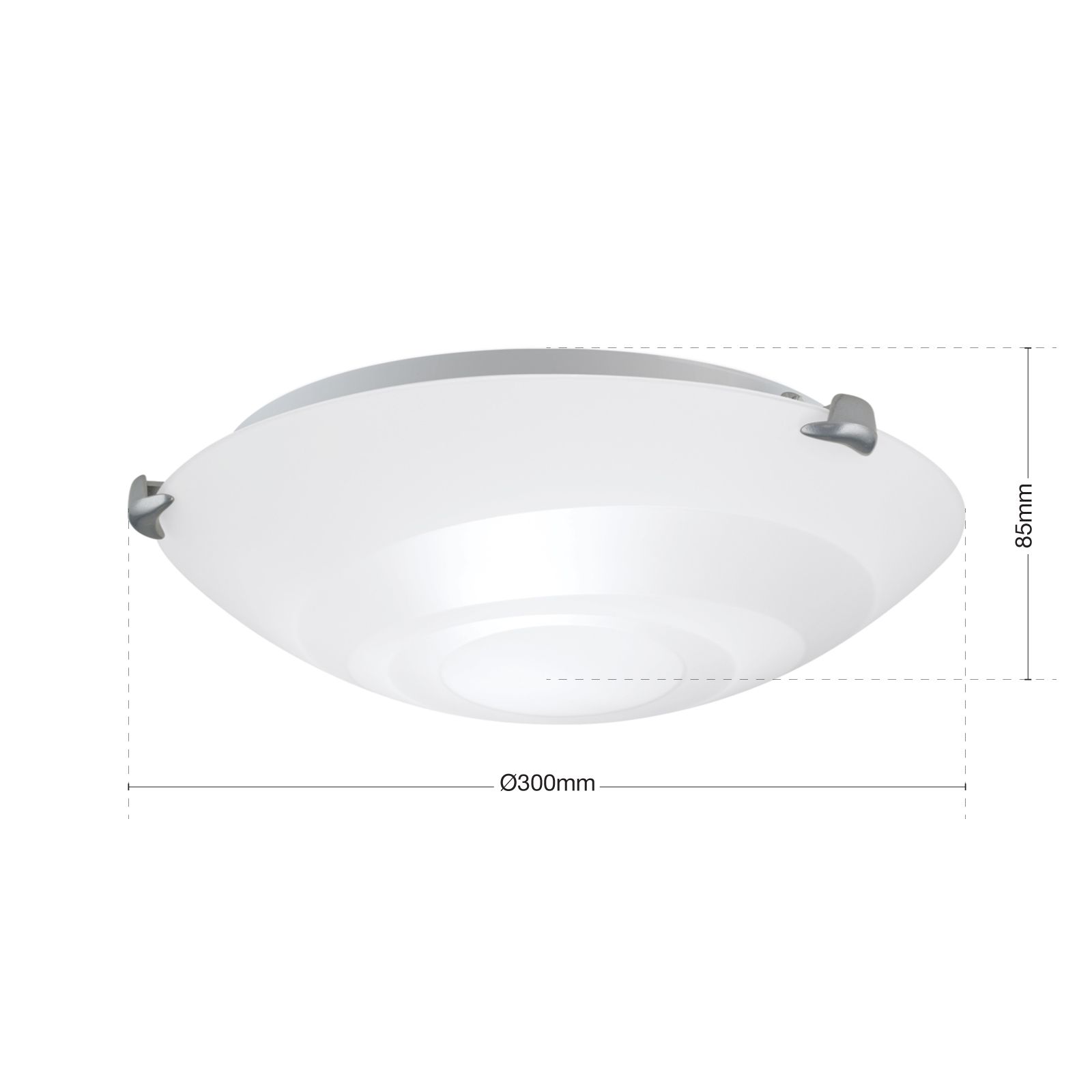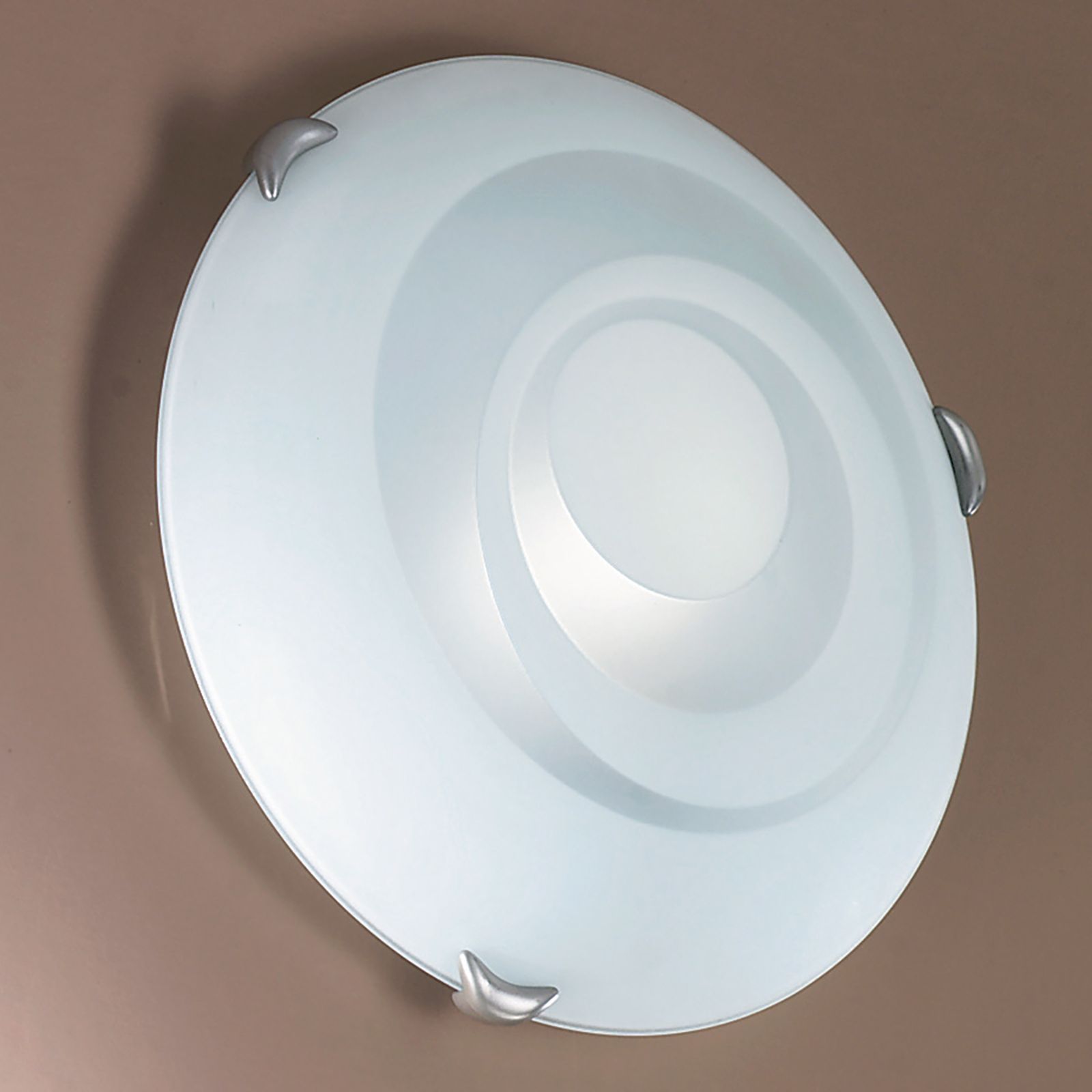 Die satinierte Deckenleuchte ADA, die auch als Wandleuchte montiert werden kann, verfügt über einen großen Opalglas-Schirm mit dekorativem Spiraldesign, der durch seine weiße Lackierung auf der Innenseite eine gleichmäßige und blendfreie Beleuchtung erzeugt. Drei stabile satinierte Stahlklemmen fixieren den großen Schirm und geben auch bei einer Wandmontage den nötigen Halt.