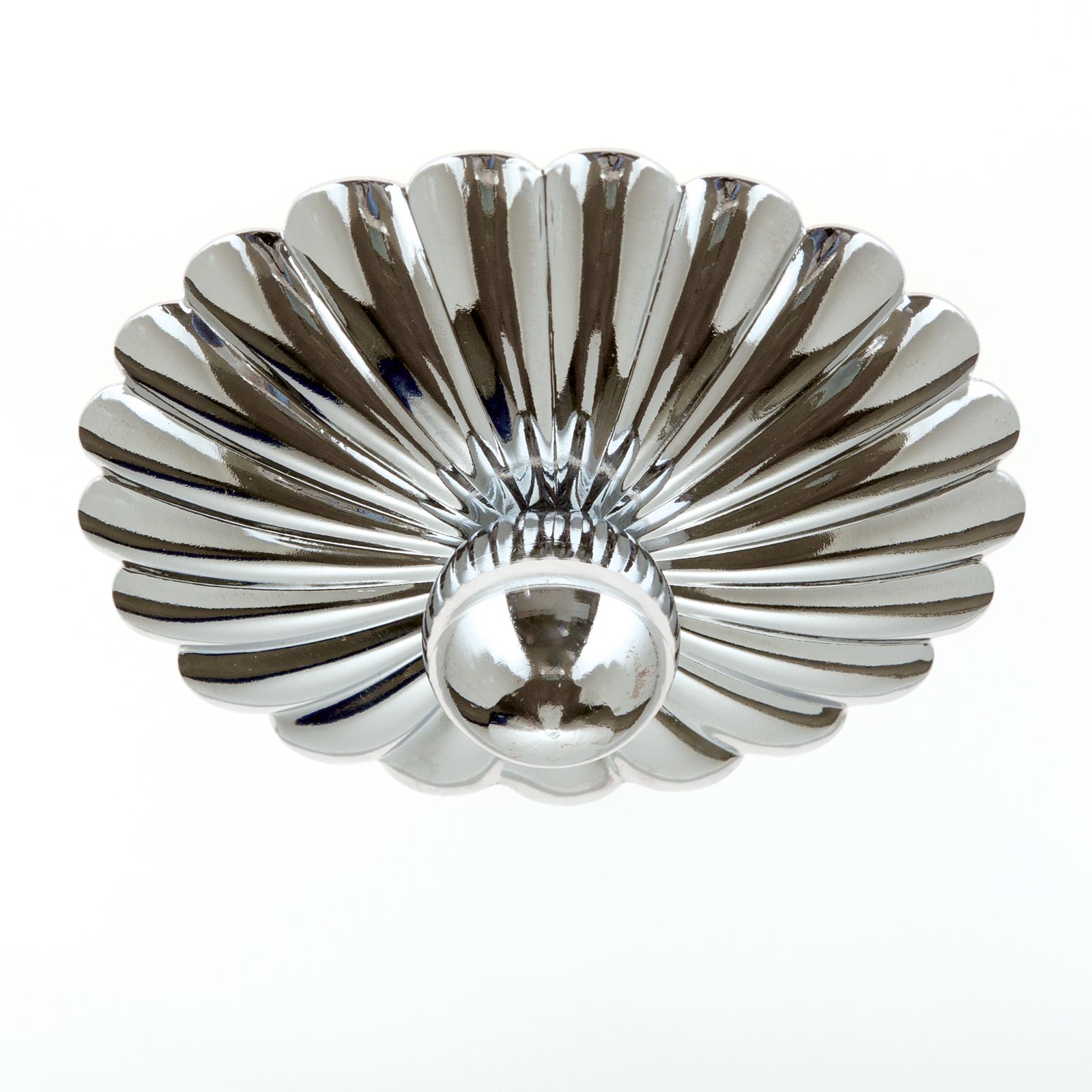 Die Deckenleuchte aus der EMPIRE-Produktreihe ist in der Mitte des Glasschirms mit einem blütenförmigen Knopf versetzt. Er krönt das Thema der Rundheit, der Zentralität, der Symmetrie. Kann etwas vollkommener sein als ein Kreis? Der Abstand von der Mitte zum Rand ist überall gleich, es gibt keine Ecken, Winkel, Schrägen. Deshalb ist diese Form auch ideal für eine Deckenleuchte: Das Licht wird absolut gleichmäßig über den Raum verteilt, demokratisch gerecht sozusagen. In Verbindung mit Vorhängen, Draperien, Teppichen wird diese Leuchte ihre ganze Wärme entfalten können. Drei E27-Fassungen liefern je maximal 60 Watt Leistung.