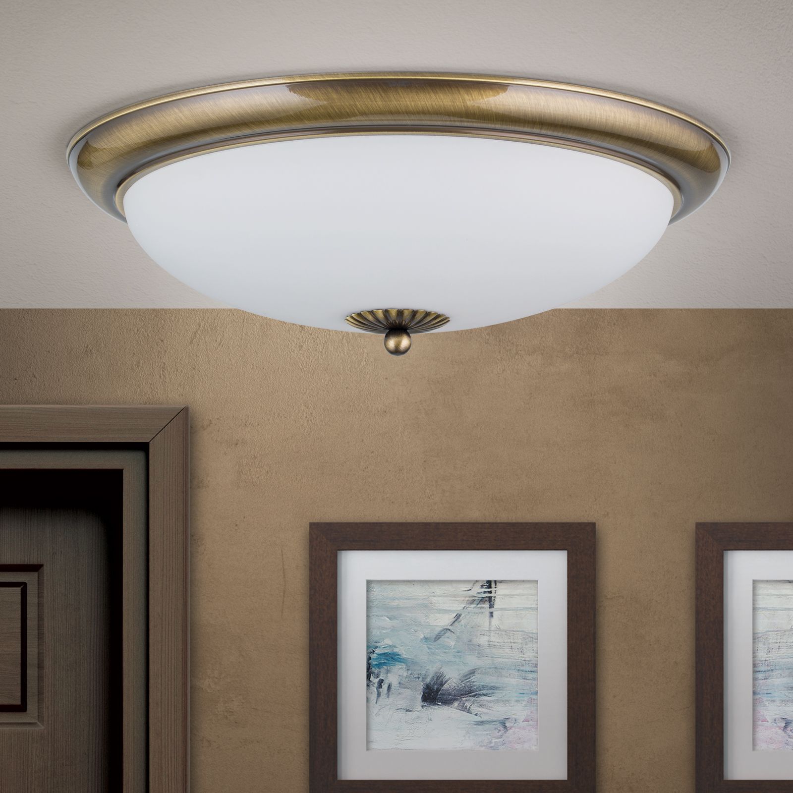 Deckenleuchte EMPIRE, Patina, mit opal mattem Glas, mit Knopf, 47cm