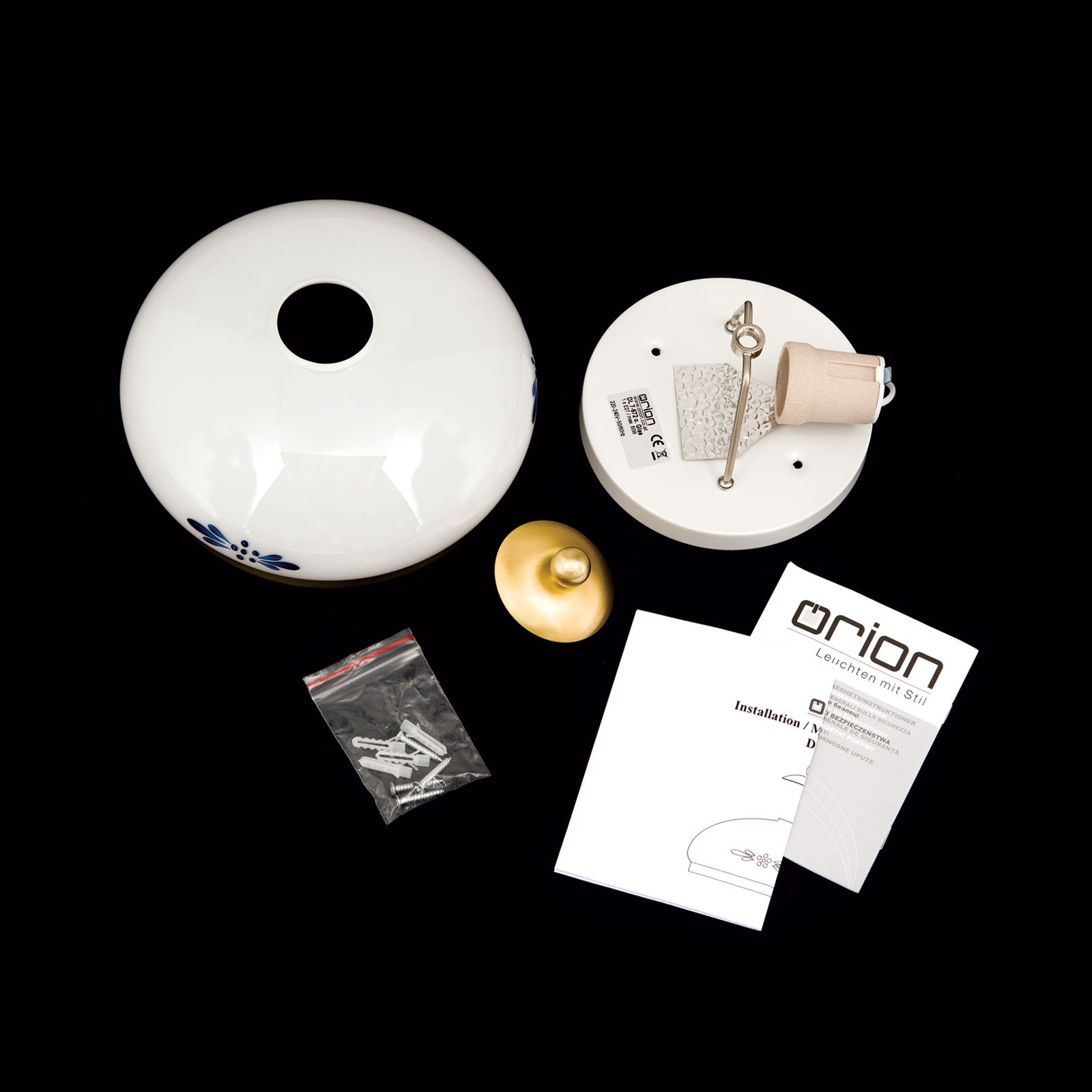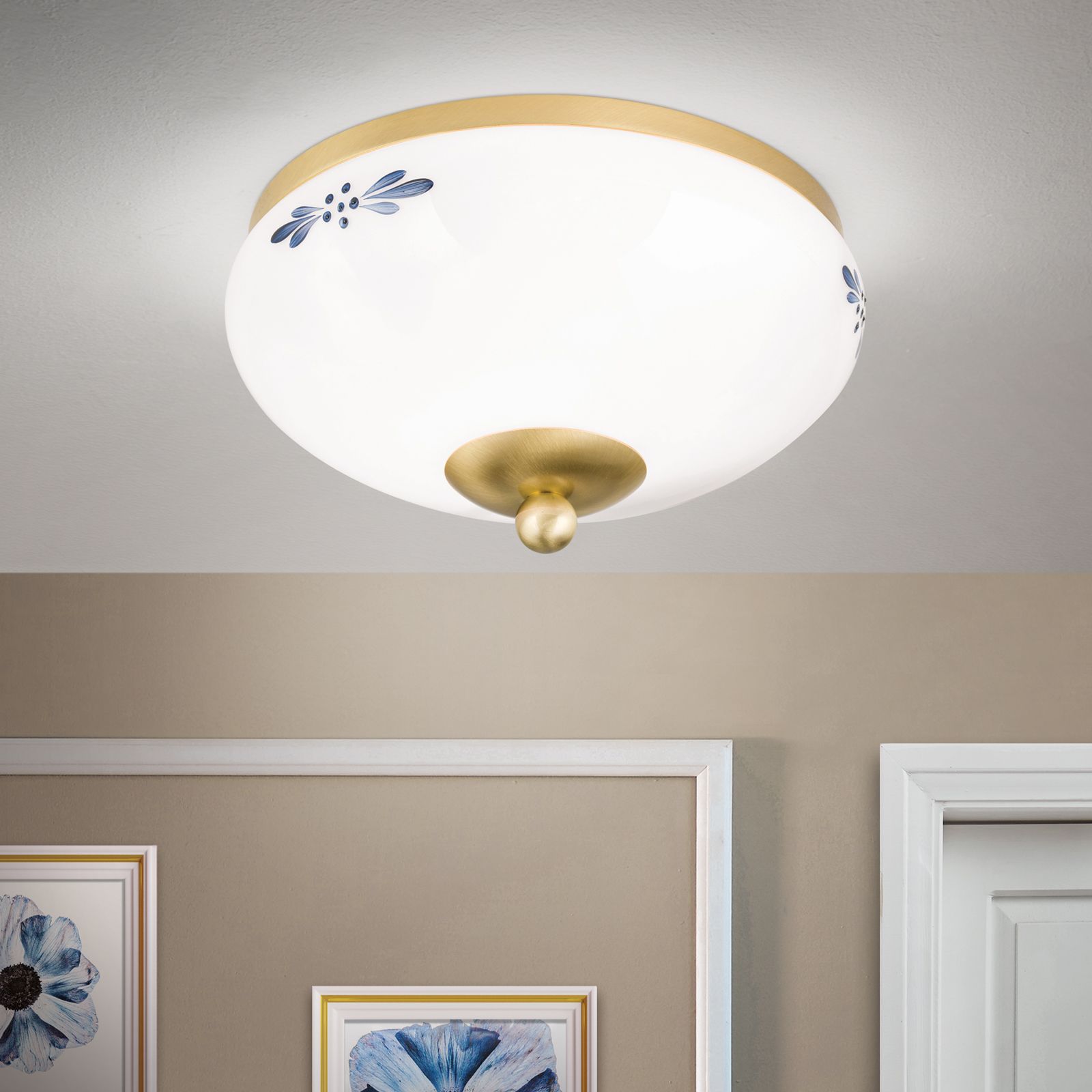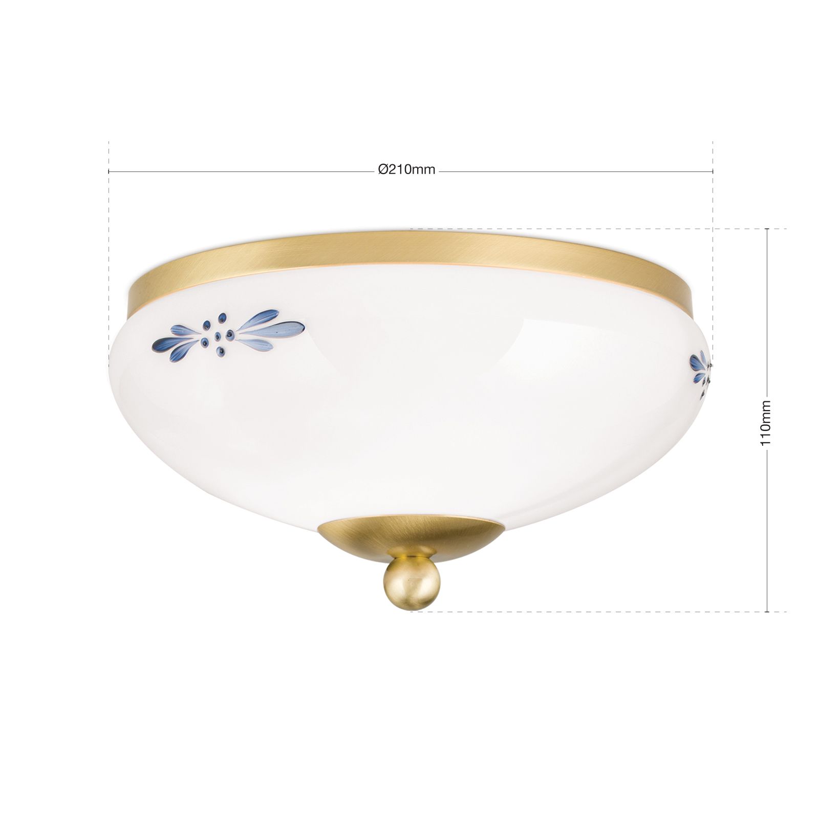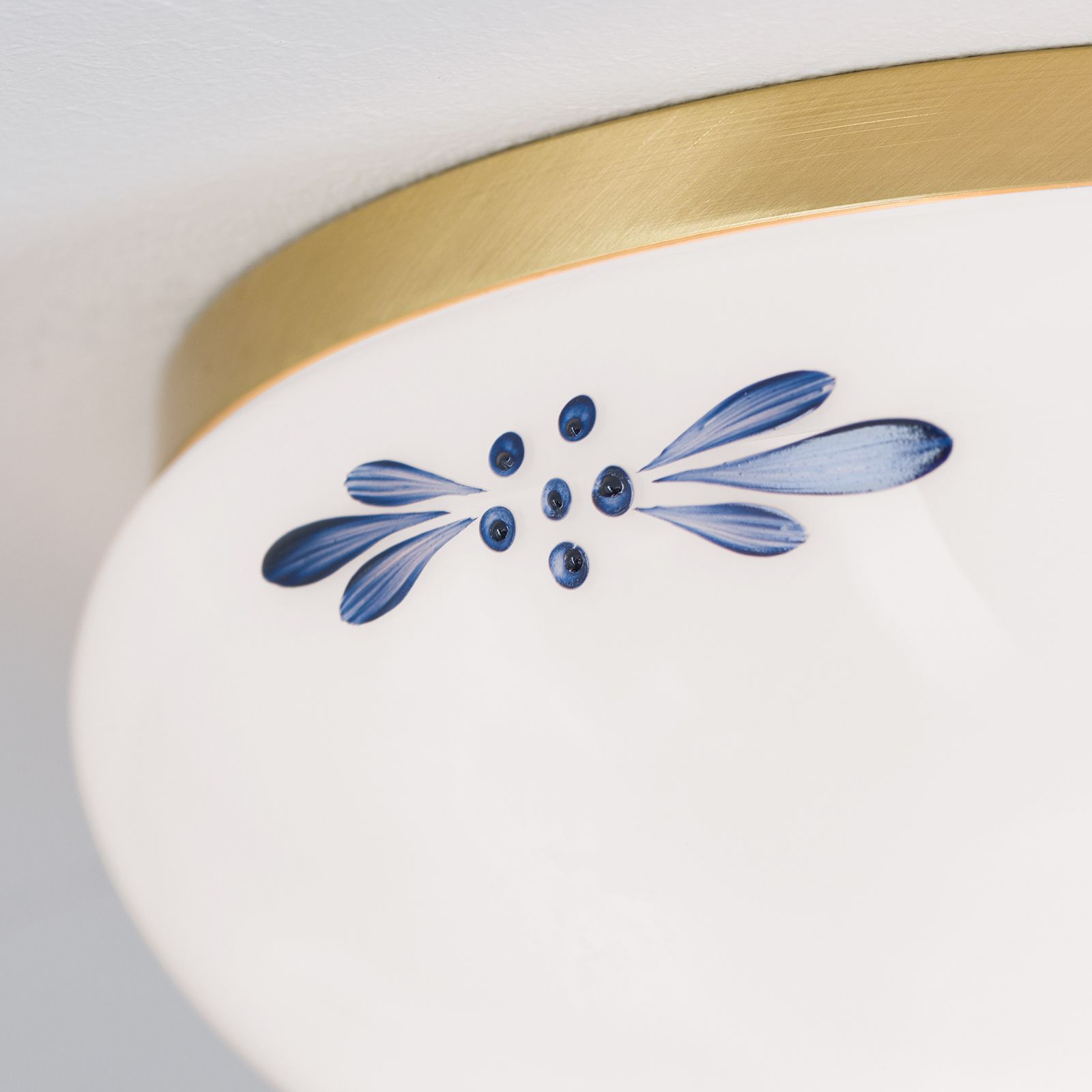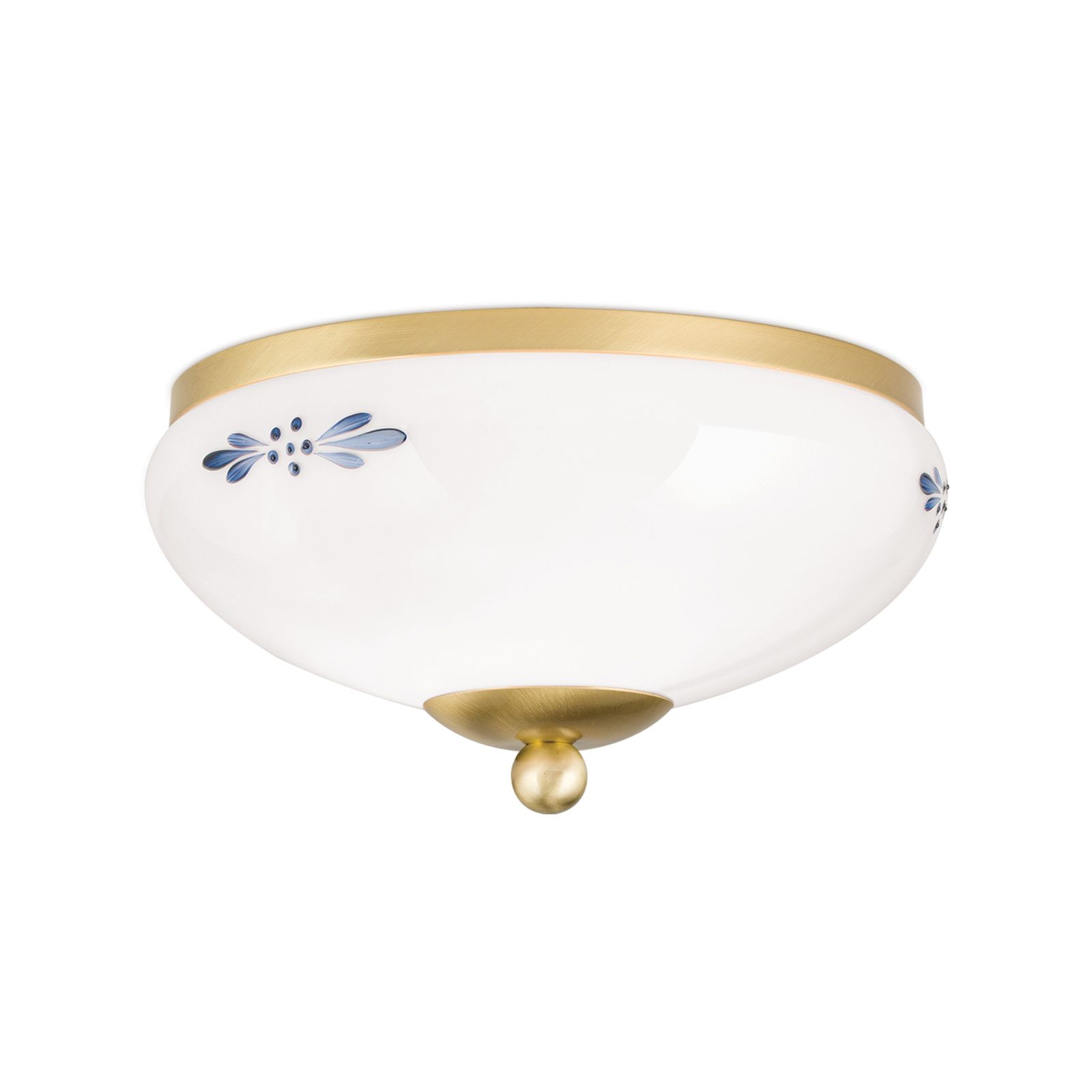 Deckenleuchte LANDHAUS, Messing, mit blauem Dekor, mit Knopf, Ø 21cm