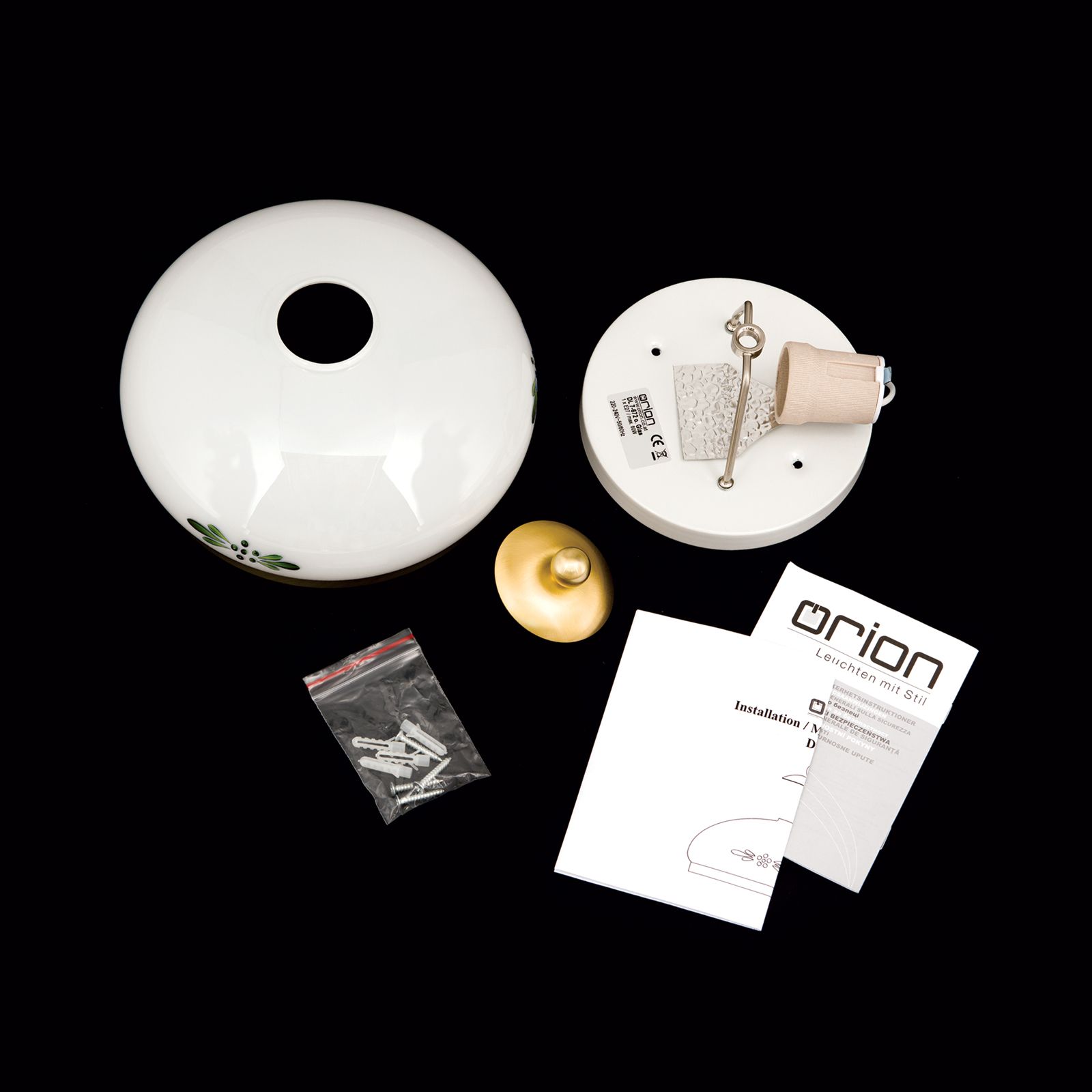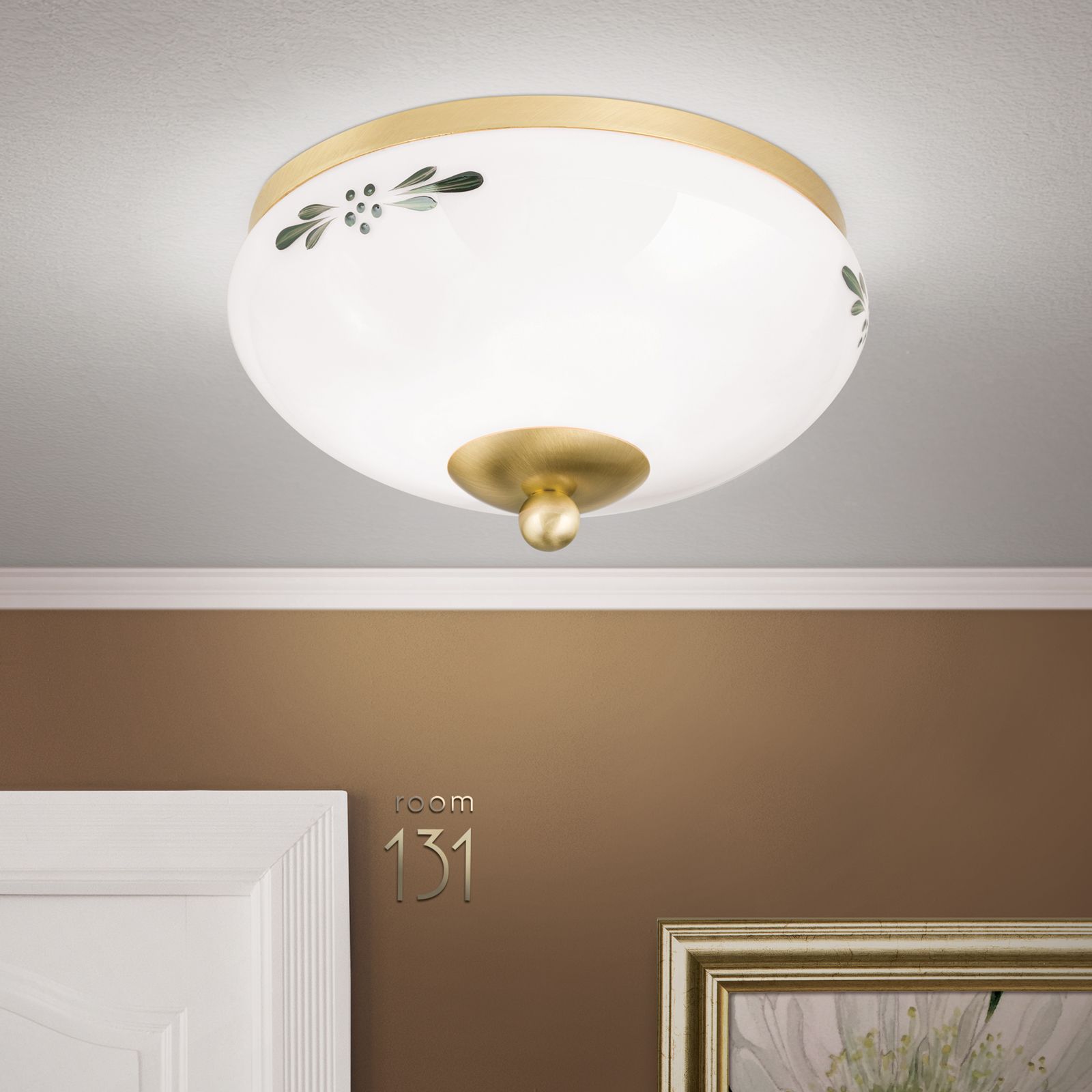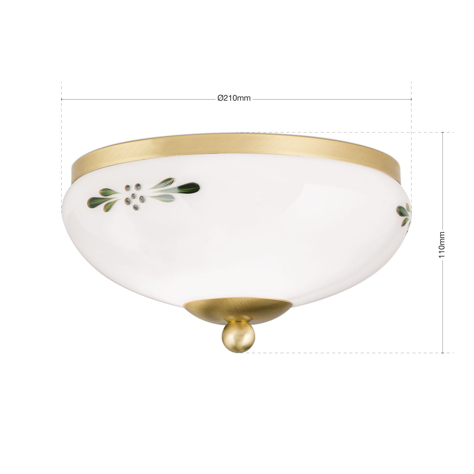 Deckenleuchte LANDHAUS, Messing, mit grünem Dekor, mit Knopf, Ø 21cm