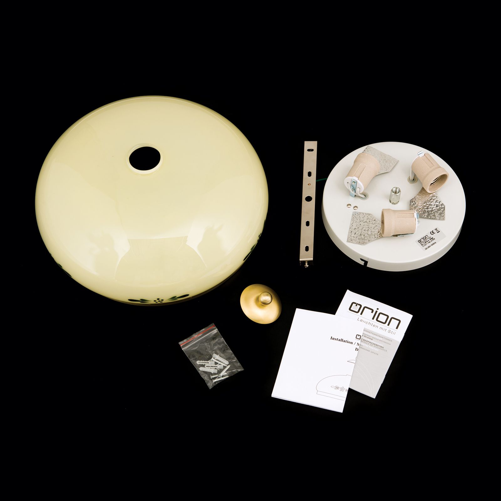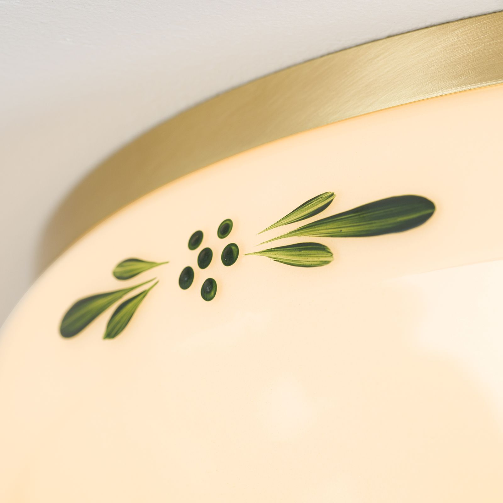 Deckenleuchte LANDHAUS, Messing, mit grünem Dekor, mit Knopf, Ø 35cm