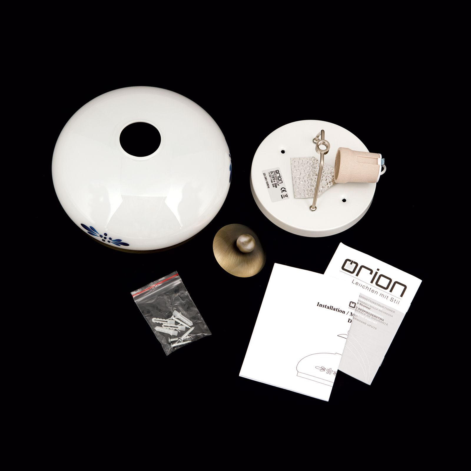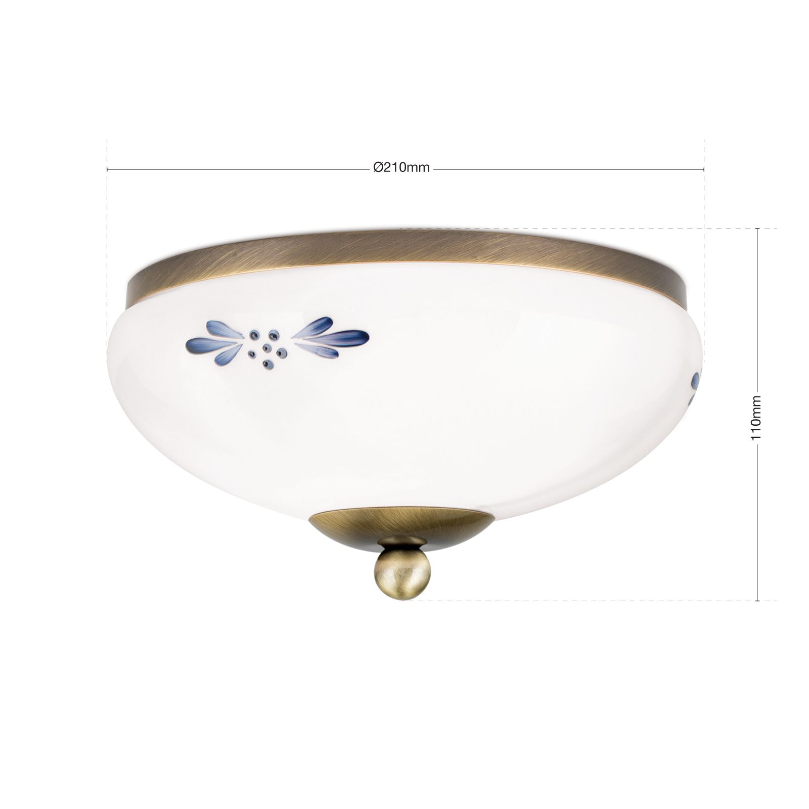 Deckenleuchte LANDHAUS, Patina, mit blauem Dekor, mit Knopf, Ø 21cm