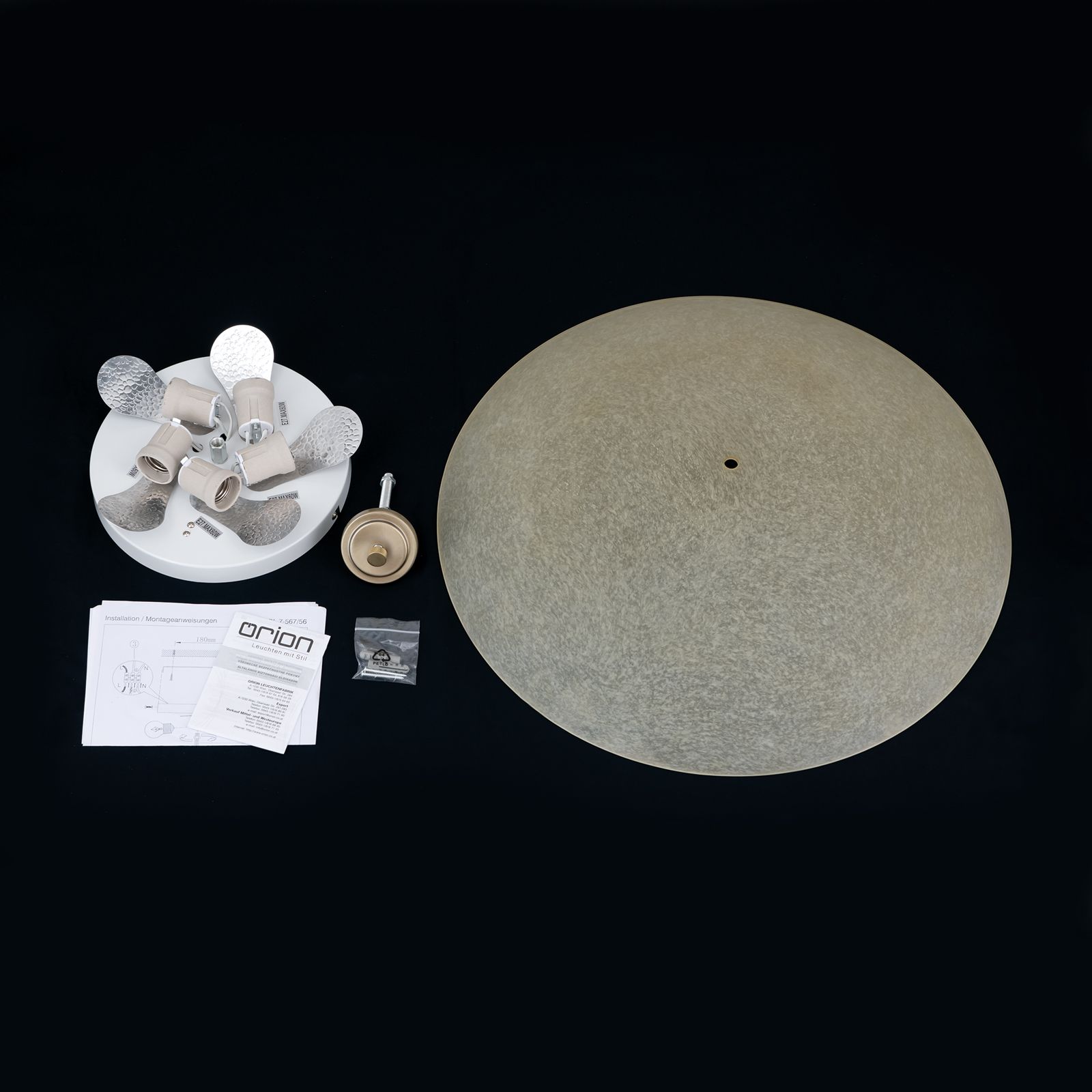 Die Deckenleuchte mit einem Durchmesser von 42 cm ist mit drei E27-Fassungen ausgestattet, die mit maximal 60 Watt bestückt werden. Mithilfe eines Phasenabschnittdimmers kann die Lichtstimmung reguliert werden. Versehen mit sparsamen LED-Lampen ist sie ein stilvolles Gestaltungselement eines klassisches Wohnensembles.