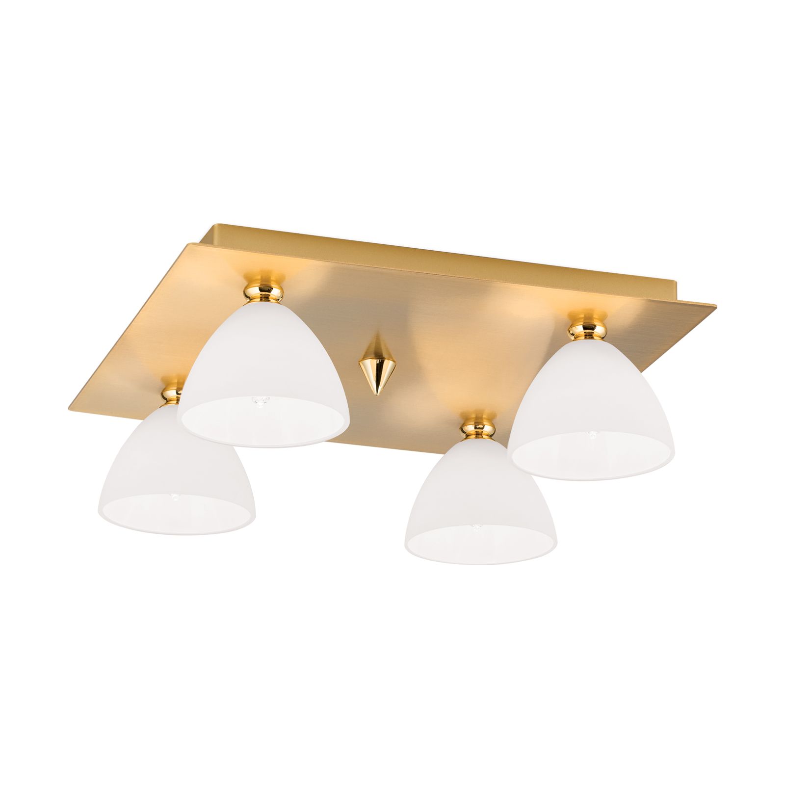 Deckenleuchte OPALDESIGN, 4-flammig, Gold-matt, mit Opalgläsern