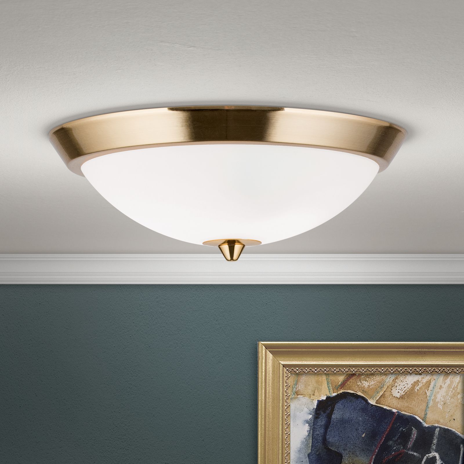 Deckenleuchte OPALDESIGN, Gold-matt, mit opal mattem Glas, 24cm