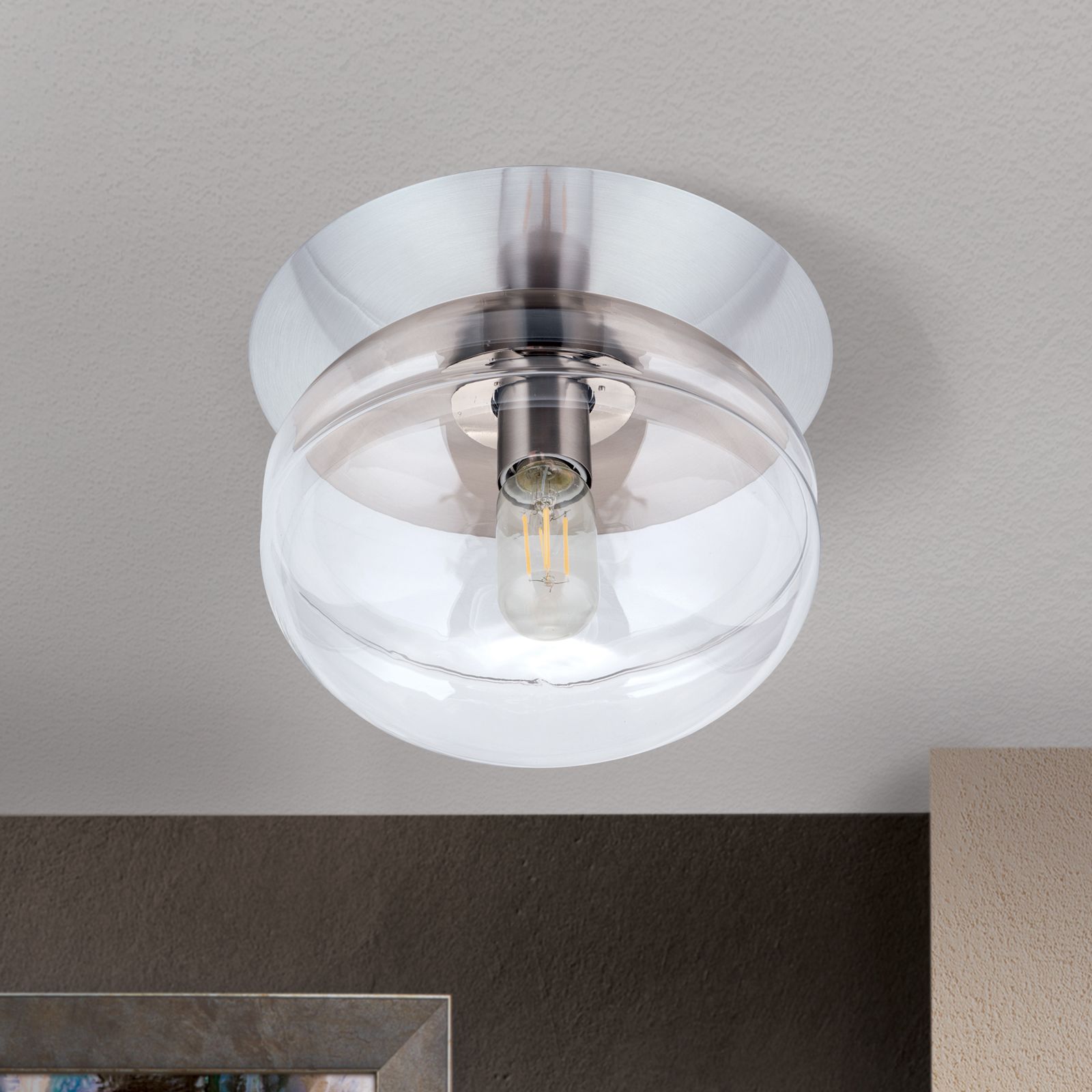 Deckenleuchte RICHARD, 1-flammig, Satin, Klar