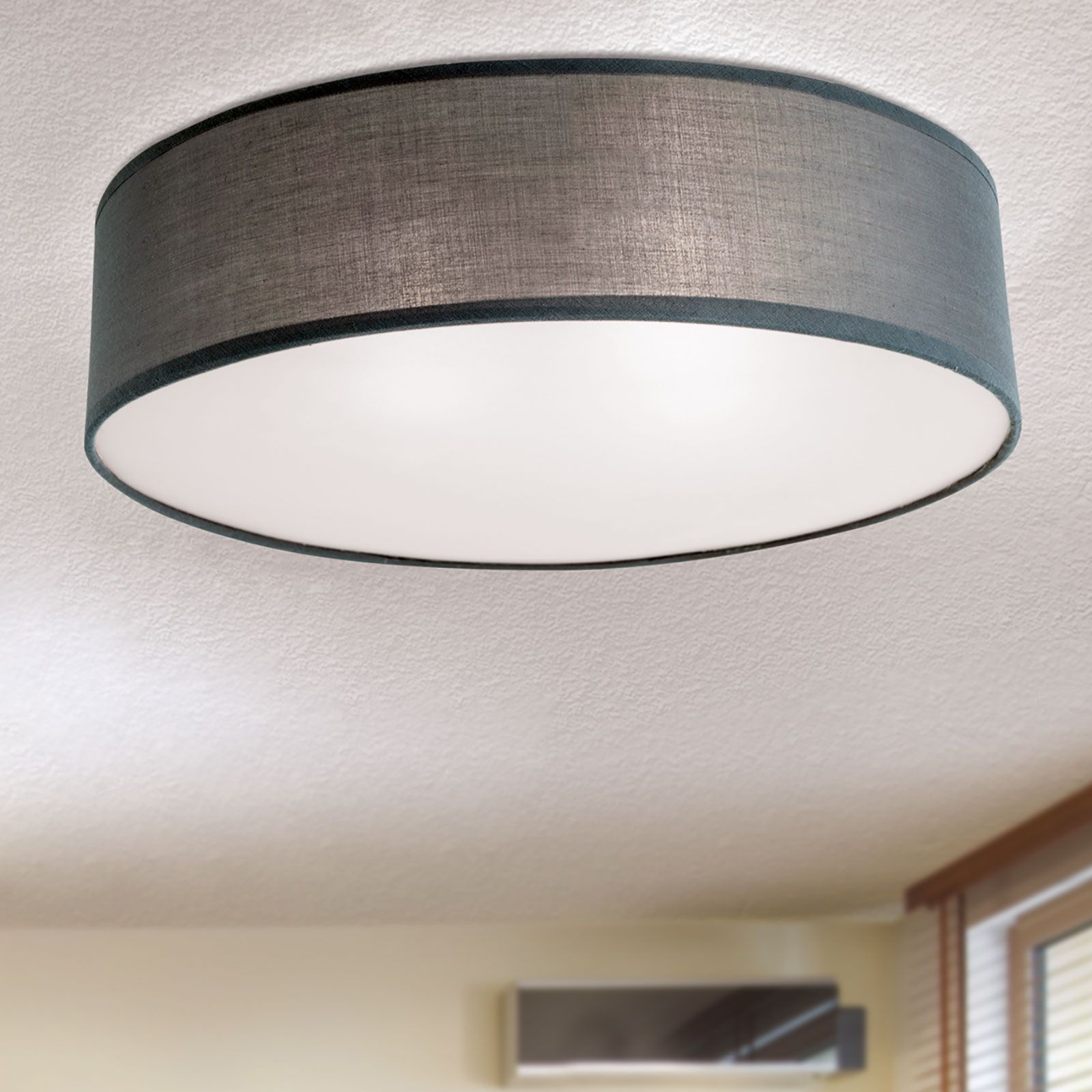 Bei der Deckenleuchte der SEDA-Serie läuft alles rund: Die kreisförmige Gestaltung mit rundumlaufendem Stoffschirm und der mattweißen Abdeckung sichern diesem dezenten Leuchtkörper einen Platz in Räumen unterschiedlichster Stile und Funktionen. Das warm durch den Textilschirm scheinende Licht erzeugt in Wohn- und Schlafzimmern eine wohlig-gemütliche Atmosphäre. Fein gearbeitete Details wie die Stoffsäume an den beiden Enden des Schirmes runden das Bild ab. Drei E14-Fassungen mit je bis zu 40 Watt können auch mit energiesparenden LED-Lampen bestückt werden.
