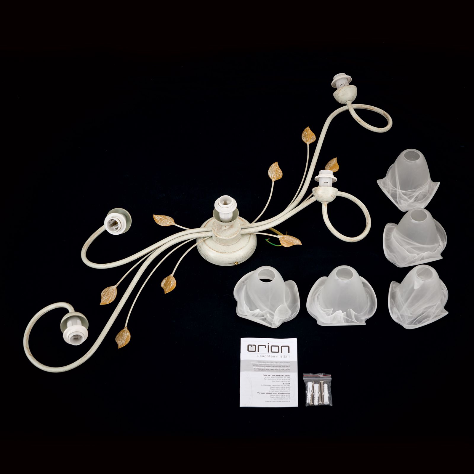Deckenleuchte SISI, fünfflammig, Elfenbein-gold