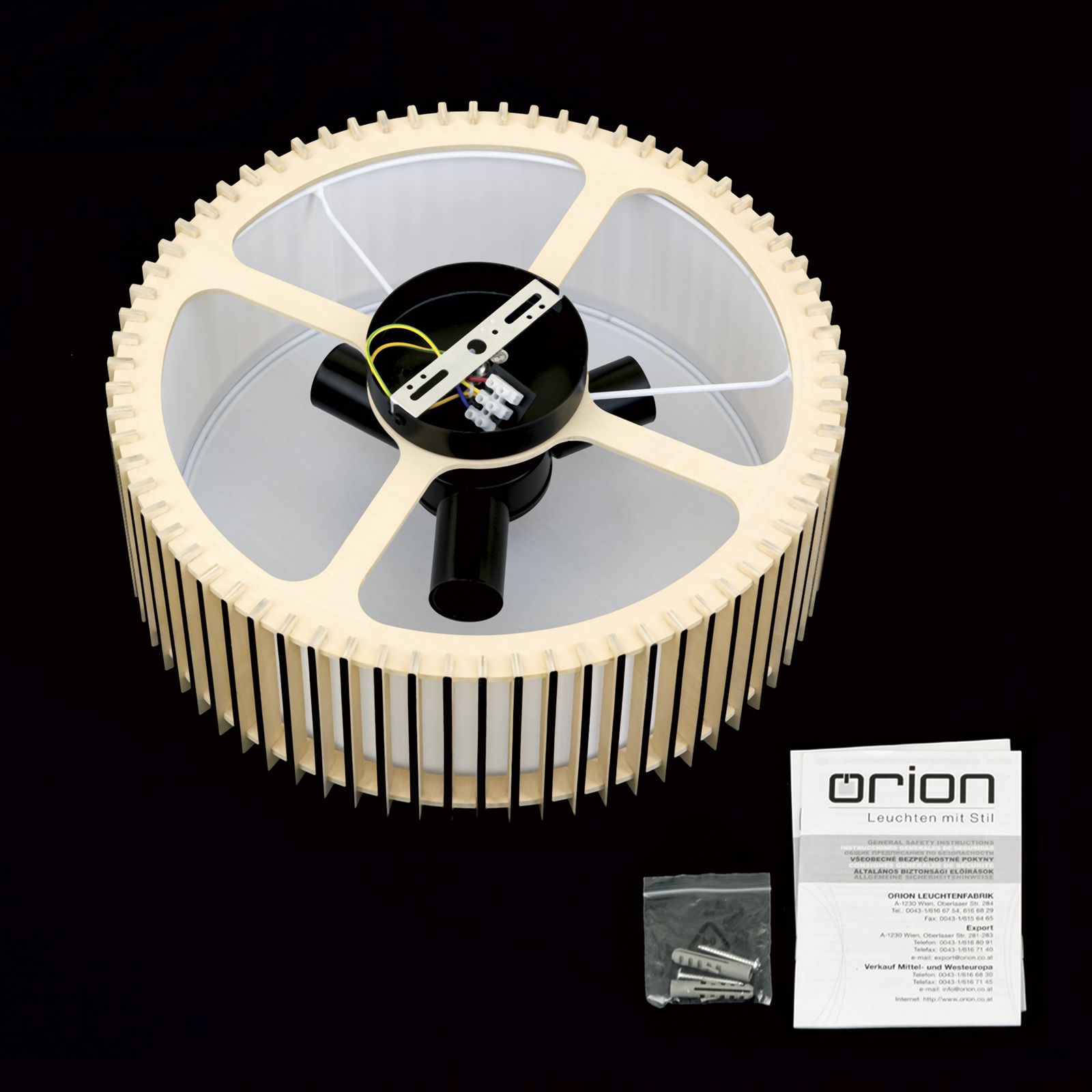 Der ausdrucksstarke Schirm besteht aus hochwertigem Echtholzdekor, das in fein gearbeiteten Holzfächern mit eleganten schwarzen Kanten arrangiert ist. Das harmonische Zusammenspiel von Naturholz und dunklen Akzenten verleiht der Leuchte ihren charakteristischen skandinavischen Charme – schlicht, modern und doch wohnlich.