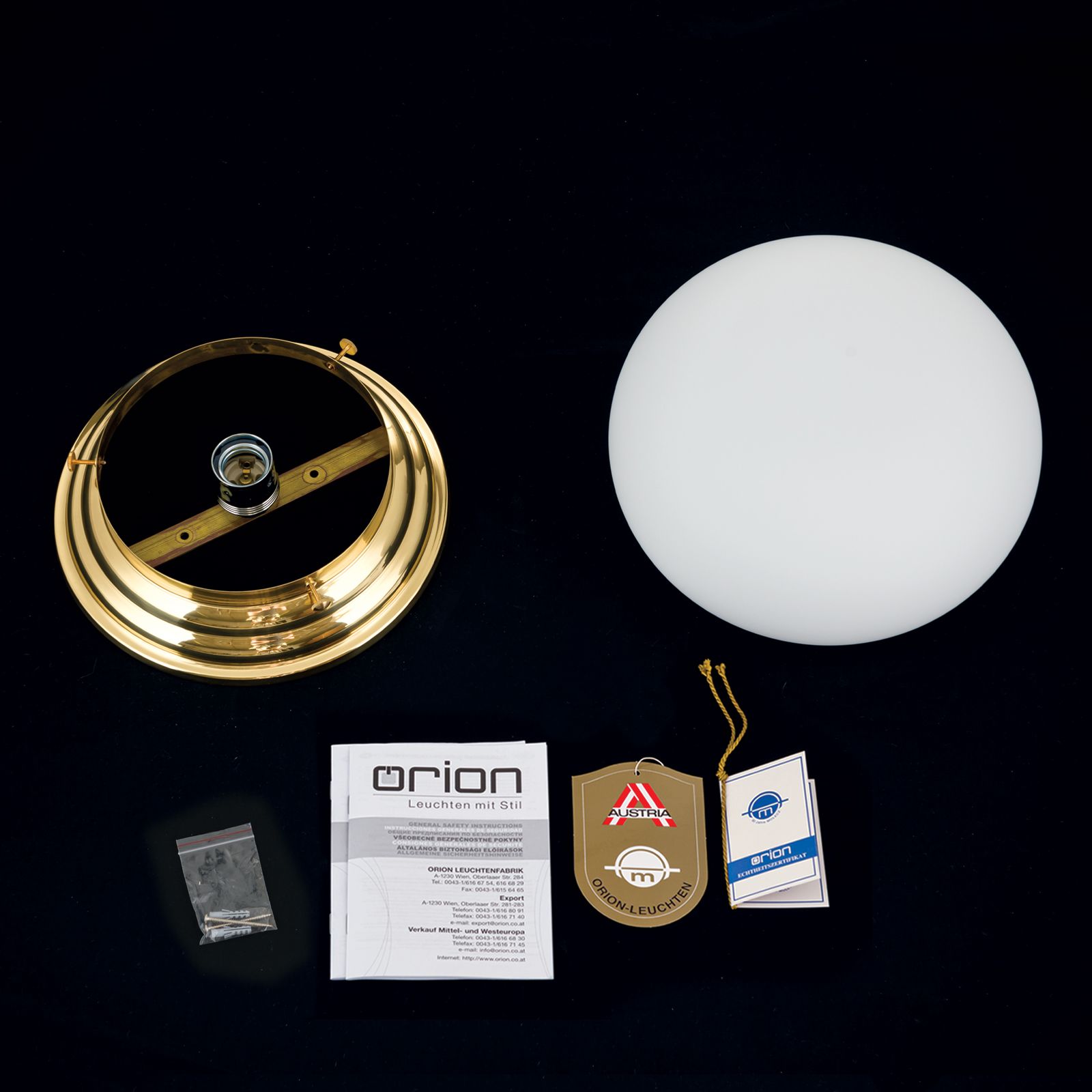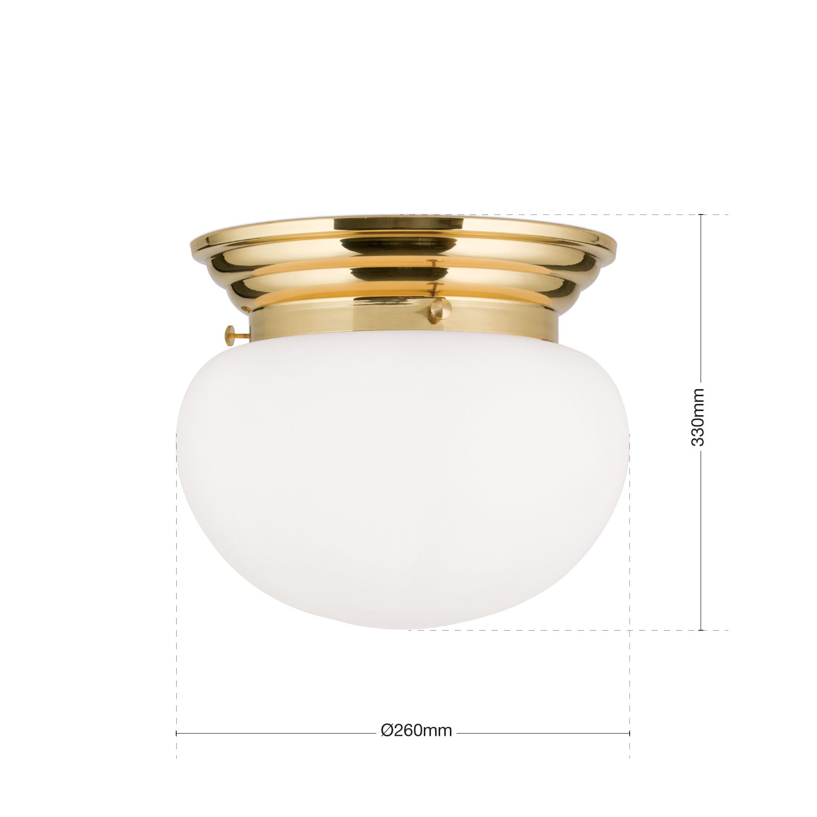 Deckenleuchte WIENER NOSTALGIE, Messing-glänzend, mit opal mattem Glas, 26cm