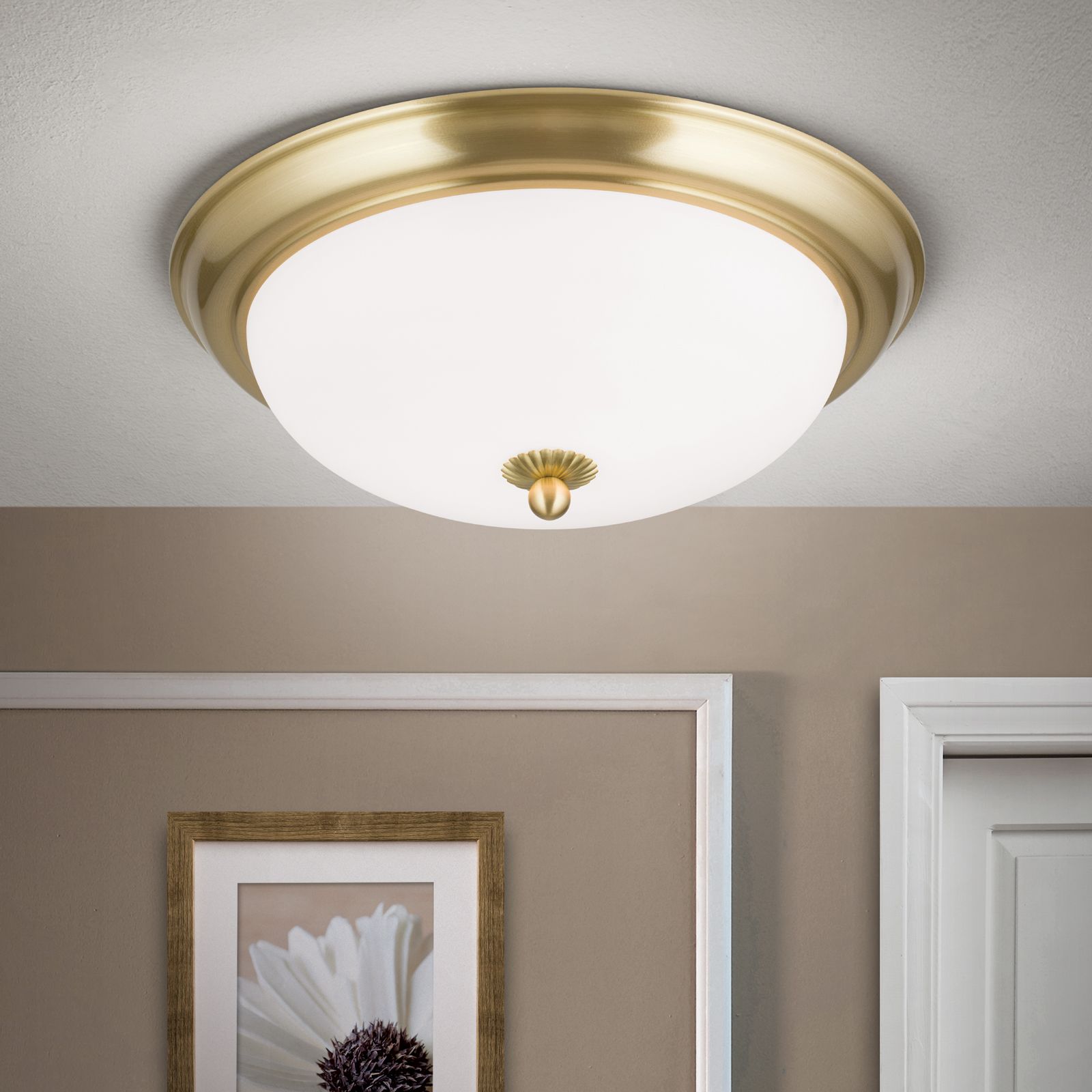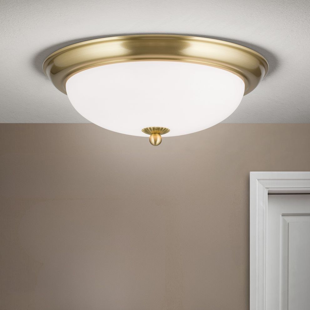 Deckenleuchte WIENER NOSTALGIE, Messing-matt, mit opal mattem Glas, mit Knopf, 35cm
