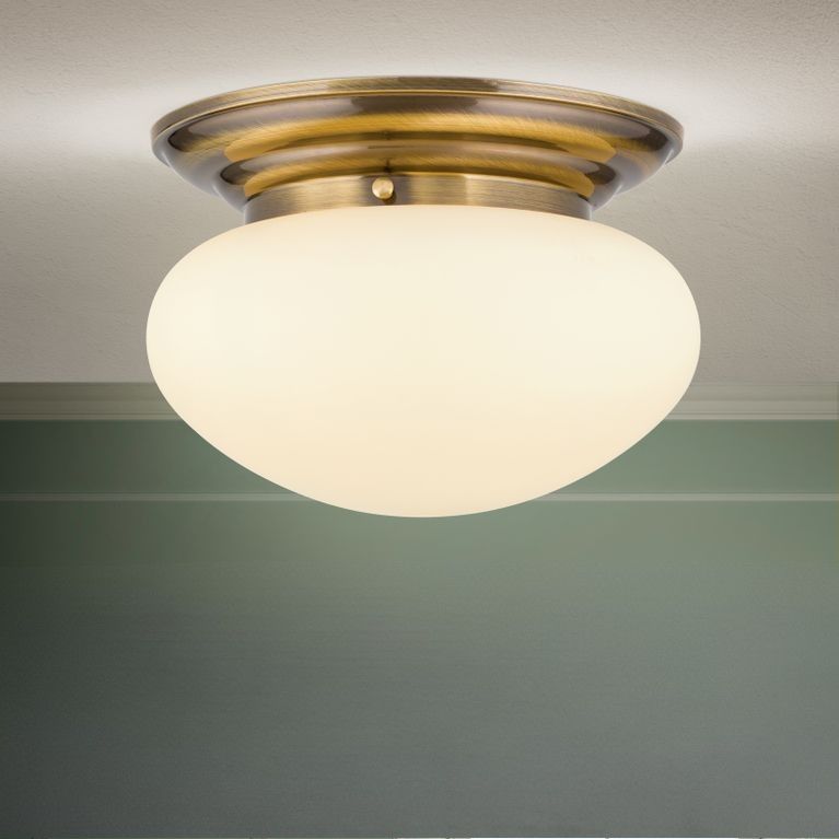 Die Deckenleuchte aus der WIENER NOSTALGIE-Klassikerserie ist Wegbegleiter von Generationen. Die zeitlose Gestaltung und die Hochwertigkeit der Materialien machen aus ihr ein willkommenes zentrales Einrichtungselement. Mit 33 Zentimetern Durchmesser ist eine ideale Größe gefunden worden für eine Schlafzimmerdeckenbeleuchtung, ein größeres Vorzimmer oder für die glücklichen Besitzer eines großzügigen Schrankraums. Das hochglanzpolierte Messing und der opalmatte Glasschirm spenden ein warmes, gleichmäßiges Licht. Die Deckenleuchte ist mit einer E27-Fassung für maximal 60 Watt versehen. Setzt man eine energieeffiziente LED-Lampe ein, schont man Umwelt und eigene Finanzen.