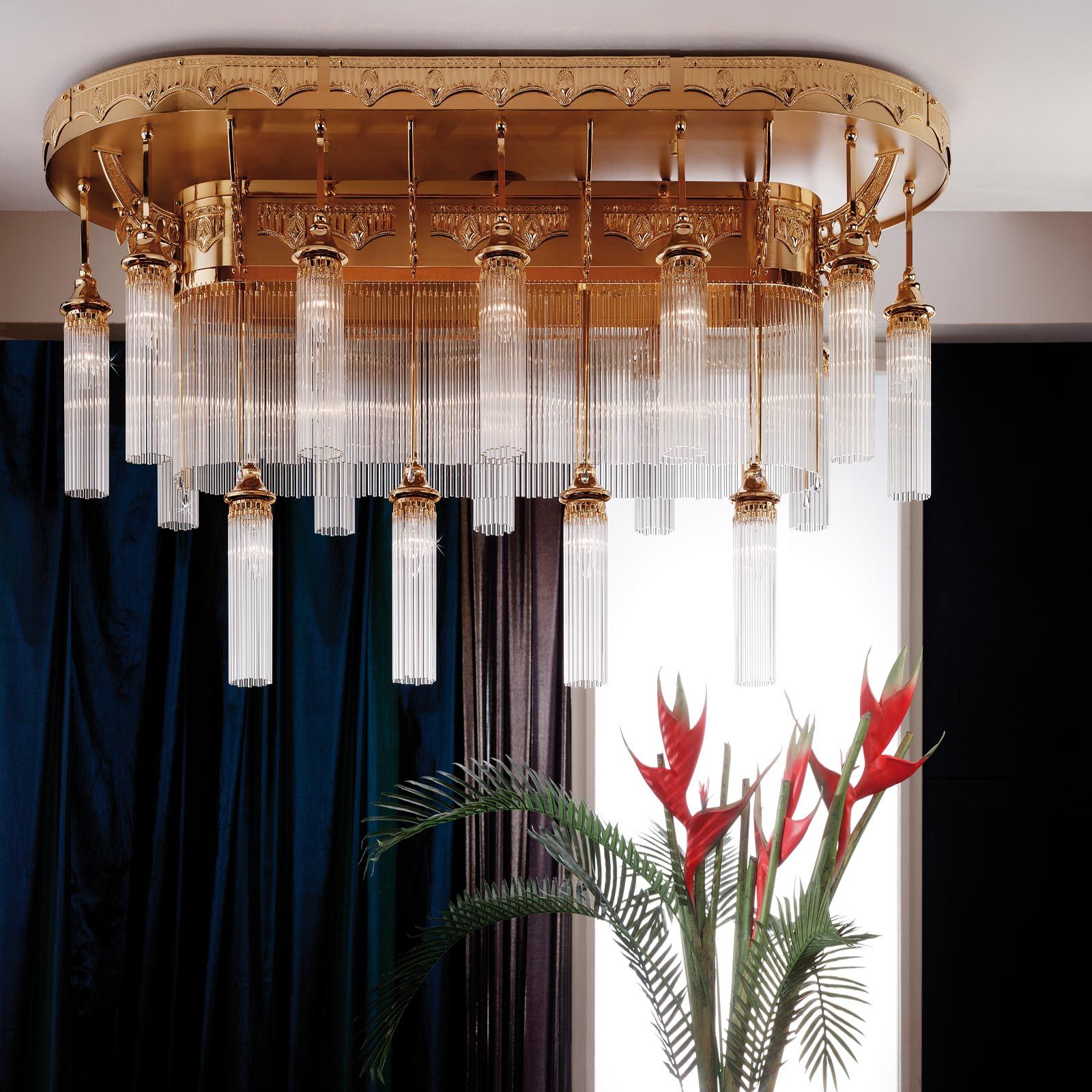 Deckenluster ADELE, 16-flammig, oval, Gold, mit Stäbchen