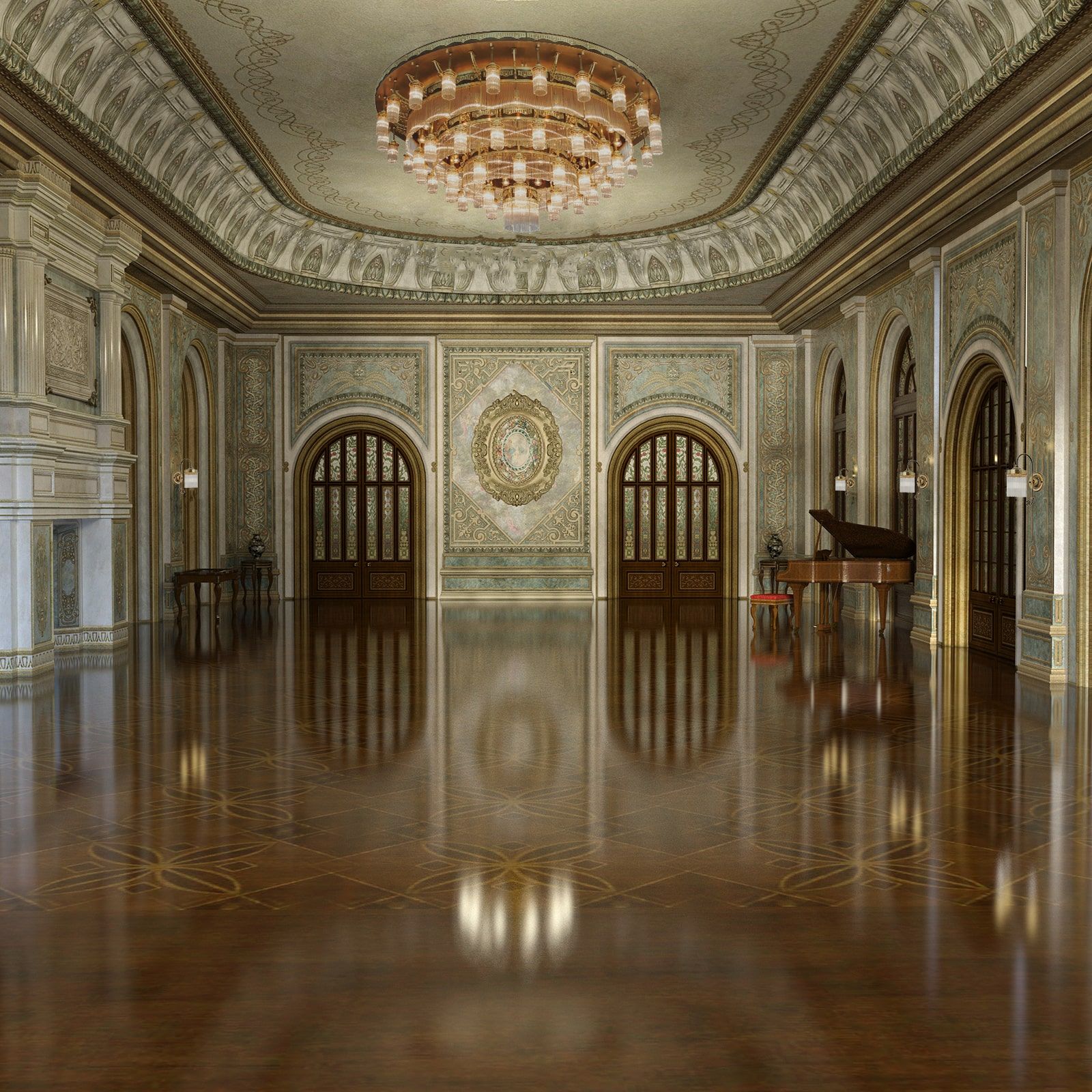 Jugendstilornamente und antikisierende Friese erzeugen ein luxuriöses, elegant-stilvolles Ambiente. Der Luster verfügt über 60 E14-Fassungen zu je maximal 40 Watt und 37 E27-Fassungen zu je maximal 60 Watt.