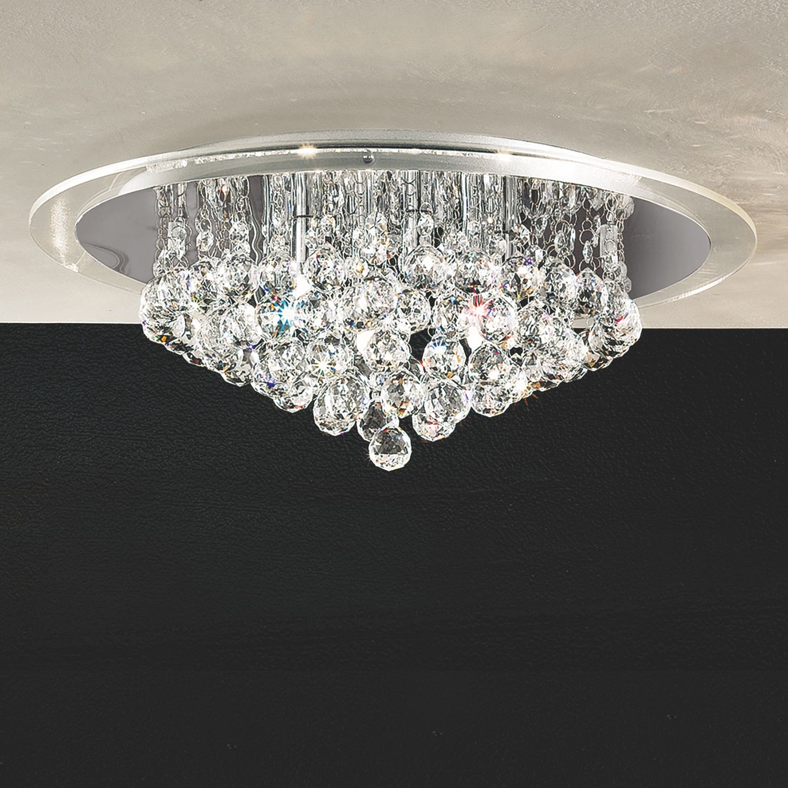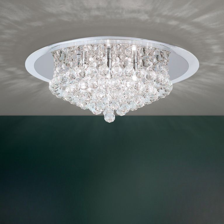 Der Deckenluster GLORIA bringt extravaganten Glamour in ihre vier Wände. Seine geschliffenen, kreisförmig angeordneten Kristalle sorgen für eine ganz besondere Optik. In Kombination mit dem Leuchtensockel, in dem sich das Licht und die hochwertigen K9-Kristalle spiegeln, entstehen somit faszinierende Reflexionen. Bestückt wird er mit 6 Leuchtmitteln bis zu 40 Watt in seinen G9 Fassungen.