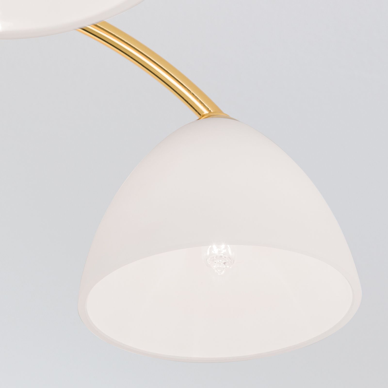 Die 7-flammige Deckenleuchte Opaldesign besticht durch den Einsatz hochwertiger Materialien wie Messing und Glas und ihr schlichtes und funktionales Design.