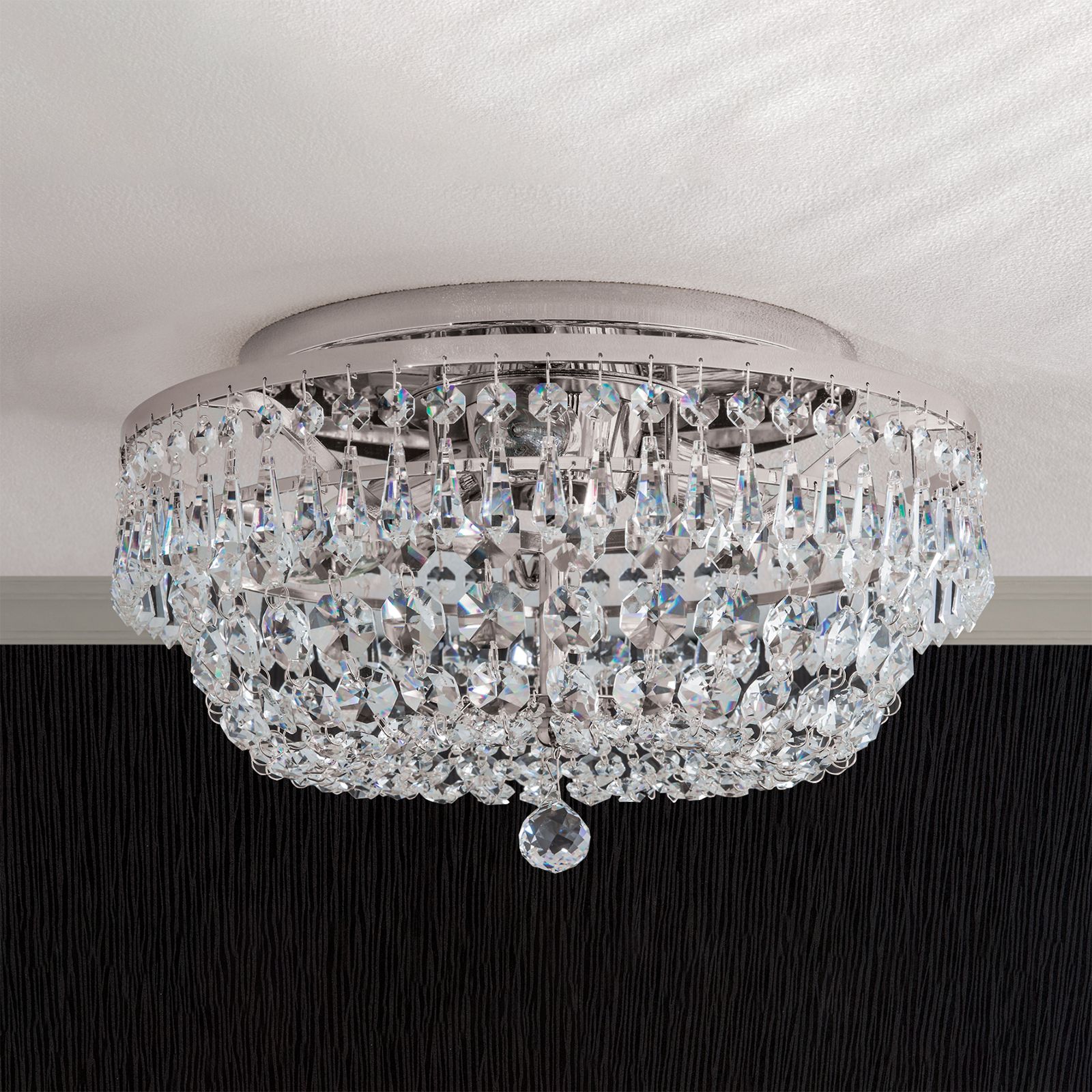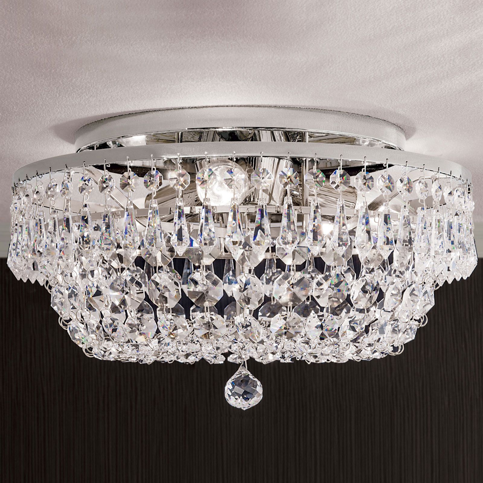 Mit dem Deckenlüster SHERATON lässt sich ein klassischer Einrichtungsstil perfekt verwirklichen. Das ansprechende Design besteht aus einem Leuchtengestell aus Messing und einer Oberflächenveredelung in 24-Karat Gold. Die Abdeckung besteht aus zahlreichen Kristallen der Premiummarke SCHÖLER CRYSTAL® Der Deckenluster mit einem Durchmesser von 35 Zentimetern ist mit 3 E14-Fassungen ausgestattet und kann mit maximal 40 Watt je Fassung betrieben werden. Wird der Deckenlüster mit sparsamen LED-Lampen bestückt, ist sie die für eine energieeffiziente, permanente Beleuchtung.