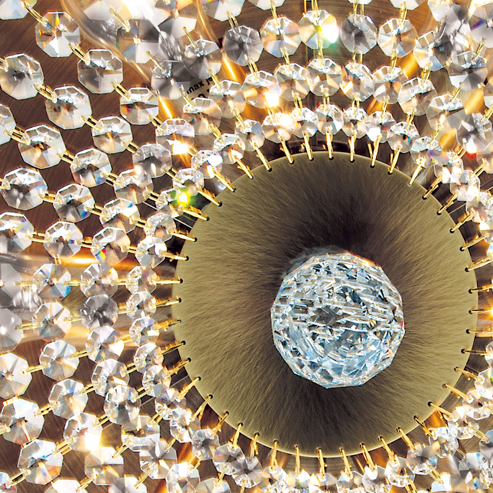 Deckenluster SHERATON ist in folgenden Oberflächen erhältlich: 24-Karat Gold, Chrom und Patina.