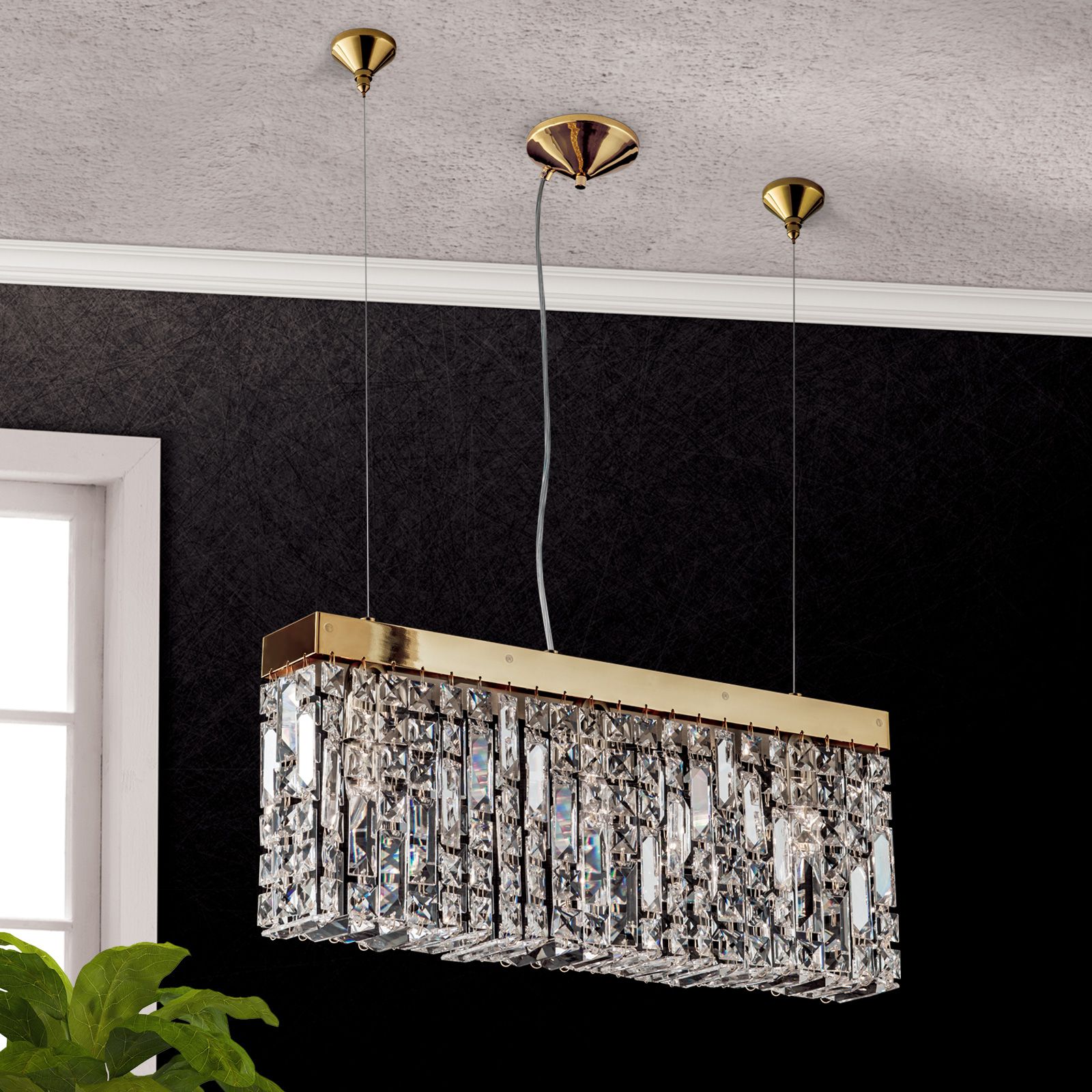Die Hängleleuchte RING versprüht aufgrund ihres Aussehen pure Eleganz und Exklusivität und lässt sich durch ihre geradlinige Form vielseitig einsetzen. Sie wird in jedem Raum zum glänzenden Blickfang und passt sowohl in modern als auch klassisch eingerichtete Wohnräume. Als Einzelleuchte oder im Verbund mit weiteren Leuchten der Serie sorgt für ein luxuriöses Ambiente. An einem glänzenden Messinggestell hängen zahlreiche Asfour-Kristalle, die sich wie ein Vorhang um die Leuchtmittel legen. Sobald das Licht durch die klaren Kristalle dringt, entstehen somit einzigartig und eindrucksvolle Lichtreflexionen im Raum. Zudem ist die Hängeleuchte dimmbar, wodurch sich die Helligkeit des Lichts individuell an die Gegebenheiten angepasst werden kann. Mit maximal 40 Watt können die 3 Leuchtmittel in den E14-Fassungen bestückt werden. Diese Leuchte kann in den Oberflächen Chrom und Gold erworben werden.