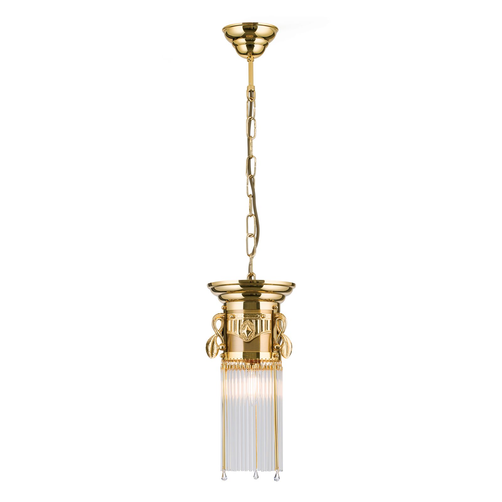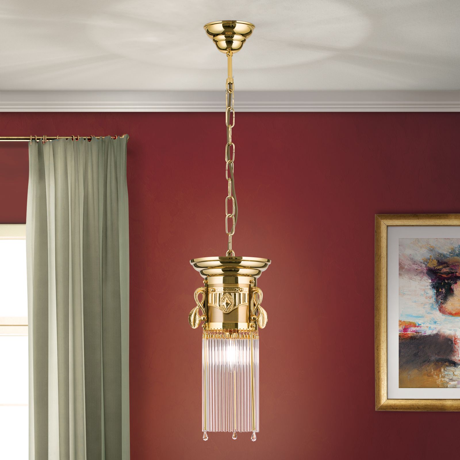 Das Leben als Gesamtkunstwerk - so kann man die Grundhaltung der Künstler der Wiener Secession beschreiben. Das umfasst neben den bildenden Künsten auch das Kunsthandwerk. Der Wert einer Leuchte liegt natürlich in erster Linie im Nutzen als Lichtspender. Dem trägt die Hängeleuchte aus der ADELE-Serie Rechnung, in dem Vollglasstäbchen sich gleichsam mit Licht füllen und es durch die Leichtigkeit und Klarheit ihrer Linien in den Raum fließen lassen. Die Bedeutung, die der Schönheit beigemessen wird, verdeutlicht sich in Reliefzierbändern, Rankwerk und dem einer griechischen Säule nachempfundenen Sockel. Die Leuchte bietet eine warme, punktuelle Beleuchtung in einem Vorraum, über einer Anrichte, in einem stilvoll eingerichteten Wohnzimmer. Eine E14-Fassung für bis zu 40 Watt ist in der Leuchte verbaut.