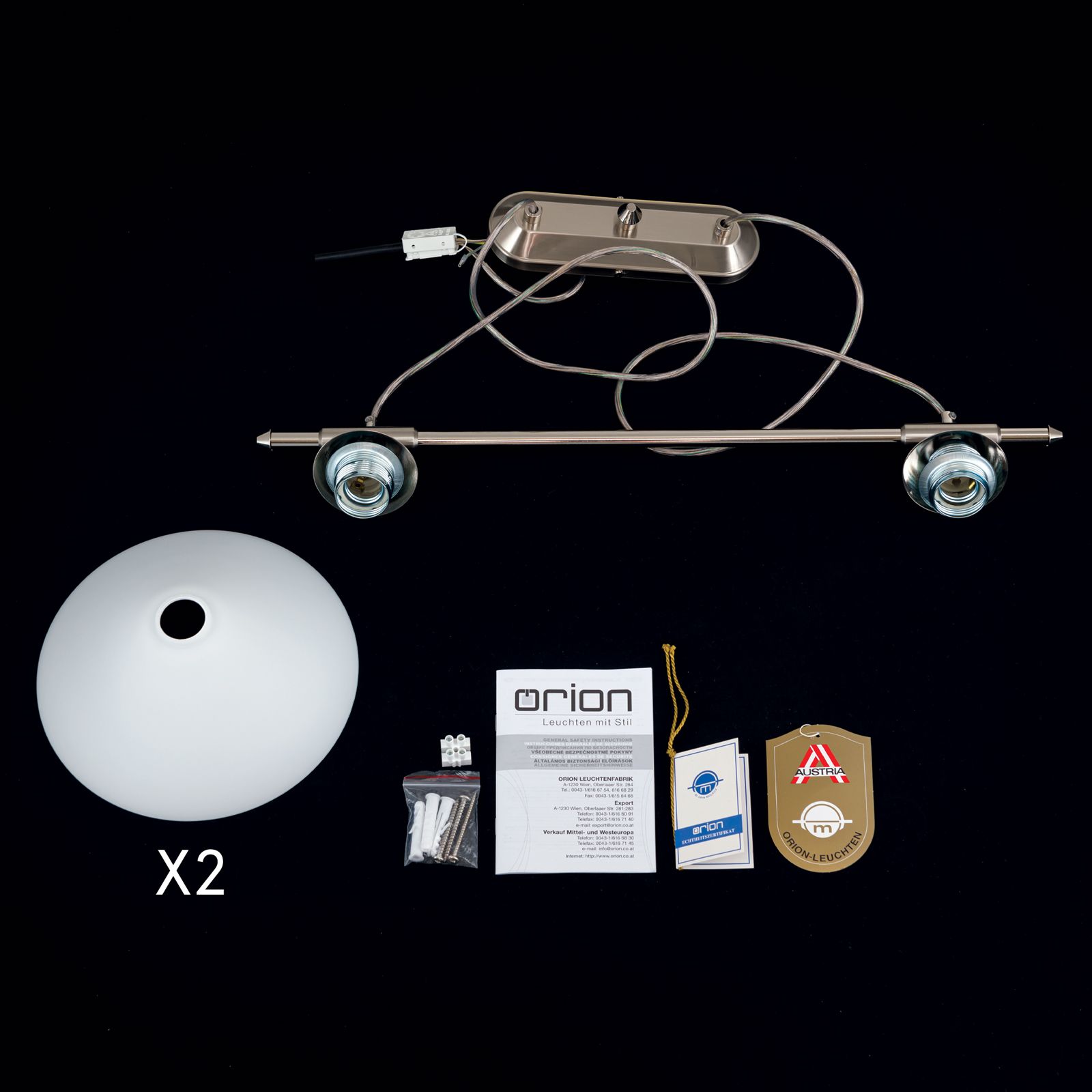 Ihr neutral zurückhaltender Charakter und die hervorragende Verarbeitung sind der Grund, weshalb sie sowohl im privaten Wohnbereich als auch in der Gastronomie breiten Anklang findet. Hergestellt wird die zweiflammige Hängeleuchte so wie die gesamte Serie in der Wiener ORION Leuchtenmanufaktur.