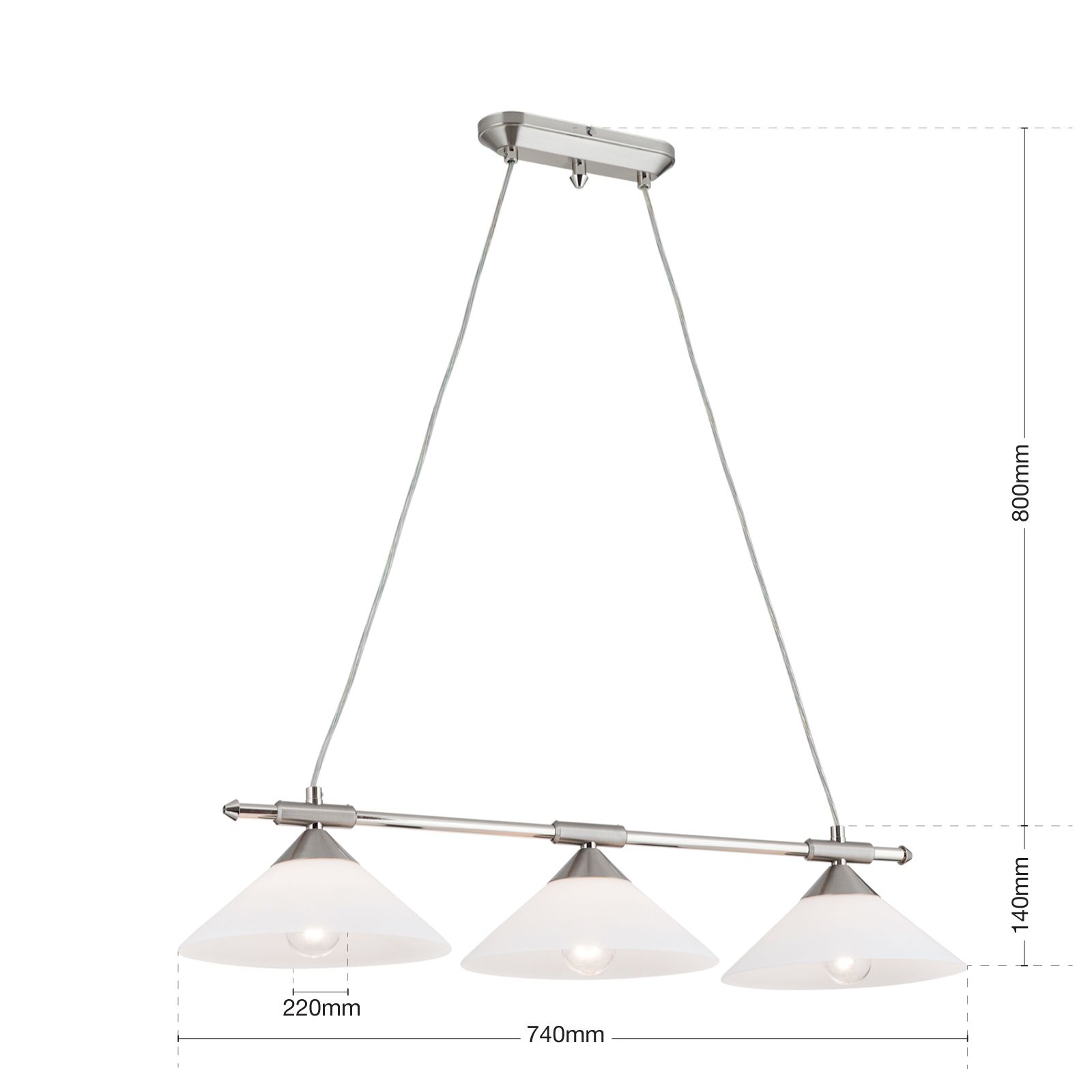 Die dreiflammige Hängeleuchte ARTDESIGN ist die ideale Esszimmerlampe. Sie leuchtet direkt einen darunter aufgestellten Esstisch aus und gibt durch ihren satinierten Schirm sanft gestreutes, weiches Licht in den Raum ab. So ist für eine behagliche Atmosphäre und gute Ausleuchtung gesorgt.