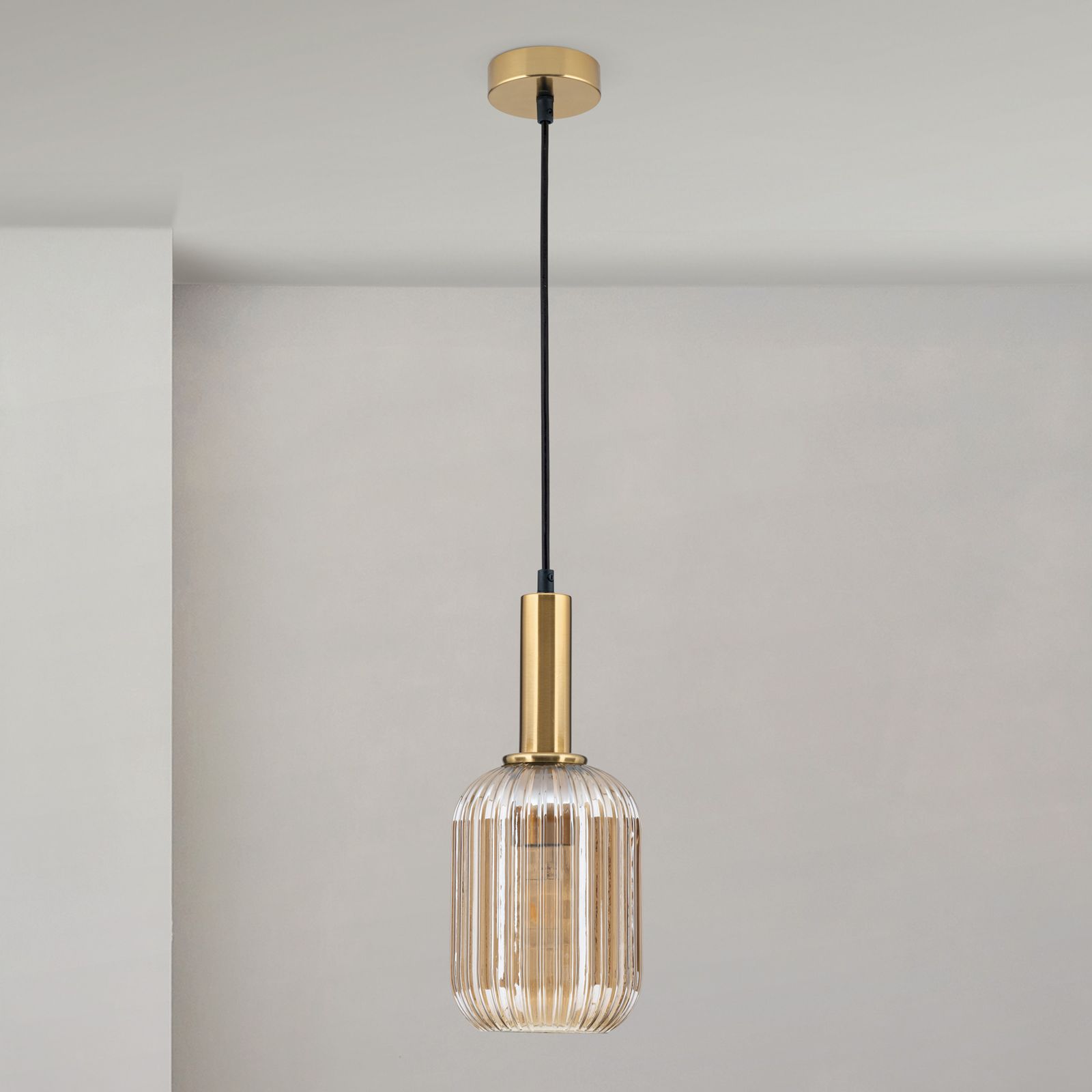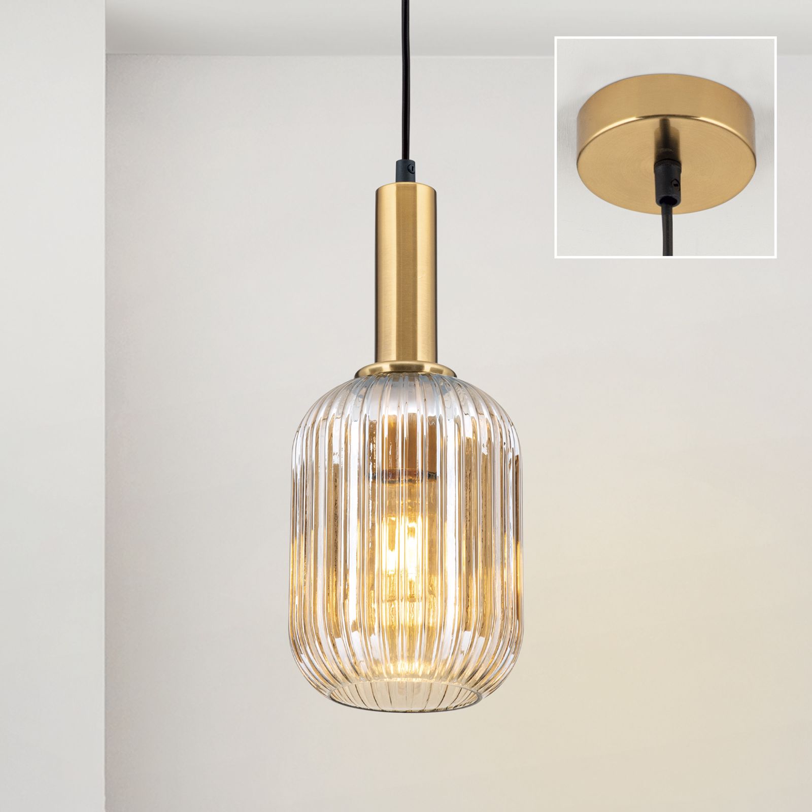 Die Hängeleuchte CARNEVAL besticht durch ihren amberfarbenen Glasschirm mit einem raffinierten Rillendekor, das für ein warmes und einladendes Licht sorgt. Der Schirm verleiht jedem Raum eine besondere Note und schafft eine gemütliche Atmosphäre. Die Rosette und der Körper der Leuchte sind in einer ansprechenden Patina-Farbe gehalten, die perfekt mit dem amberfarbenen Glas harmoniert. Diese Kombination aus Farben und Materialien verleiht der Leuchte einen Hauch von Vintage und Eleganz.Das schwarze Textilkabel setzt einen stilvollen Akzent und unterstreicht das hochwertige Erscheinungsbild der Leuchte. Zudem ist es äußerst robust und langlebig.