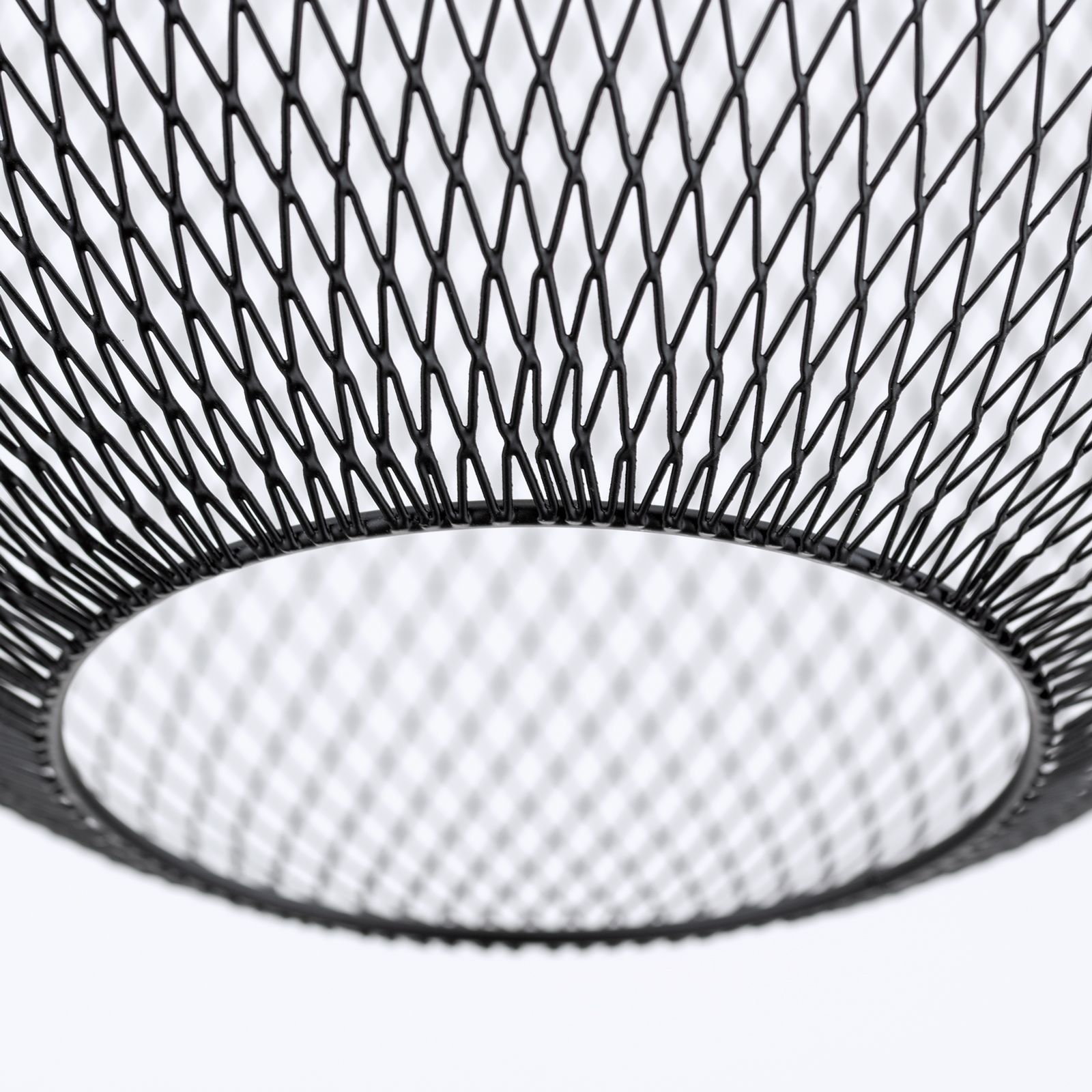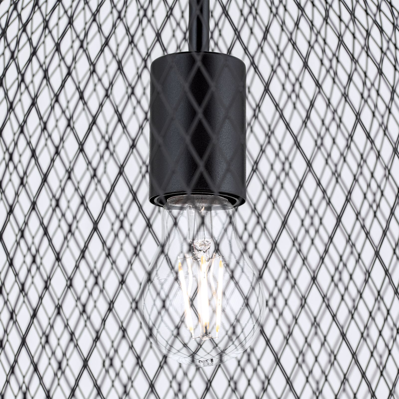 Die Netzoptik des Schirms gibt den Blick auf das Leuchtmittel frei, durch das die Leuchte einen individuellen Look erhält. Ob birnenförmiges oder kolbenförmiges Leuchtmittel, ob matt oder klar, hier können verschiedene Lampen zum Einsatz kommen.