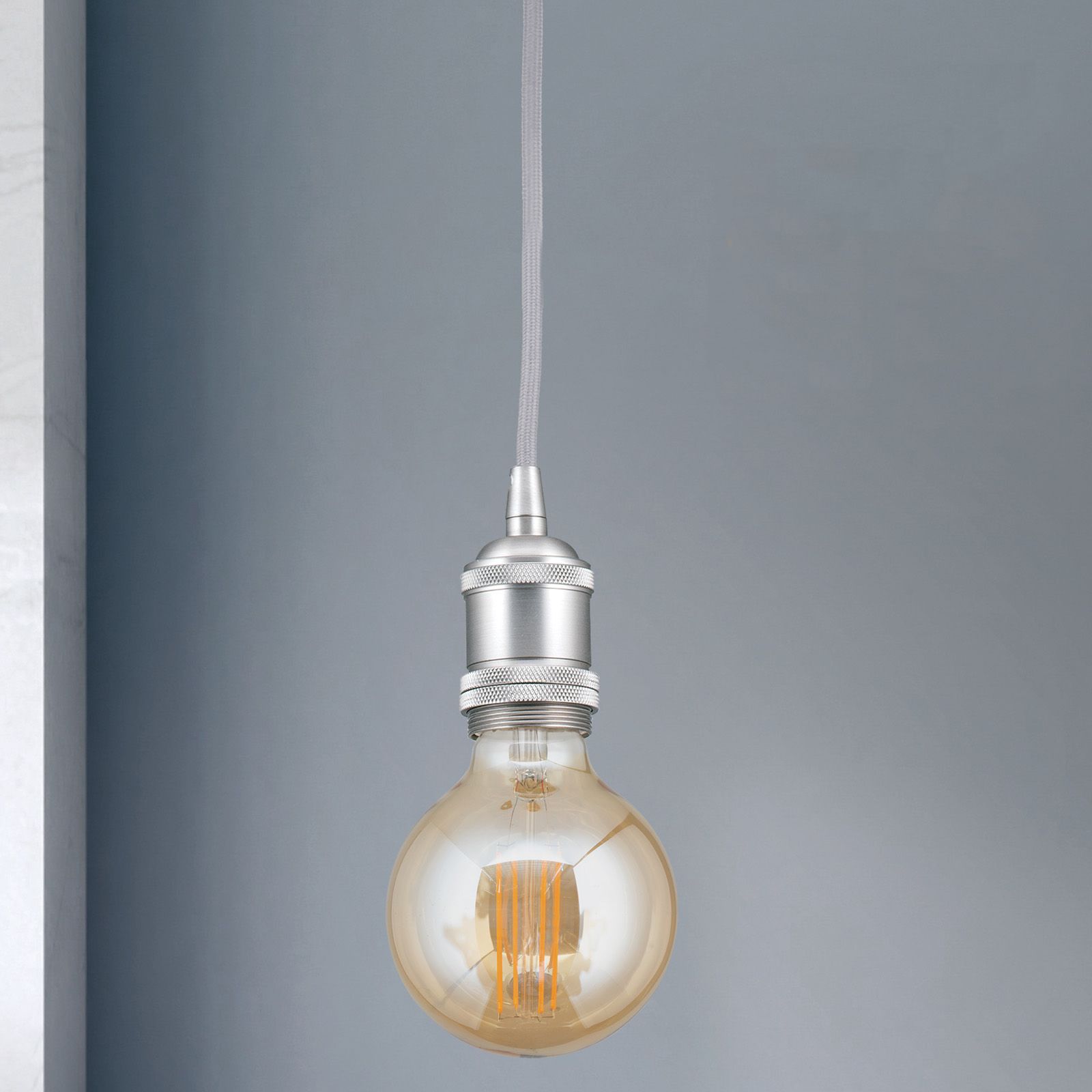 Mit sparsamen LED-Lampen kann die Hängeleuchte auch zur energieeffizienten Grundbeleuchtung eingesetzt werden. Runde oder kolbenförmige LED-Lampen mit Glühfadenoptik und getöntem Glas sind die perfekte Ergänzung. Durch Ihre individuelle Lampenwahl verleihen Sie der Leuchte Ihren persönlichen Touch.