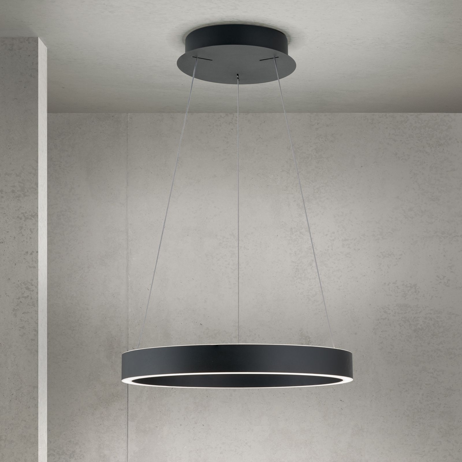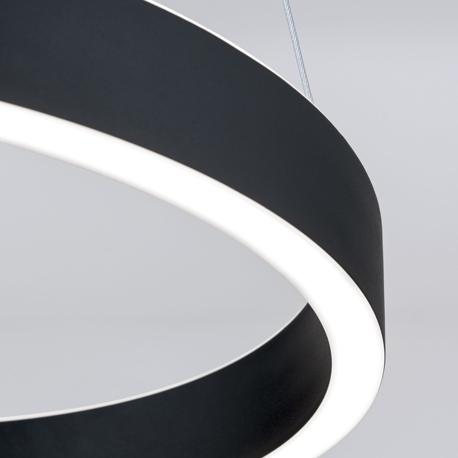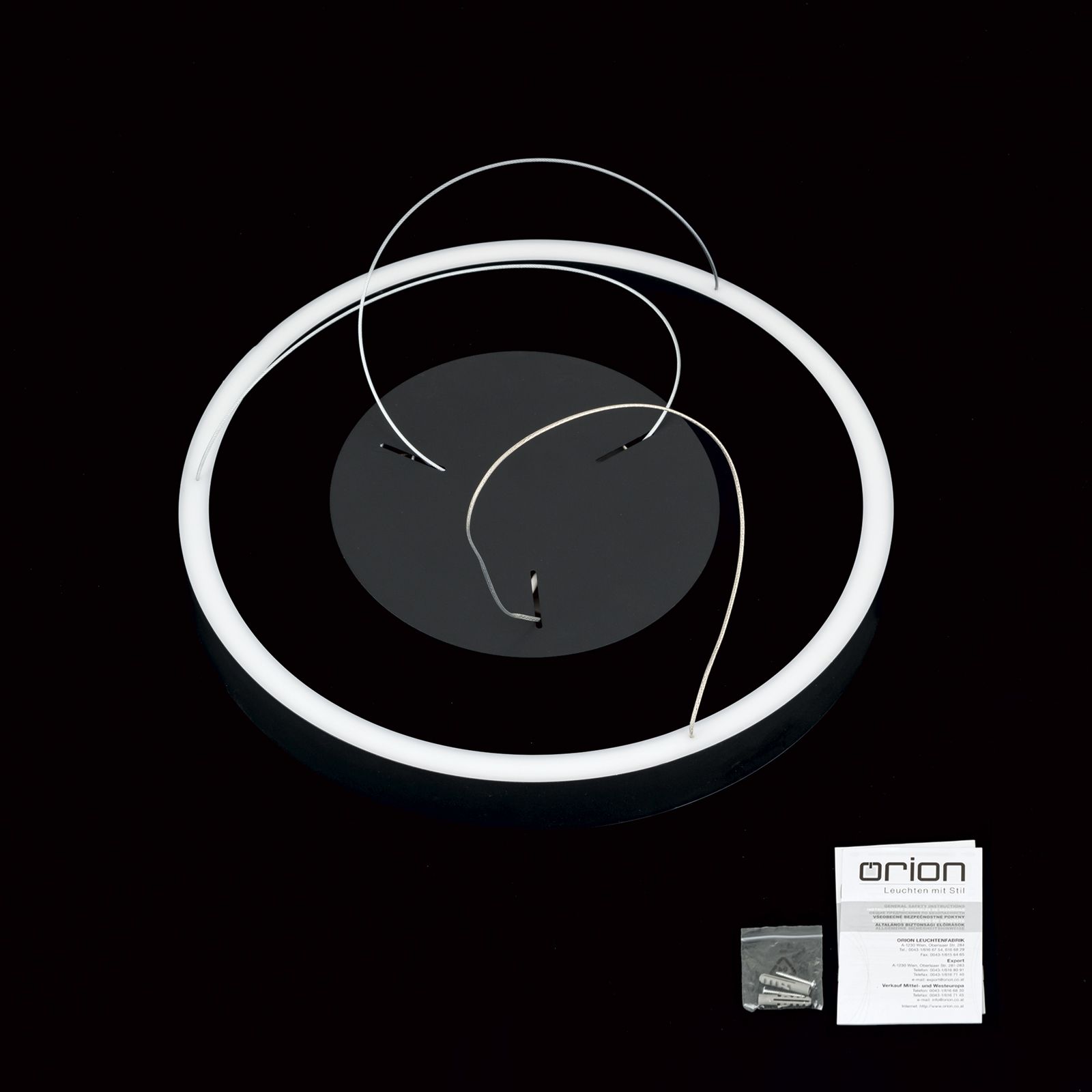 Das moderne Design wird durch eine dezente Rosette und drei filigrane Stahlseile ergänzt, die den Aluminiumring mit den verbauten LEDs halten. Dieses durchdachte Konzept sorgt nicht nur für eine optimale Ausleuchtung, sondern verleiht der Leuchte auch eine schwebende Leichtigkeit.
