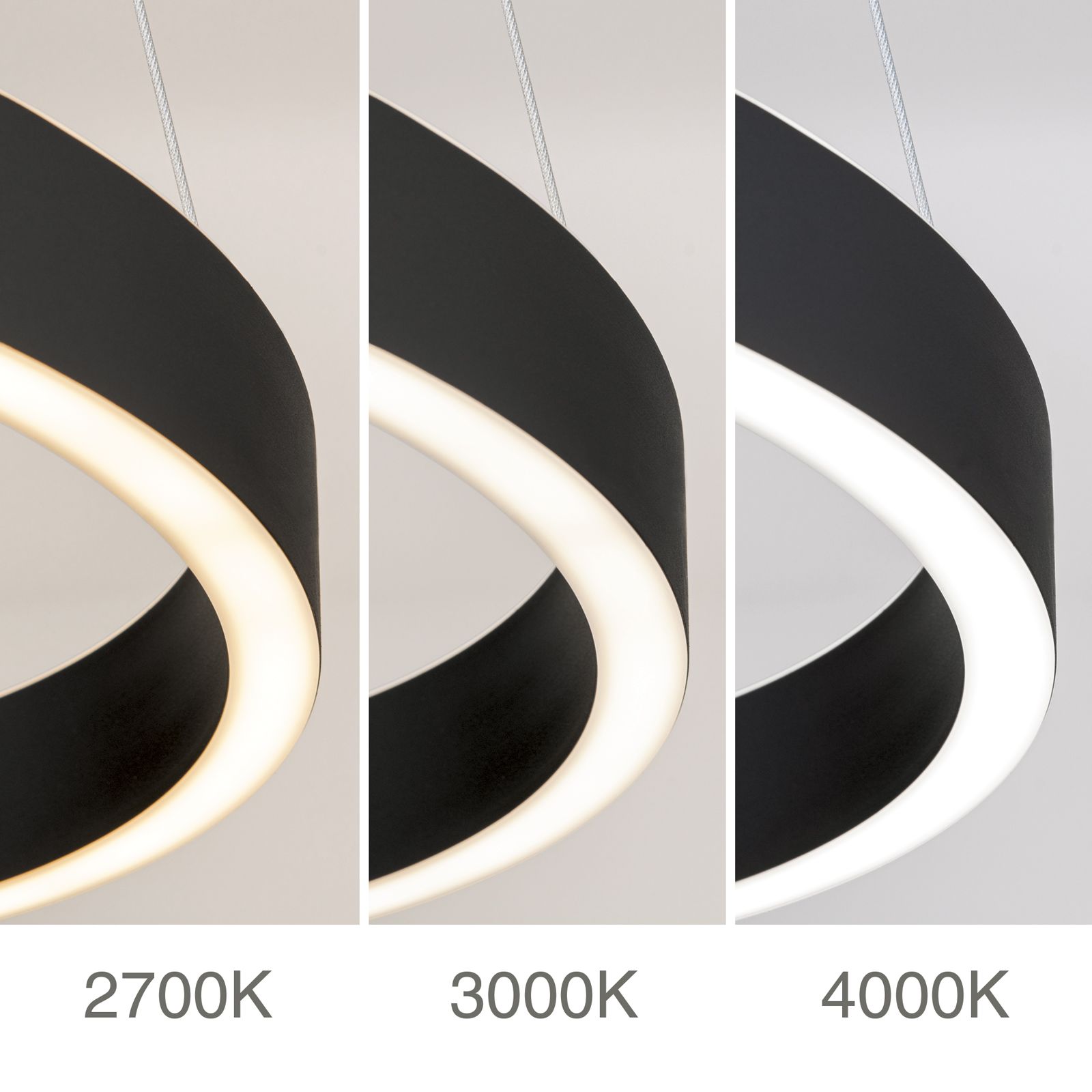 Ausgestattet mit einer leistungsstarken 40-Watt-LED, liefert die KOLK Hängeleuchte beeindruckende 2500 Lumen Helligkeit. Dank der CCT-Funktion können Sie die Farbtemperatur, bei Montage, nach Ihren Wünschen anpassen – wählen Sie zwischen warmweißem Licht mit 2700 Kelvin, neutralweißem Licht mit 3000 Kelvin und tageslichtweißem Licht mit 4000 Kelvin. Dank dieser Flexibilität und den Up- und Downlights können Sie die Beleuchtung perfekt an die jeweilige Stimmung oder Tätigkeit anpassen.