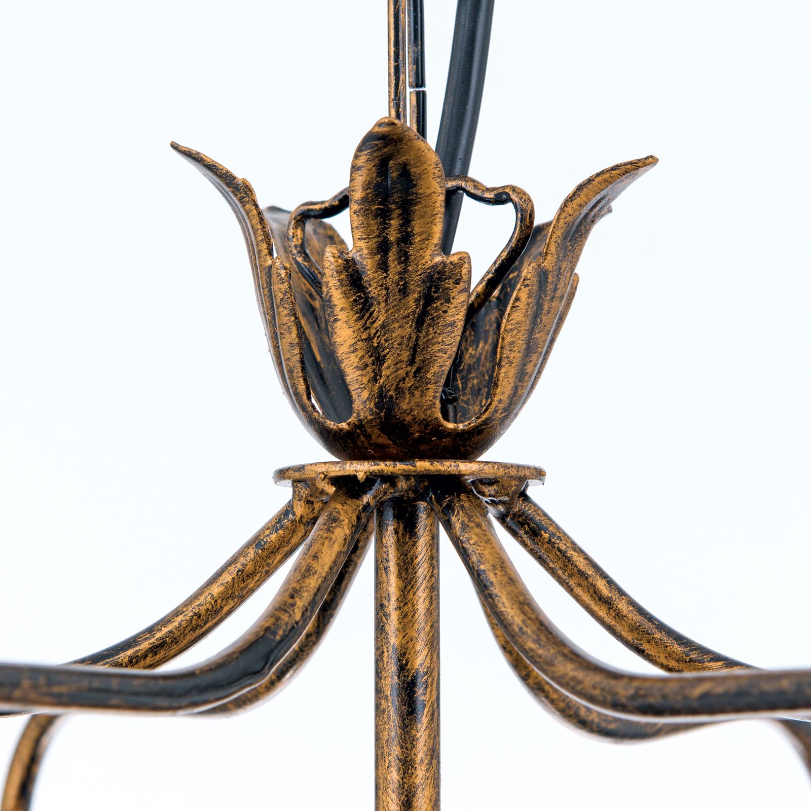 Die Käfig-Hängeleuchte MANTO zollt dem Vintage Stil Tribut und erfüllt den Wunsch nach einem behaglichen und romantischen Touch in Ihrem Zuhause. Die antik-goldene Oberfläche verleiht ihr einen nostalgischen Ausdruck und eignet sich hervorragend für den rustikalen Wohnstil. Das zarte Metallgestell umfasst fünf klare Glaseinsätze, die den Blick auf das Leuchtmittel freigeben und endet am oberen Teil der Leuchte mit einem dekorativen Rankenelement.