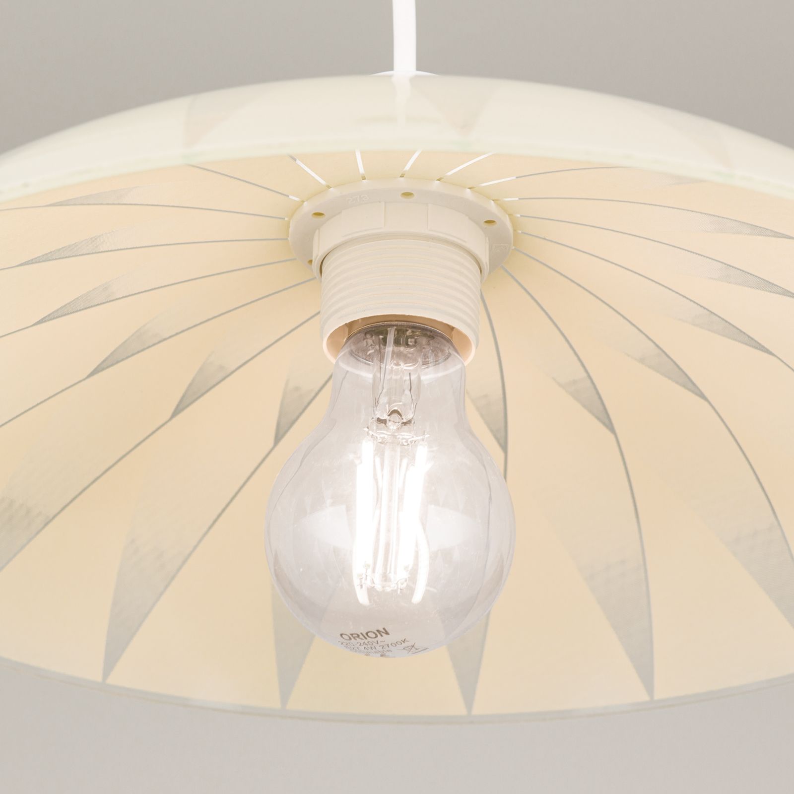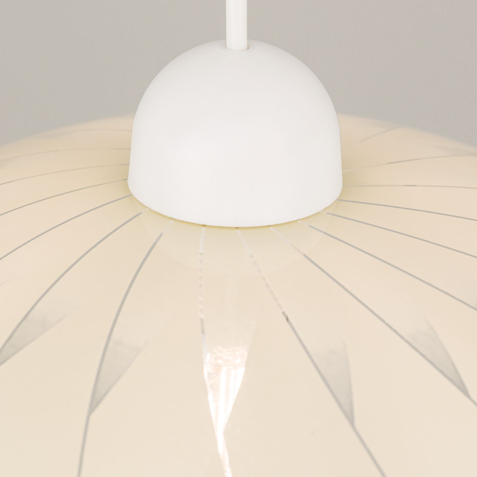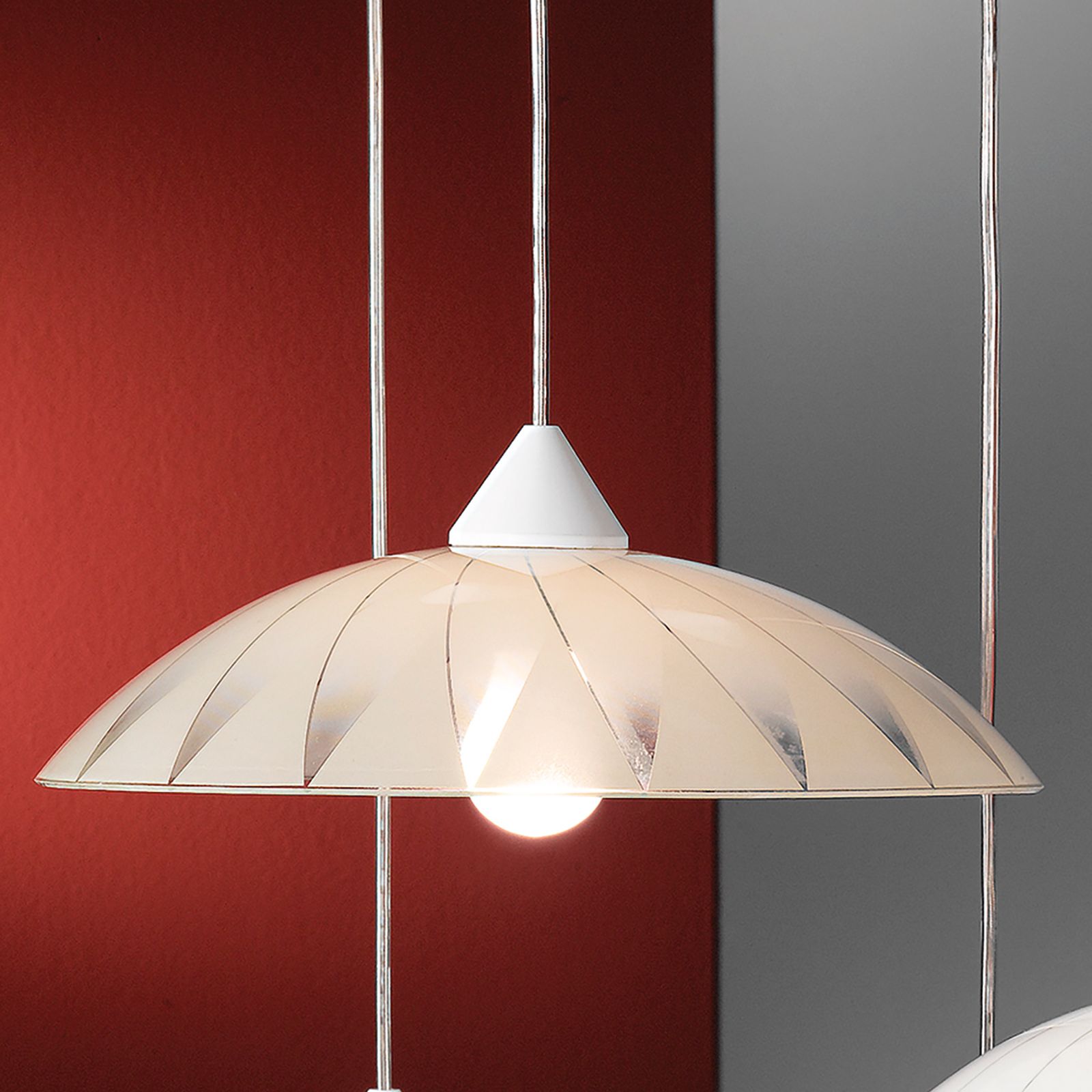 Die Hängeleuchte MARTINA punktet mit ihrem modernen Design und eignet sich als Esstischbeleuchtung ebenso wie für Schlafzimmer oder den Eingangsbereich. Durch die große Öffnung strahlt das Licht großflächig ab und leuchtet den Raum optimal aus. Mit ihrem Opalglasschirm, der wahlweise in Weiß, Beige, Violett erhältlich ist, und den klaren Aussparungen sorgt sie für ein außergewöhnliches Lichterlebnis und macht die Leuchte zu einem Highlight. Die Lichtintensität lässt sich wunderbar in Kombination mit einem Dimmer regeln. Die Hängeleuchte ist mit einer E27-Fassung ausgestattet und kann mit maximal 60 Watt bestückt werden. Wird sie mit sparsamen LED-Lampen betrieben, ist sie die ideale Wahl für eine energieeffiziente Esszimmerbeleuchtung.