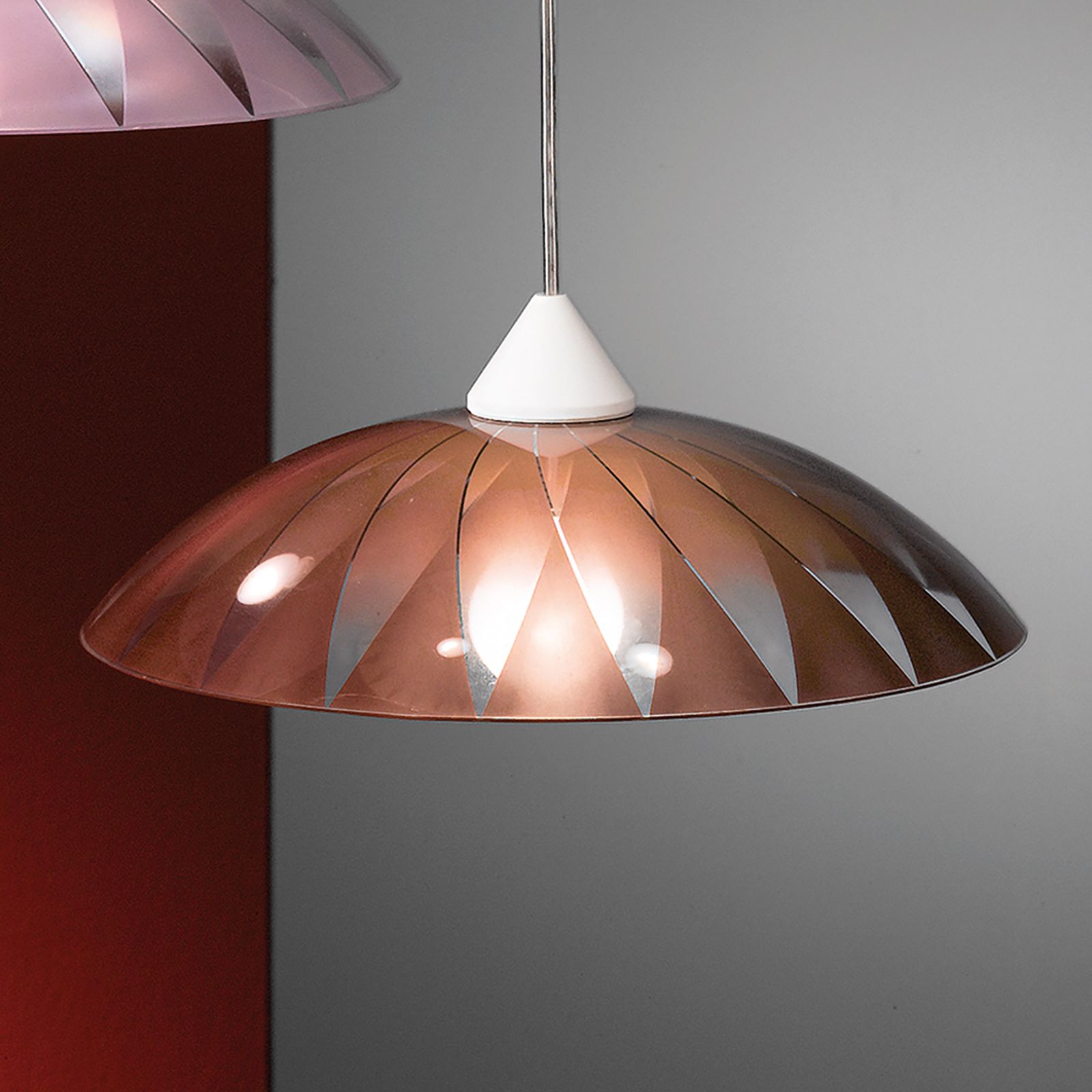 Die Hängeleuchte MARTINA lässt sich aufgrund des ausgewogenen Erscheinungsbilds leicht mit schlicht und elegant gehaltenen Interieurs kombinieren. Eine Oberfläche in Weiß veredelt die Leuchtenmontur aus Kunststoff und wird mit einem Schirm aus braunem Glas kombiniert. Die Hängeleuchte mit einem Durchmesser von 33 Zentimetern ist mit einer E27-Fassung ausgestattet und kann mit maximal 60 Watt je Fassung ausgestattet werden.