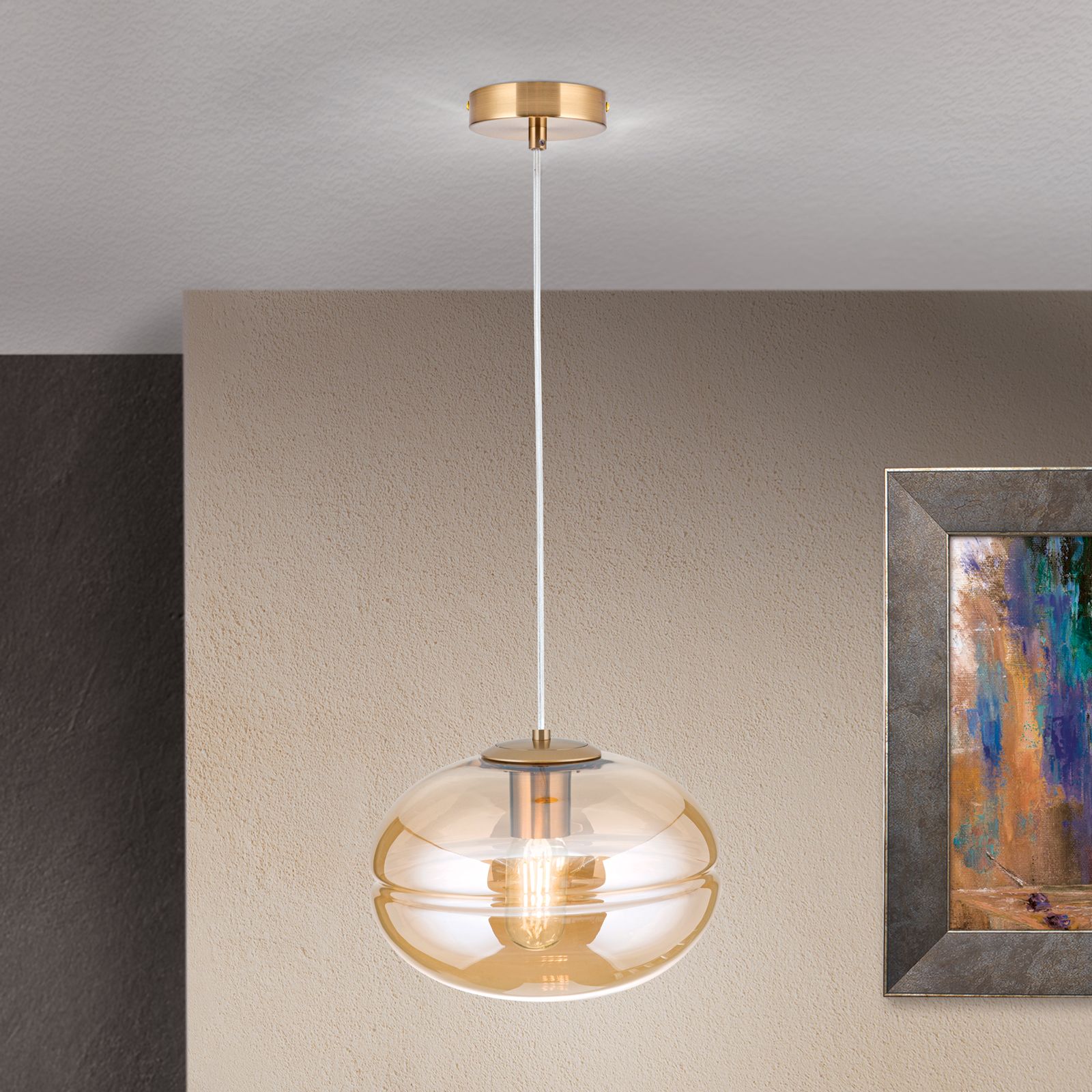 Hängeleuchte RICHARD, 1-flammig, Messing-matt, Amber