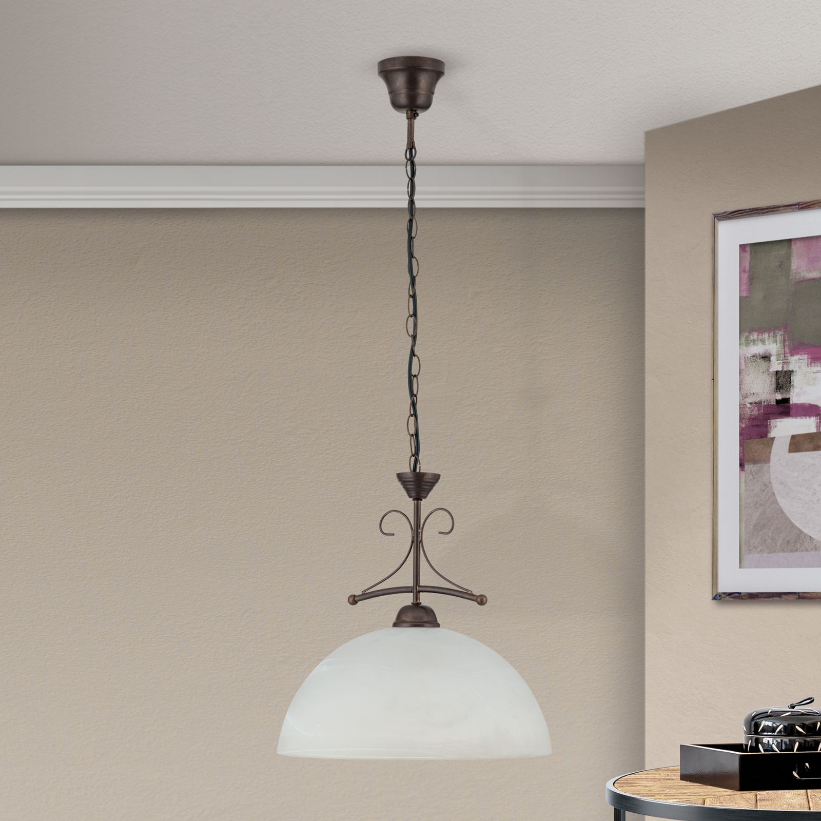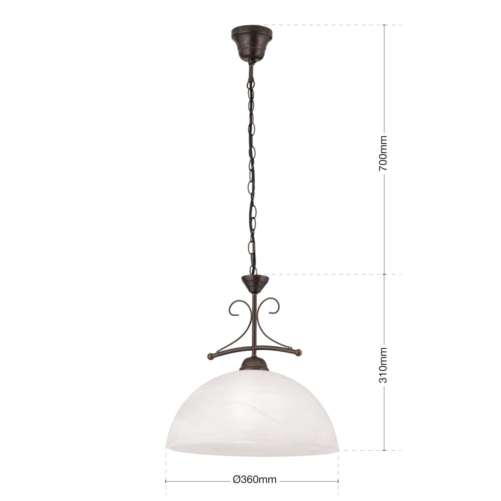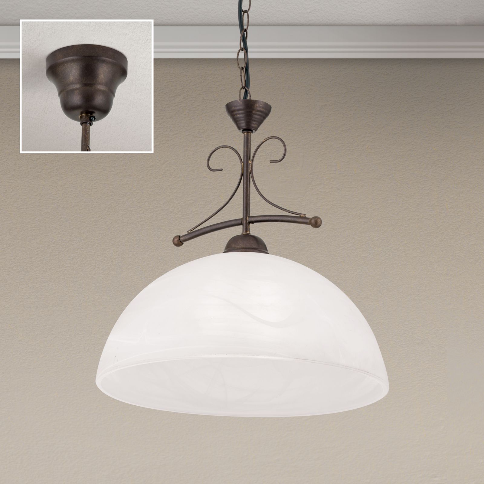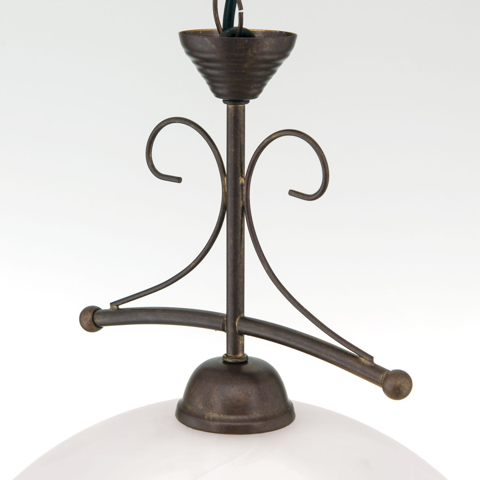 Aufgrund ihrer rustikalen Gestaltung eignet sich die Hängeleuchte aus der Serie RULA ausgezeichnet für den rustikalen Wohnstil. Egal ob im Esszimmer, Wohnzimmer oder Flur diese Leuchte sorgt für wohnliches Ambiente und spendet angenehmes Licht. Sie präsentiert sich mit eindrucksvollen Schmiedeelementen, welche mit einem opalmatten Glasschirm kombiniert sind, woraus sich ein aufeinander abgestimmtes Gesamtbild ergibt.