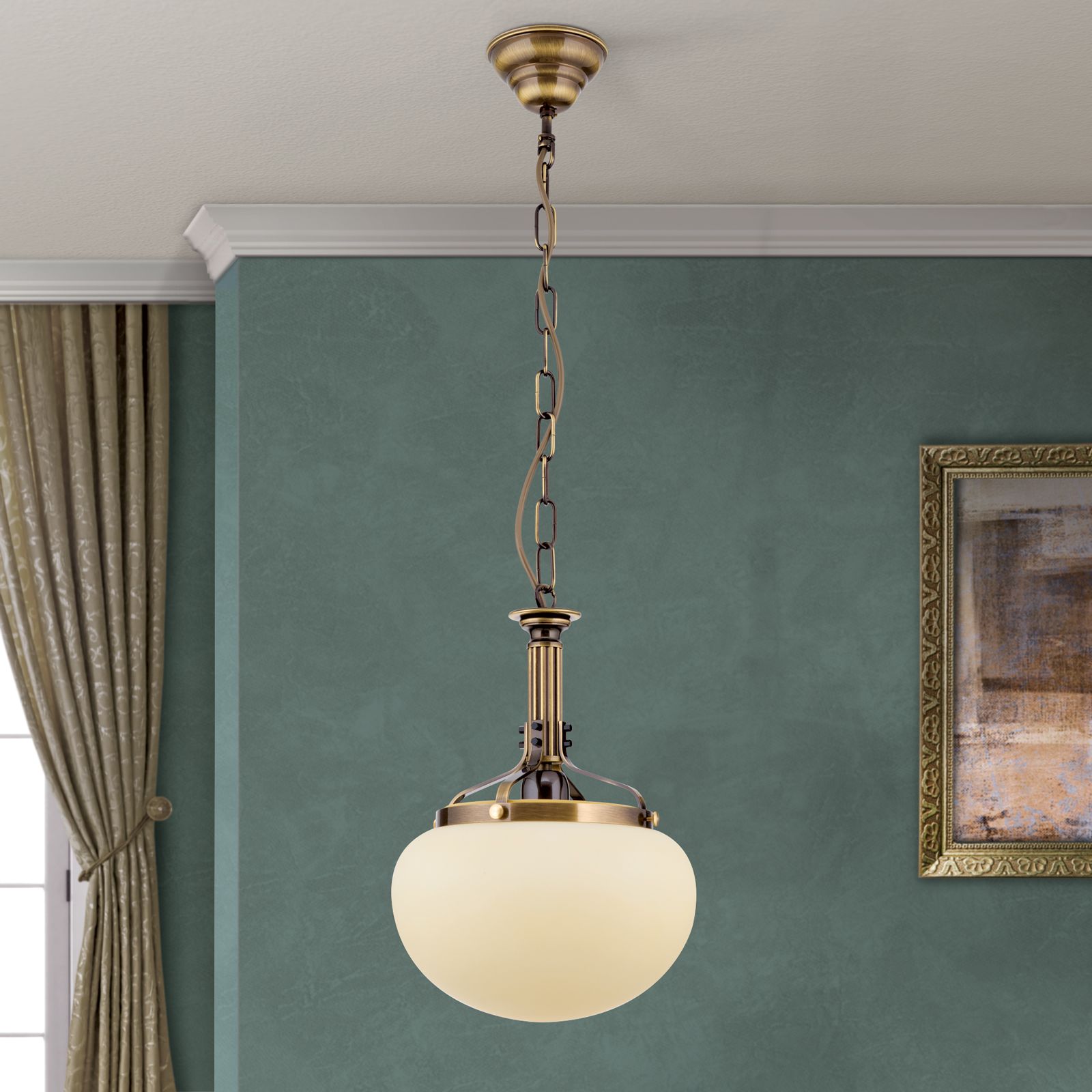 Hängeleuchte WIENER NOSTALGIE, Patina, mit champagne mattem Glas, 27cm